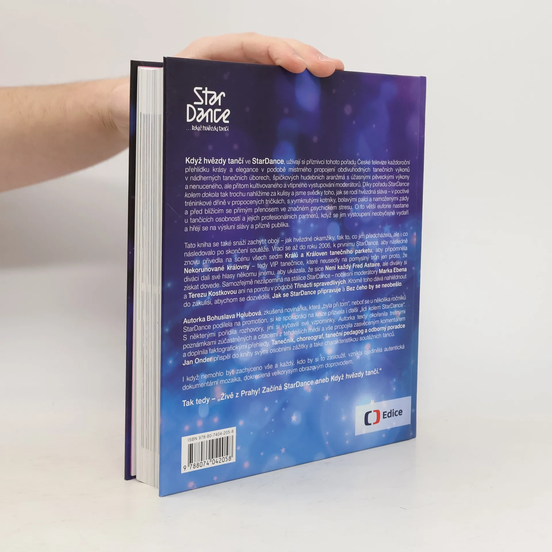 Ojedinělá dokumentární mozaika rozhovorů, autentických vzpomínek a dobových výroků je doplněna bohatým obrazovým materiálem. Když hvězdy tančí ve StarDance, diváci si užívají přehlídku krásy a elegance, která spojuje úchvatné taneční výkony, nádherné kostýmy, špičkovou hudbu a vtipné moderování. Od podzimu do Vánoc se vytváří podmanivá atmosféra, která přenáší hvězdné okamžiky do domácností, kde rodiny fandí svým favoritům. Pořad odhaluje zákulisí a ukazuje, jak se rodí hvězdná sláva prostřednictvím náročného tréninku, bolesti a psychického stresu. Euforie tančících osobností a jejich partnerů, když se vystoupení vydaří, je nezapomenutelná. Kniha zachycuje jak hvězdné okamžiky, tak to, co jim předcházelo a následovalo, a vrací se k prvnímu ročníku v roce 2006. Připomíná Krále a Královny tanečního parketu a VIP tanečnice, které nezískaly vítězství, ale přesto si získaly diváky. Nechybí ani stálice pořadu, moderátoři a porota. Autorka Bohuslava Holubová, zkušená novinářka, spolupracovala s lidmi kolem StarDance, přičemž zahrnula rozhovory a vzpomínky. Texty doplnila citacemi a svým komentářem, zatímco Jan Onder přispěl osobními zážitky a charakteristikou soutěžních tanců.