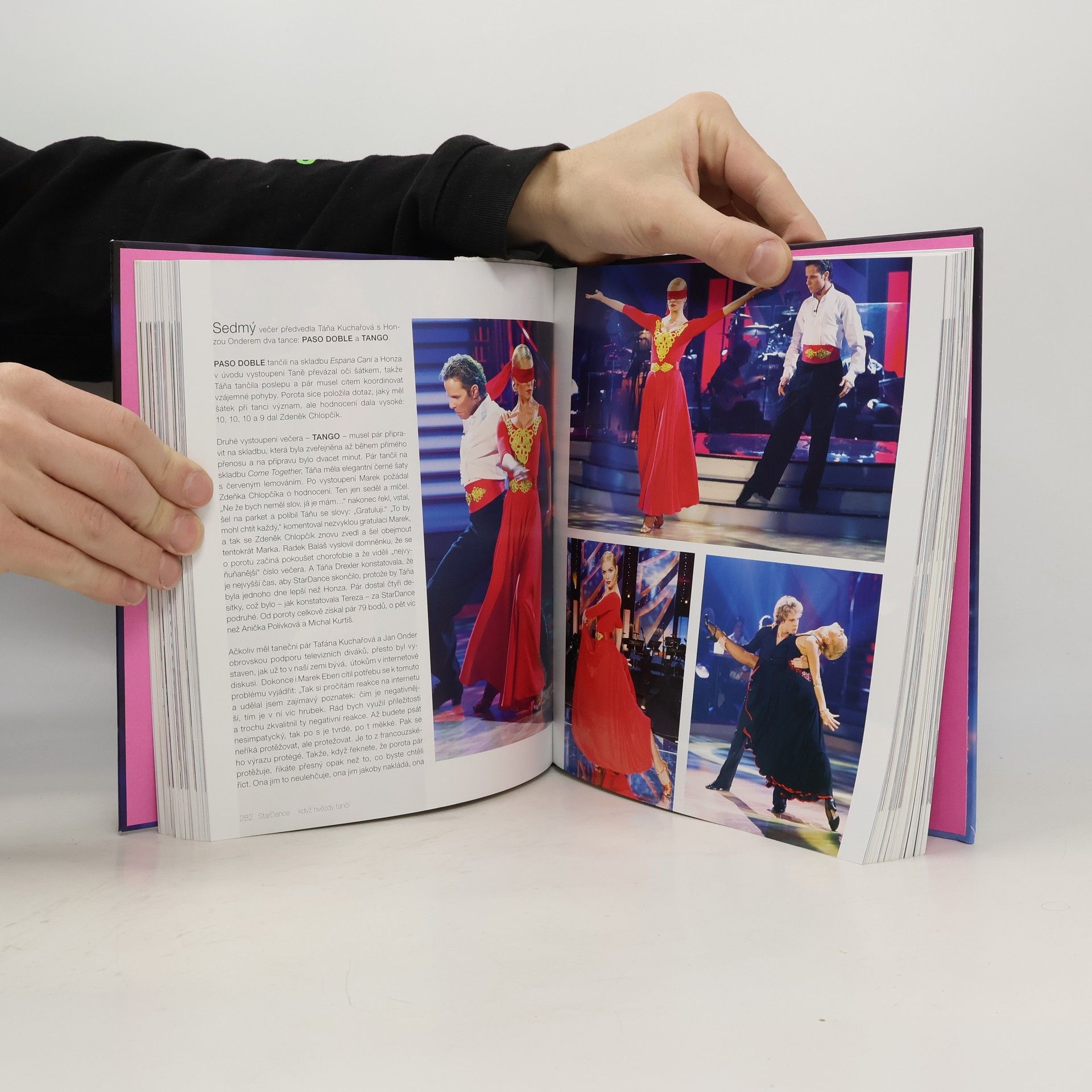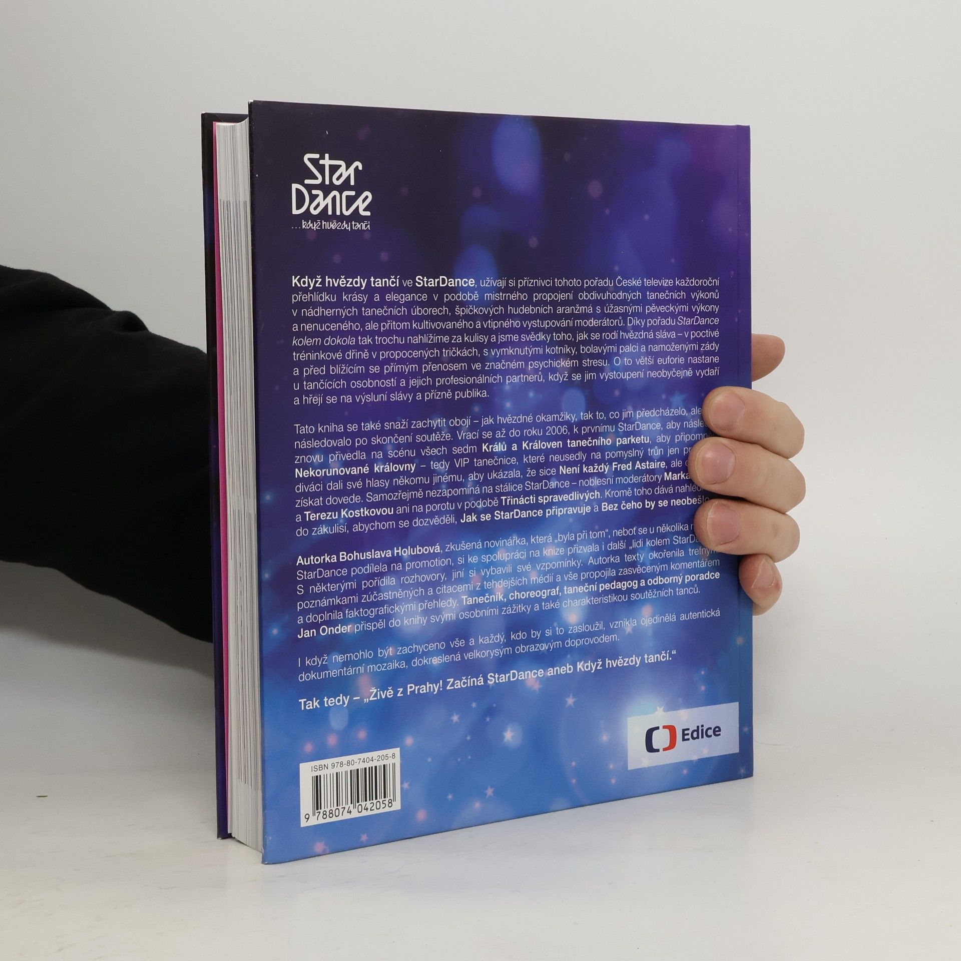 Ojedinělá dokumentární mozaika rozhovorů, autentických vzpomínek a dobových výroků je doplněna bohatým obrazovým materiálem. Když hvězdy tančí ve StarDance, diváci si užívají přehlídku krásy a elegance, která spojuje úchvatné taneční výkony, nádherné kostýmy, špičkovou hudbu a vtipné moderování. Od podzimu do Vánoc se vytváří podmanivá atmosféra, která přenáší hvězdné okamžiky do domácností, kde rodiny fandí svým favoritům. Pořad odhaluje zákulisí a ukazuje, jak se rodí hvězdná sláva prostřednictvím náročného tréninku, bolesti a psychického stresu. Euforie tančících osobností a jejich partnerů, když se vystoupení vydaří, je nezapomenutelná. Kniha zachycuje jak hvězdné okamžiky, tak to, co jim předcházelo a následovalo, a vrací se k prvnímu ročníku v roce 2006. Připomíná Krále a Královny tanečního parketu a VIP tanečnice, které nezískaly vítězství, ale přesto si získaly diváky. Nechybí ani stálice pořadu, moderátoři a porota. Autorka Bohuslava Holubová, zkušená novinářka, spolupracovala s lidmi kolem StarDance, přičemž zahrnula rozhovory a vzpomínky. Texty doplnila citacemi a svým komentářem, zatímco Jan Onder přispěl osobními zážitky a charakteristikou soutěžních tanců.