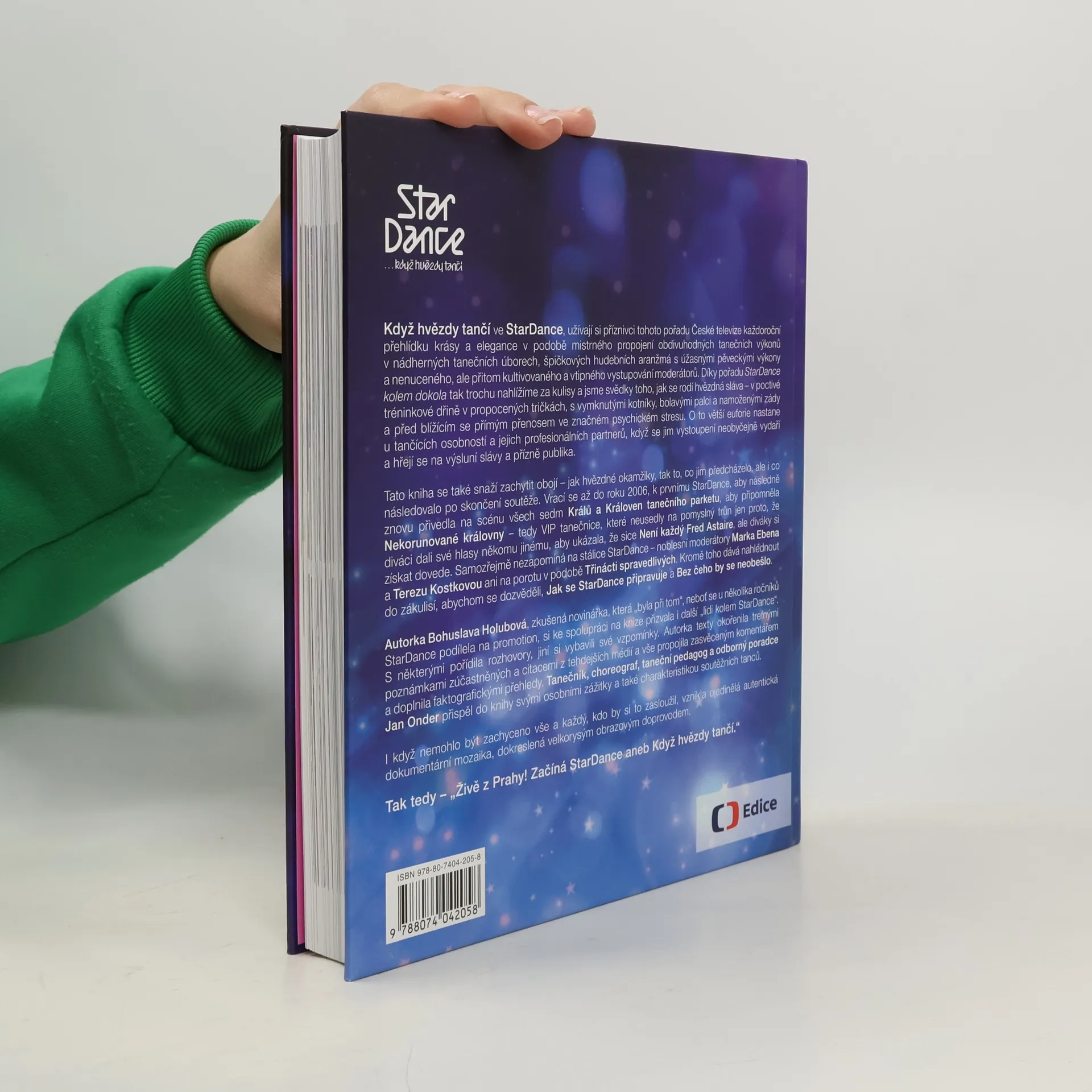 Ojedinělá dokumentární mozaika rozhovorů, autentických vzpomínek a dobových výroků je doplněna bohatým obrazovým materiálem. Když hvězdy tančí ve StarDance, diváci si užívají přehlídku krásy a elegance, která spojuje úchvatné taneční výkony, nádherné kostýmy, špičkovou hudbu a vtipné moderování. Od podzimu do Vánoc se vytváří podmanivá atmosféra, která přenáší hvězdné okamžiky do domácností, kde rodiny fandí svým favoritům. Pořad odhaluje zákulisí a ukazuje, jak se rodí hvězdná sláva prostřednictvím náročného tréninku, bolesti a psychického stresu. Euforie tančících osobností a jejich partnerů, když se vystoupení vydaří, je nezapomenutelná. Kniha zachycuje jak hvězdné okamžiky, tak to, co jim předcházelo a následovalo, a vrací se k prvnímu ročníku v roce 2006. Připomíná Krále a Královny tanečního parketu a VIP tanečnice, které nezískaly vítězství, ale přesto si získaly diváky. Nechybí ani stálice pořadu, moderátoři a porota. Autorka Bohuslava Holubová, zkušená novinářka, spolupracovala s lidmi kolem StarDance, přičemž zahrnula rozhovory a vzpomínky. Texty doplnila citacemi a svým komentářem, zatímco Jan Onder přispěl osobními zážitky a charakteristikou soutěžních tanců.