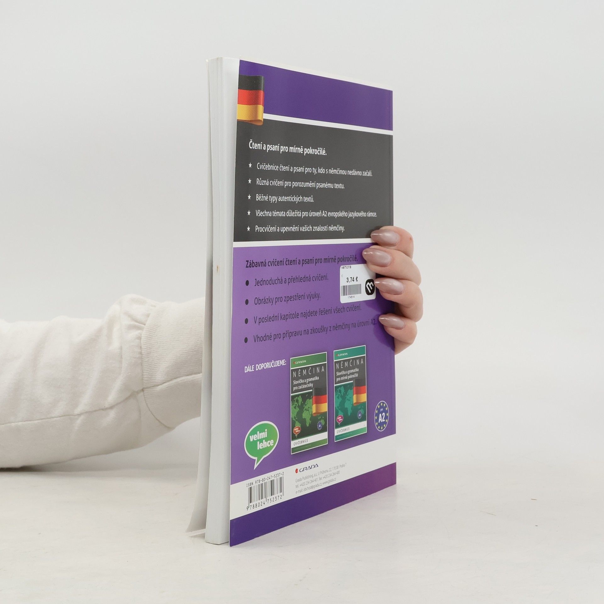 Cvičebnice čtení a psaní pro ty, kdo jsou v němčině mírně pokročilí a jsou tedy na úrovni A2 evropského jazykového referenčního rámce. Své znalosti čtení a psaní si procvičíte na různých druzích cvičení, která obsahují i běžné typy autentických textů – jídelní lístek, formuláře apod. K procvičení a upevnění vašich znalostí němčiny vám poslouží přehledná, často ilustrovaná cvičení a řešení všech úloh na konci knihy. Kniha je vhodné i pro přípravu na zkoušky z němčiny na úrovni A2. První vydání.