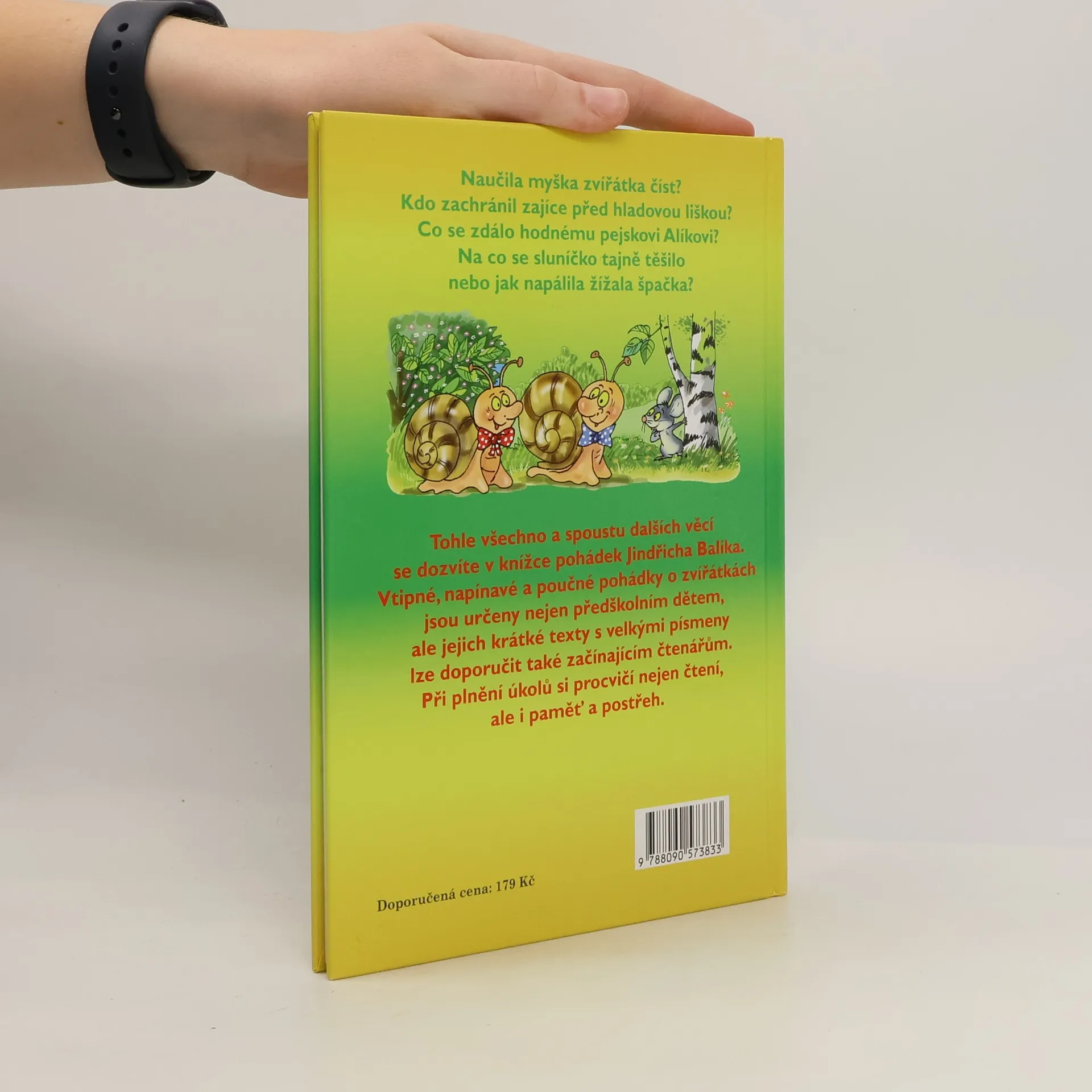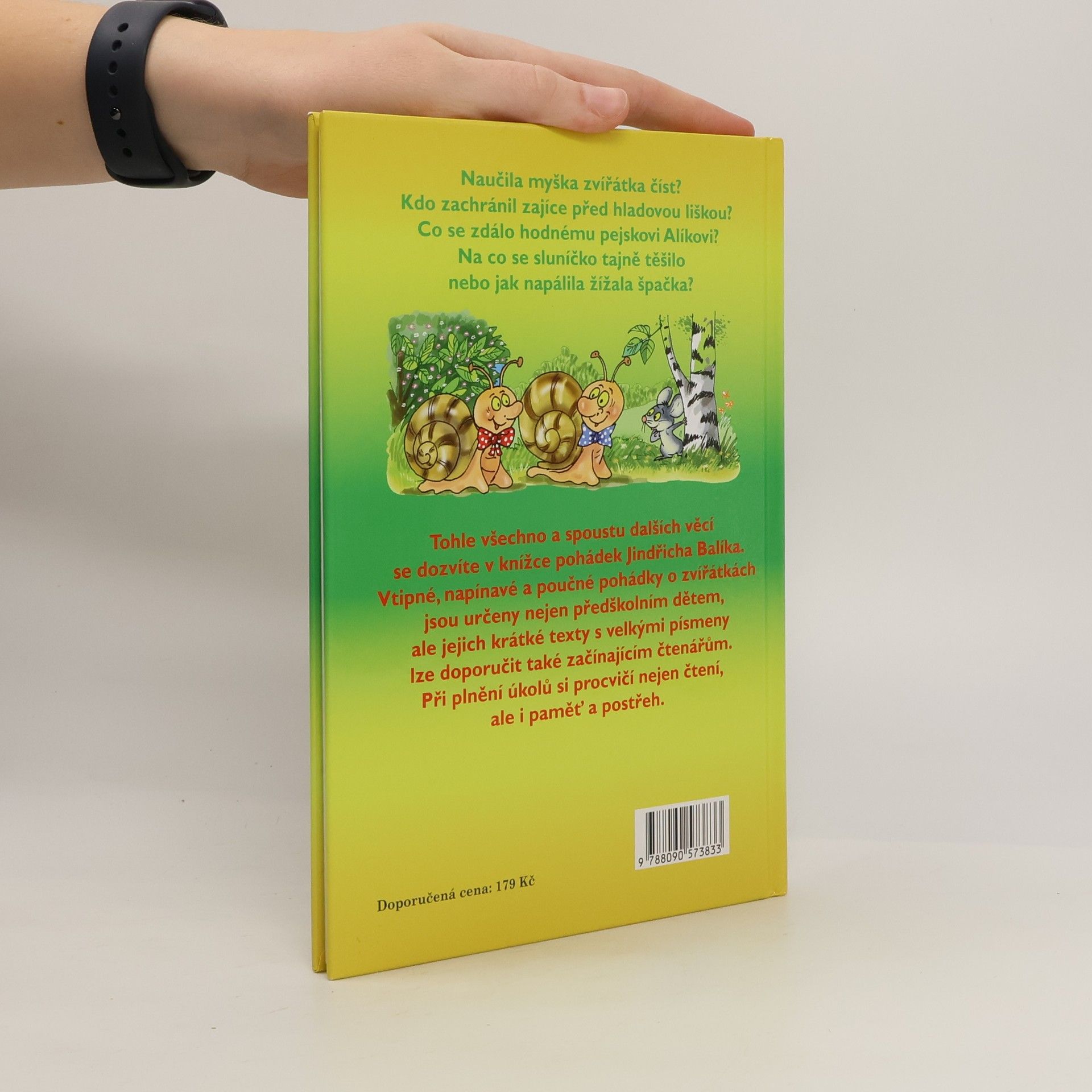 Naučila myška zvířátka číst? Kdo zachránil zajíce před hladovou liškou? Co se zdála hodnému pejskovi Alíkovi? Na co se sluníčko tajně těšila nebo jako napálila žížala špačka? Tohle všechno a spoustu dalších věcí se dozvíte v knížce pohádek Jindřicha Balíka. Vtipné, napínavé a poučné pohádky o zvířátkách jsou určeny nejen předškolním dětem, ale jejich krátké texty s velkými písmeny lze doporučit také začínajícím čtenářům. Při plnění úkolů si procvičí nejen čtení, ale i paměť a postřeh.