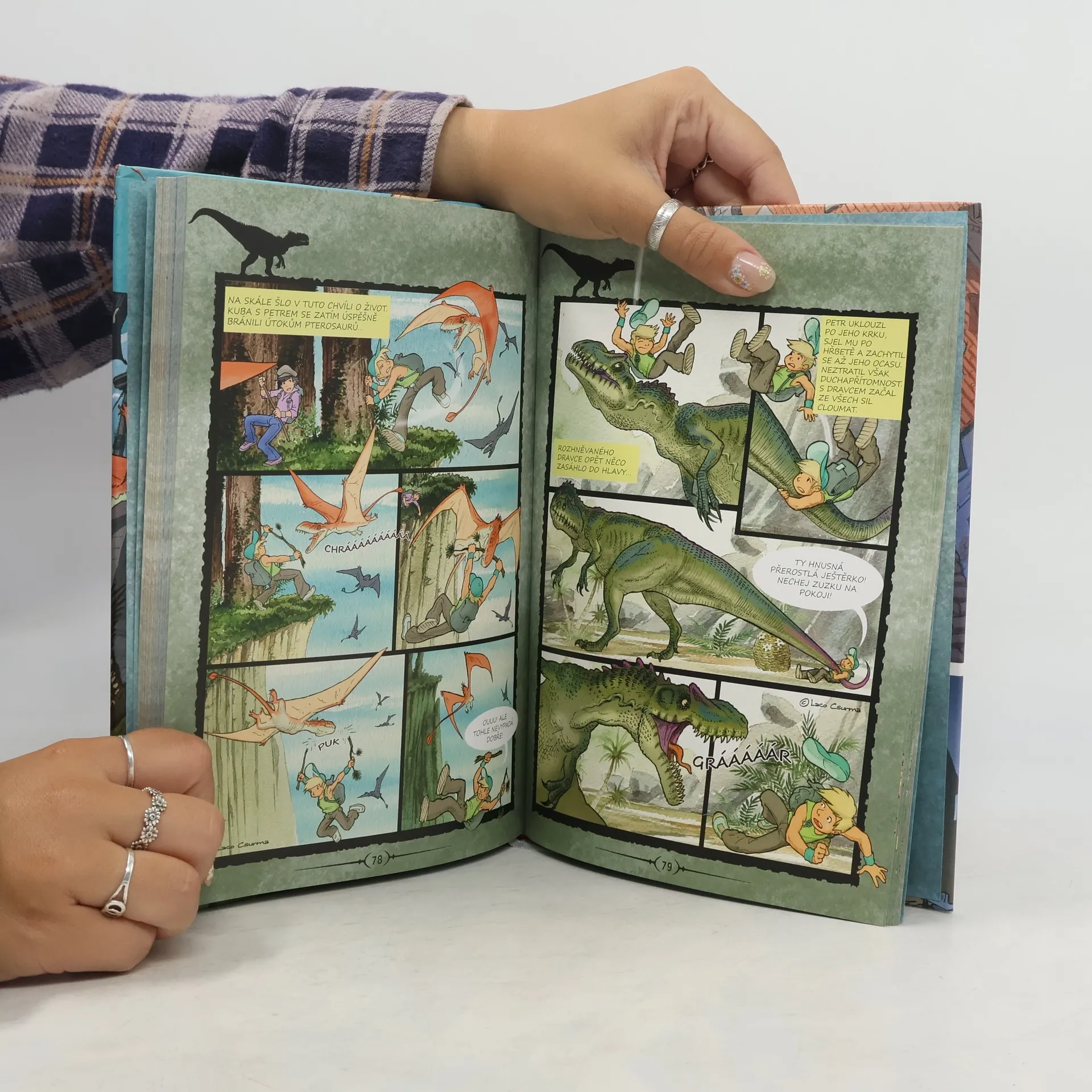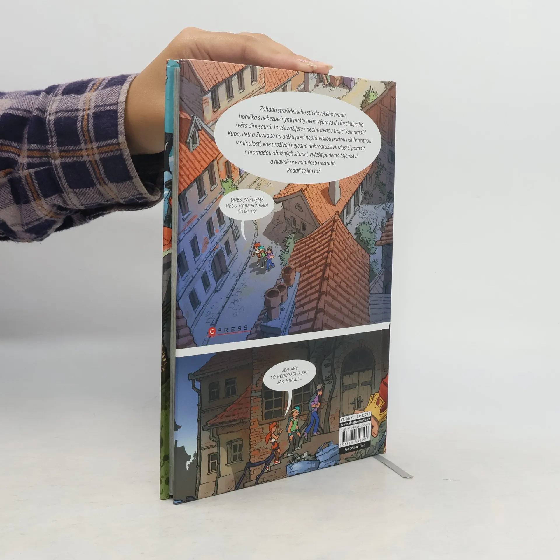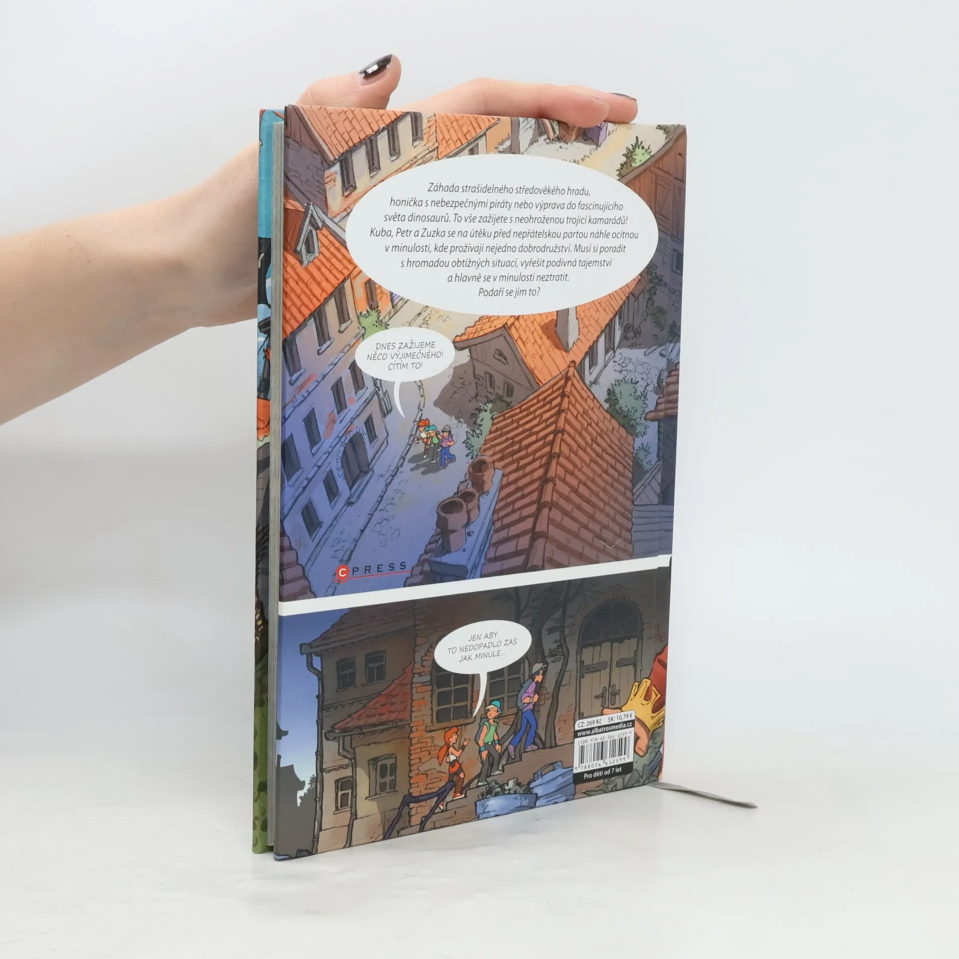 Zábava, akce a napínavá dobrodružství v komiksu oceňovaného kreslíře Záhada strašidelného středověkého hradu, honička s nebezpečnými piráty nebo výprava do fascinujícího světa dinosaurů. To vše zažijete s neohroženou trojicí kamarádů! Kuba, Petr a Zuzka se na útěku před nepřátelskou partou náhle ocitnou v minulosti, kde prožívají nejedno dobrodružství. Musí si poradit s hromadou obtížných situací, vyřešit podivná tajemství a hlavně se v minulosti neztratit. Podaří se jim to?