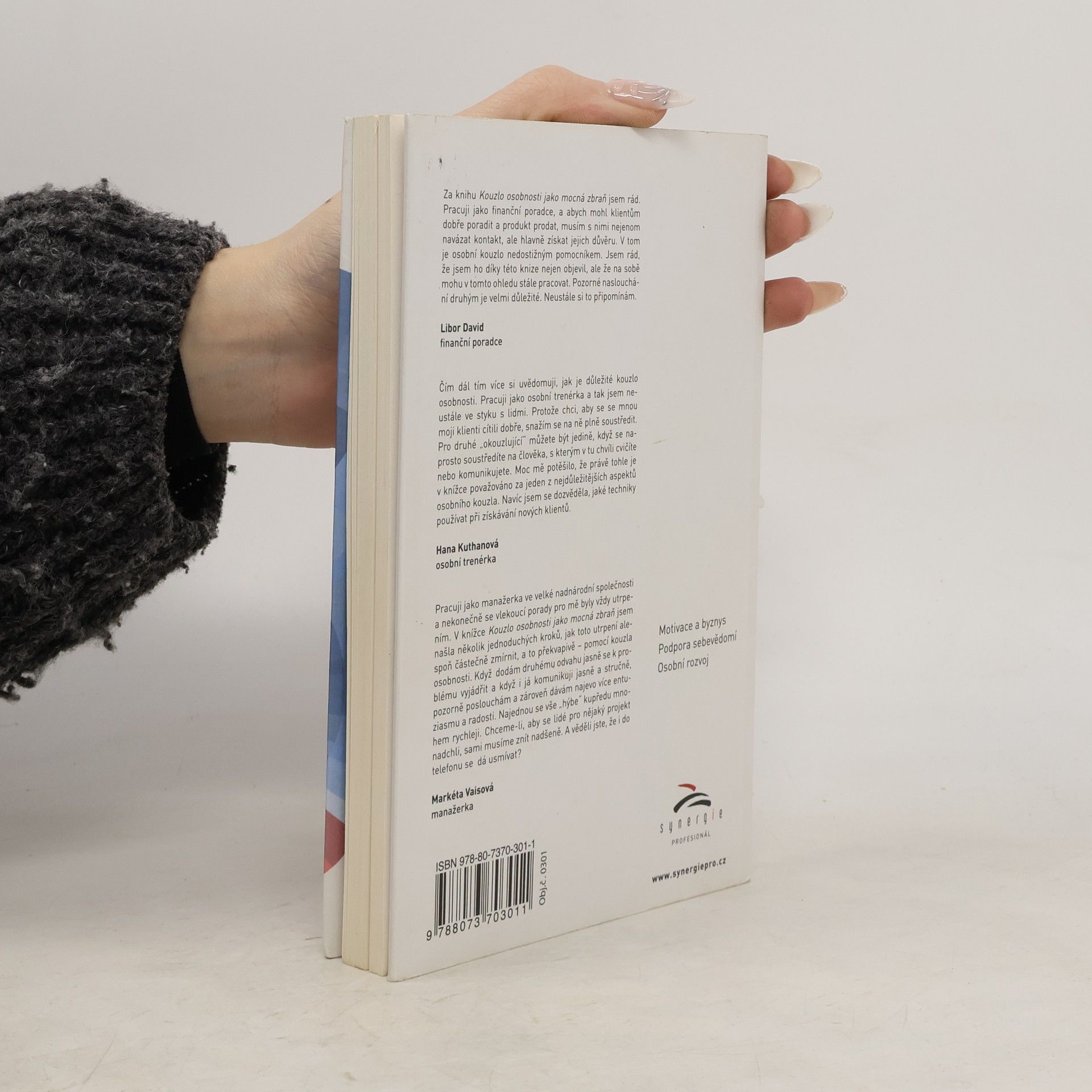 V této knize se naučíte, jak objevit své vlastní kouzlo osobnosti a použít jej tak, aby vám pomohlo budovat osobní a obchodní vztahy, efektivněji vyjednávat a skvěle působit i ve společenském styku. Kouzlo osobnosti bylo totiž odjakživa klíčem k úspěchu. Spoustě historických i současných osobností pomohlo k dosažení cílů, úspěchu i věhlasu. Za všechny můžeme jmenovat bývalého amerického prezidenta J. F. Kennedyho, francouzského herce J.P. Belmonda, českého herce Oldřicha Nového, či české herečky Evu Holubovou nebo Chantall Poulain. Mít kouzlo osobnosti totiž neznamená být krásný, ale mít v sobě zvláštní směs čehosi, co druhým na vás připadá neodolatelné a proto jsou rádi ve vaší společnosti, rádi s vámi jednají a spolupracují. Pomocí kouzla osobnosti dosáhnete všeho, co chcete.