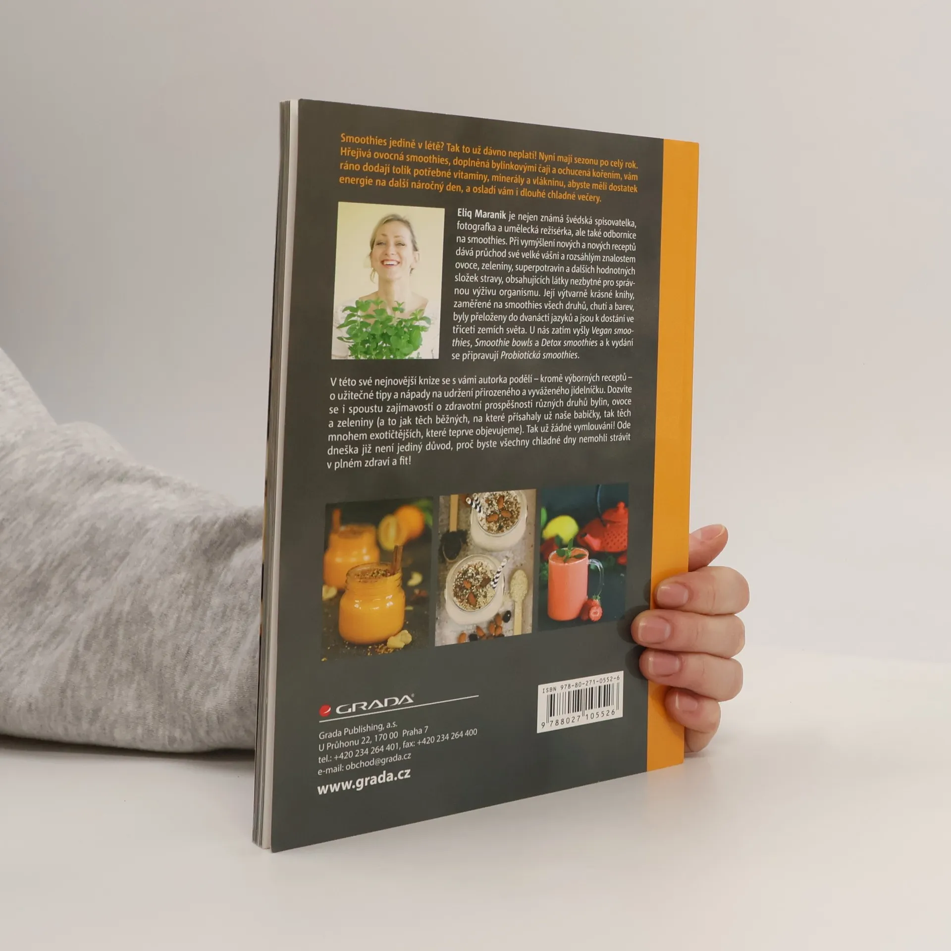 Pro každé roční období. Smoothies jako životní styl. Smoothies jedině v létě? Tak to už dávno neplatí! Nyní mají sezonu po celý rok. Hřejivá ovocná smoothies, doplněná bylinkovými čaji a ochucená kořením, vám ráno dodají tolik potřebné vitaminy, minerály a vlákninu, abyste měli dostatek energie na další náročný den, a osladí vám i dlouhé chladné večery. V této knize se s vámi autorka podělí – kromě výborných receptů – o užitečné tipy a nápady na udržení přirozeného a vyváženého jídelníčku. Dozvíte se i spoustu zajímavostí o zdravotní prospěšnosti různých druhů bylin, ovoce a zeleniny (a to jak těch běžných, na které přísahaly už naše babičky, tak těch mnohem exotičtějších, které teprve objevujeme). Tak už žádné vymlouvání! Ode dneška již není jediný důvod, proč byste všechny chladné dny nemohli strávit v plném zdraví a fit!