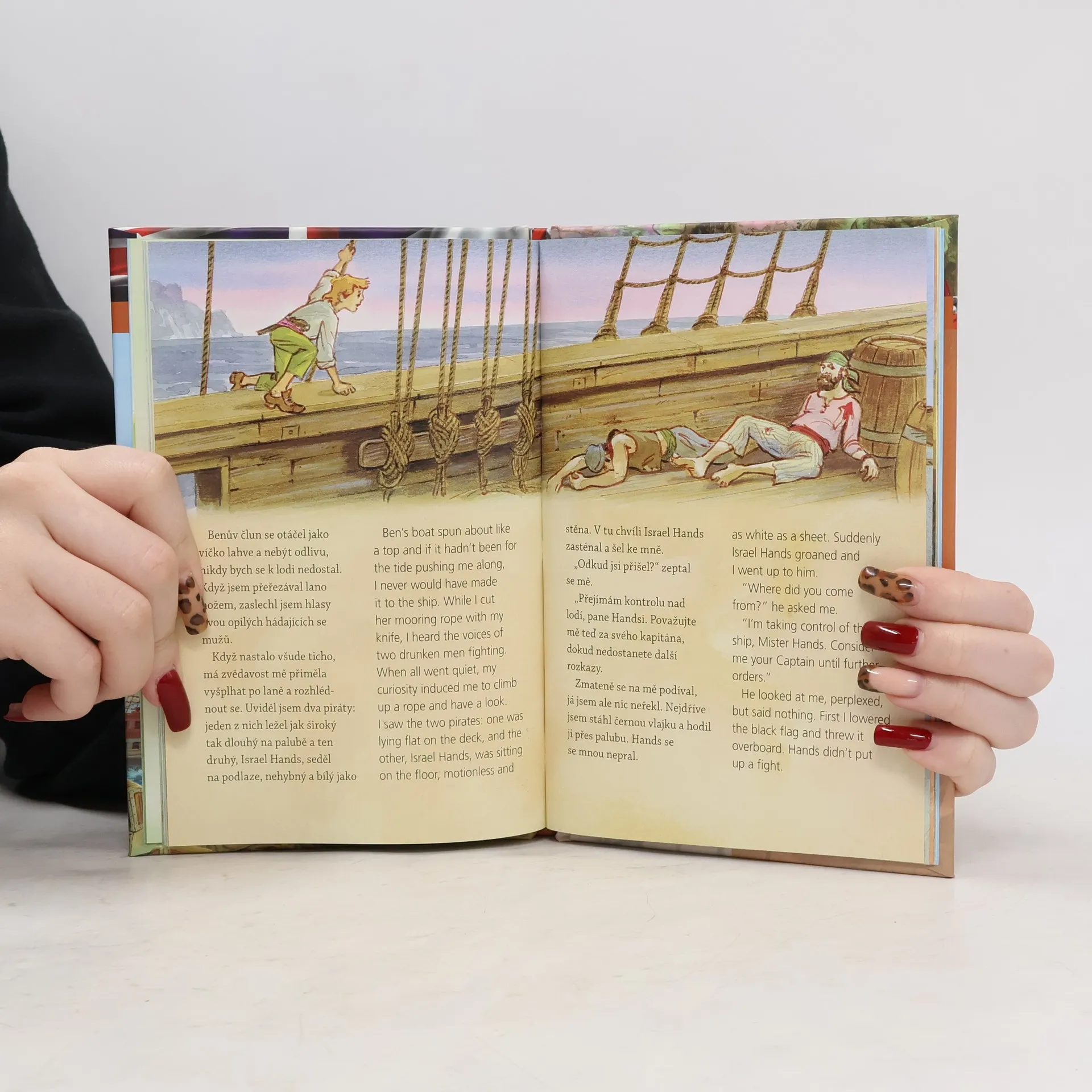 Dvojjazyčné čtení česko-anglické Stevenson napsal Ostrov pokladů, když viděl svého synovce malovat vodovkami mapu ostrova. Začal dávat ostrovům jména: Ostrov koster nebo Dalekohledový kopec, až nakonec napsal "Ostrov pokladů" do pravého horního rohu stránky. Po dlouhé nemoci ("čtrnáct let jsem nepoznal jediný den zdraví", napsal) zemřel Stevenson roku 1894 na ostrově Upolu v jižním Pacifiku, kde do té doby žil. Myslíte, že na tom ostrově našel svůj poklad?
