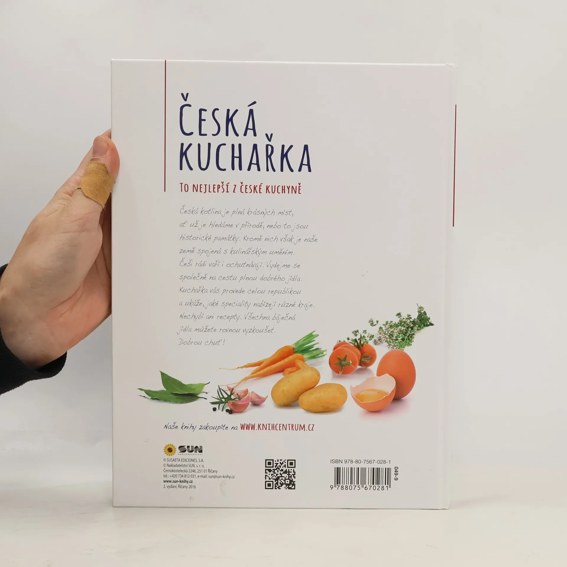 Česká kotlina je plná krásných míst, ať už je hledáme v přírodě, nebo to jsou historické památky. Kromě nich je však naše země spojená s kulinářským uměním. Češi rádi vaří i ochutnávají. Vydejme se společně na cestu plnou dobrého jídla. Kuchařka vás provede celou republikou a ukáže, jaké speciality nabízí různé kraje. Nechybí ani recepty. Všechna báječná jídla tak můžete rovnou vyzkušet. Dobrou chuť.