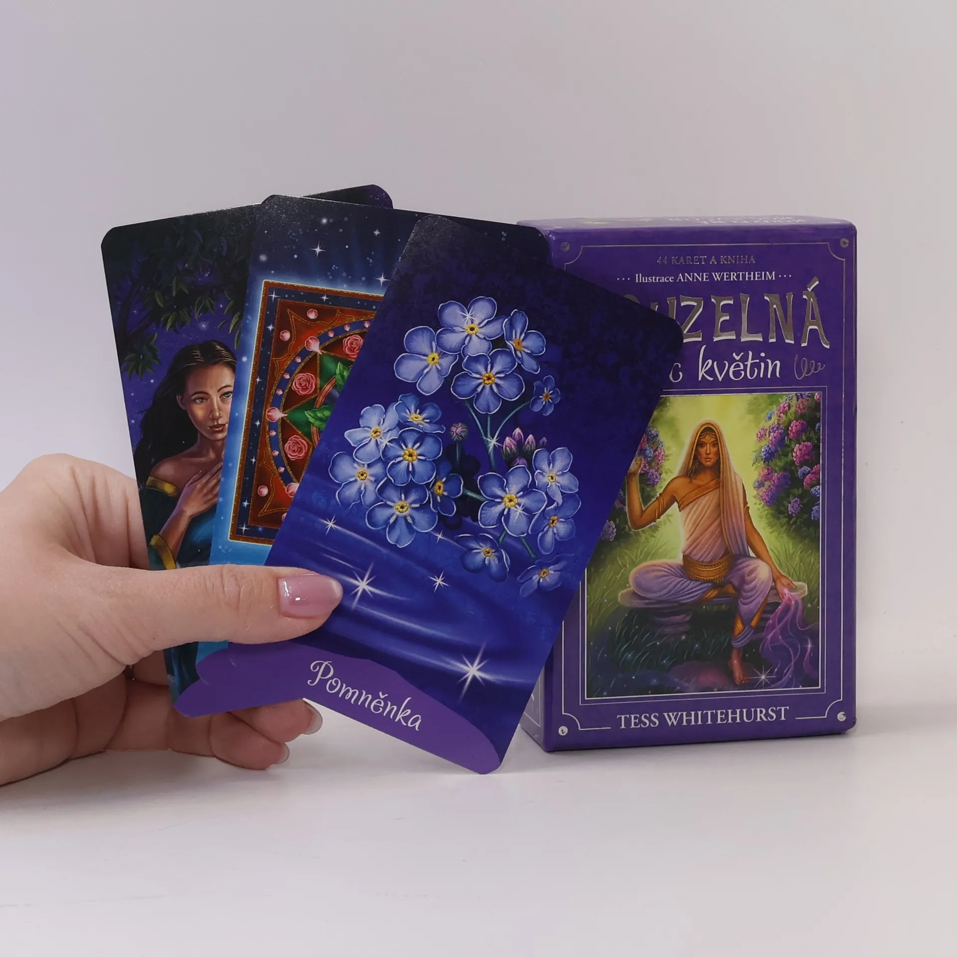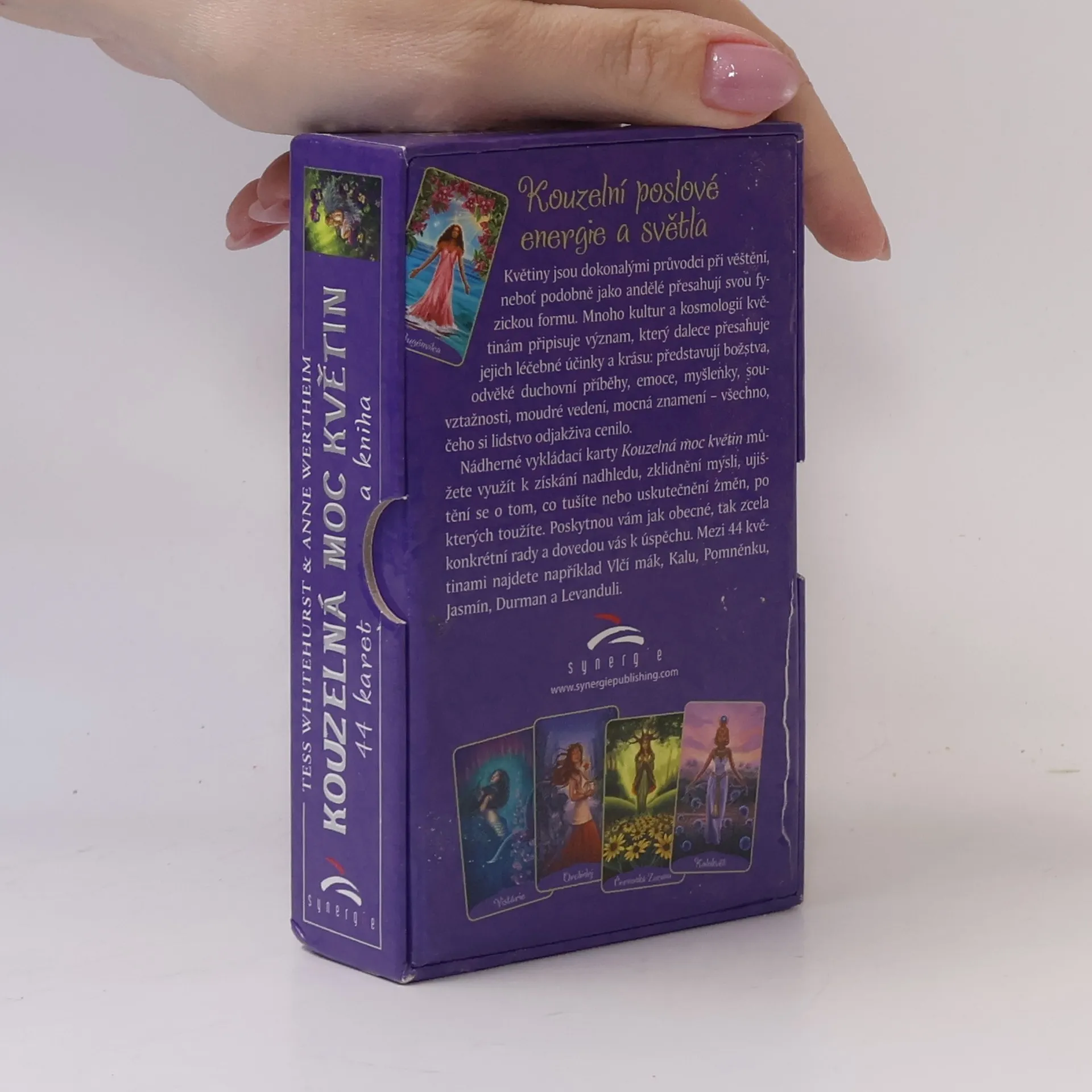 Květiny jsou dokonalými průvodci při věštění, neboť podobně jako andělé přesahují svou fyzickou formu. Mnoho kultur a kosmologií květinám připisuje význam, který dalece přesahuje jejich léčebné účinky a krásu: představují božstva, odvěké duchovní příběhy, emoce, myšlenky, souvztažnosti, moudré vedení, mocná znamení – všechno, čeho si lidstvo odjakživa cenilo. Nádherné vykládací karty Kouzelná moc květin můžete využít k získání nadhledu, zklidnění mysli, ujištění se o tom, co tušíte, nebo uskutečnění změn, po ktery´ch toužíte. Poskytnou vám jak obecné, tak zcela konkrétní rady a dovedou vás k úspěchu. Mezi 44 květinami najdete například Vlčí mák, Kalu, Pomněnku, Jasmín, Durman a Levanduli.
