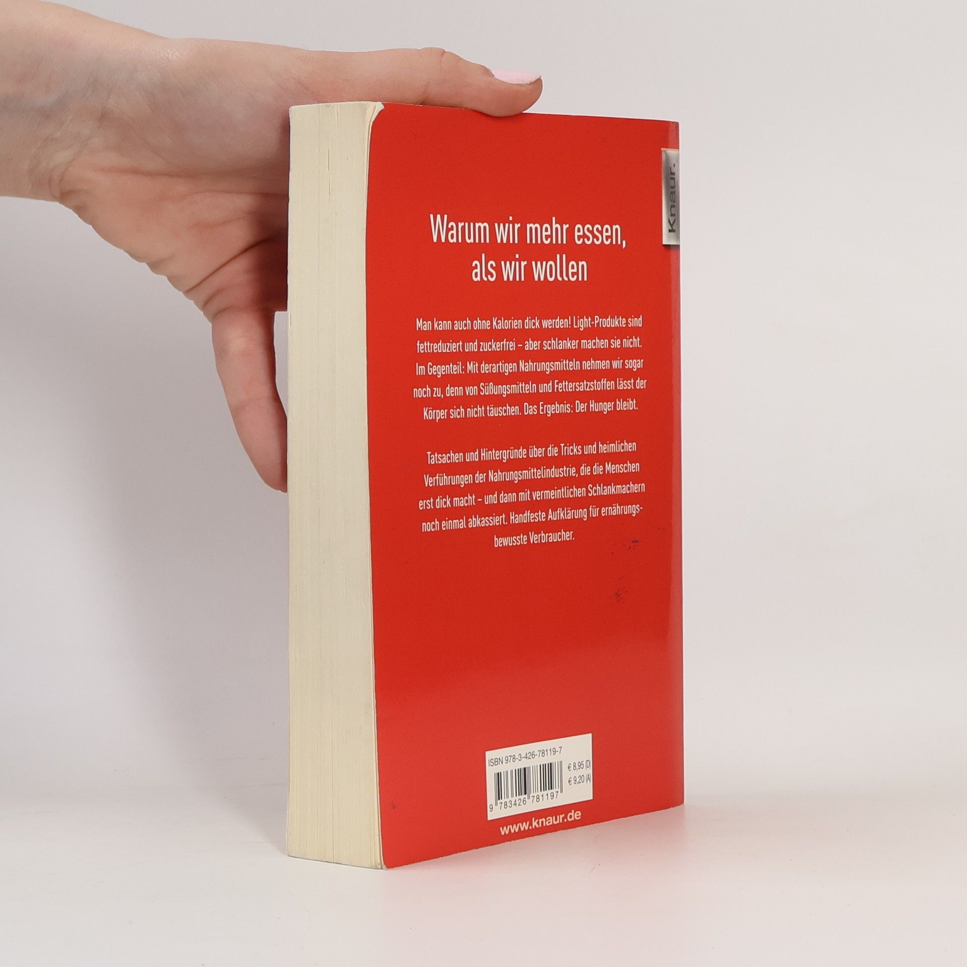 »Warum wir mehr essen, als wir wollen« Man kann auch ohne Kalorien dick werden! Light-Produkte sind fettreduziert und zuckerfrei – aber schlanker machen sie nicht. Im Gegenteil: Mit derartigen Nahrungsmitteln nehmen wir sogar noch zu, denn von Süßungsmitteln und Fettersatzstoffen lässt der Körper sich nicht täuschen. Das Ergebnis: Der Hunger bleibt. Tatsachen und Hintergründe über die Tricks und heimlichen Verführungen der Nahrungsmittelindustrie, die die Menschen erst dick macht – und dann mit vermeintlichen Schlankmachern noch einmal abkassiert. Handfeste Aufklärung für ernährungsbewusste Verbraucher.