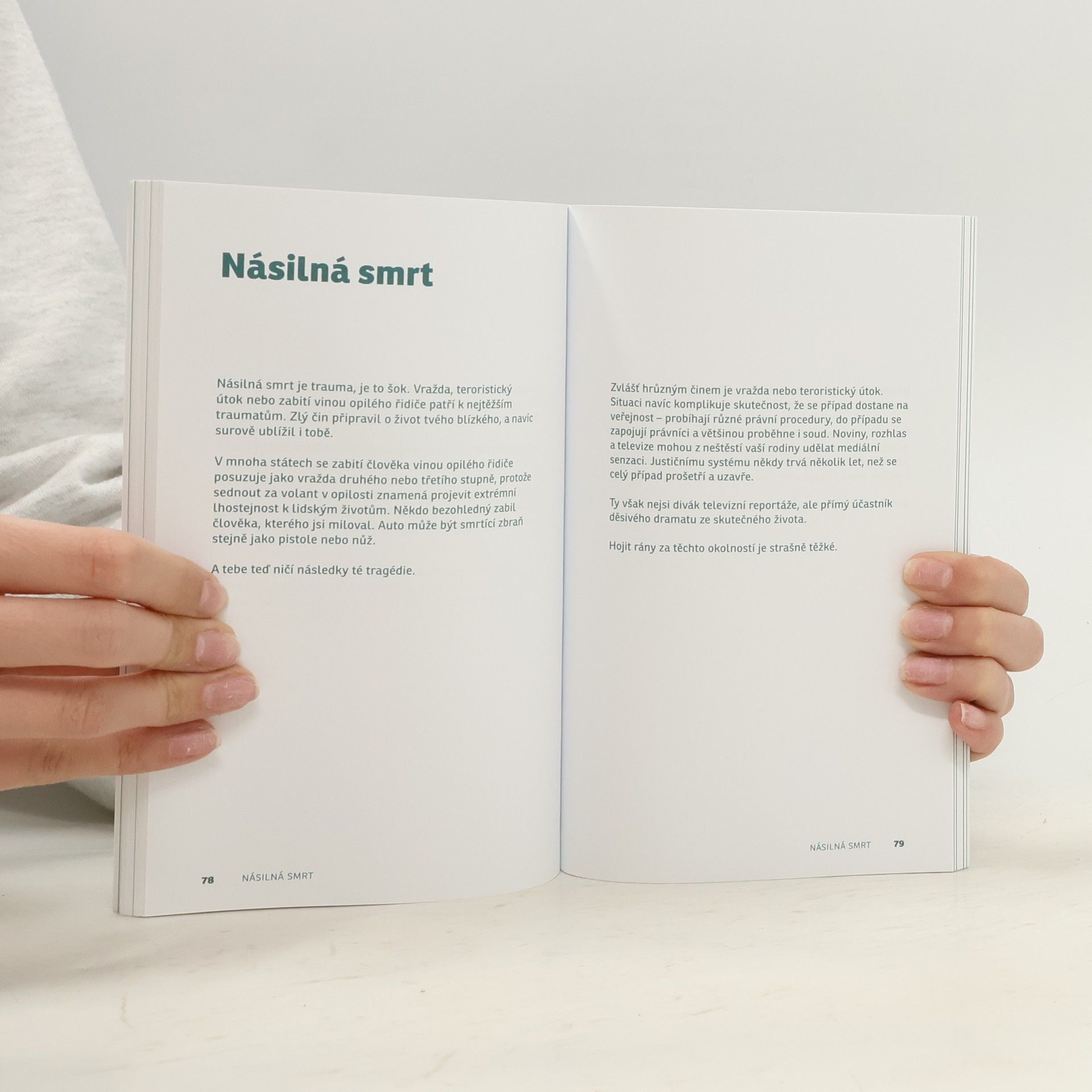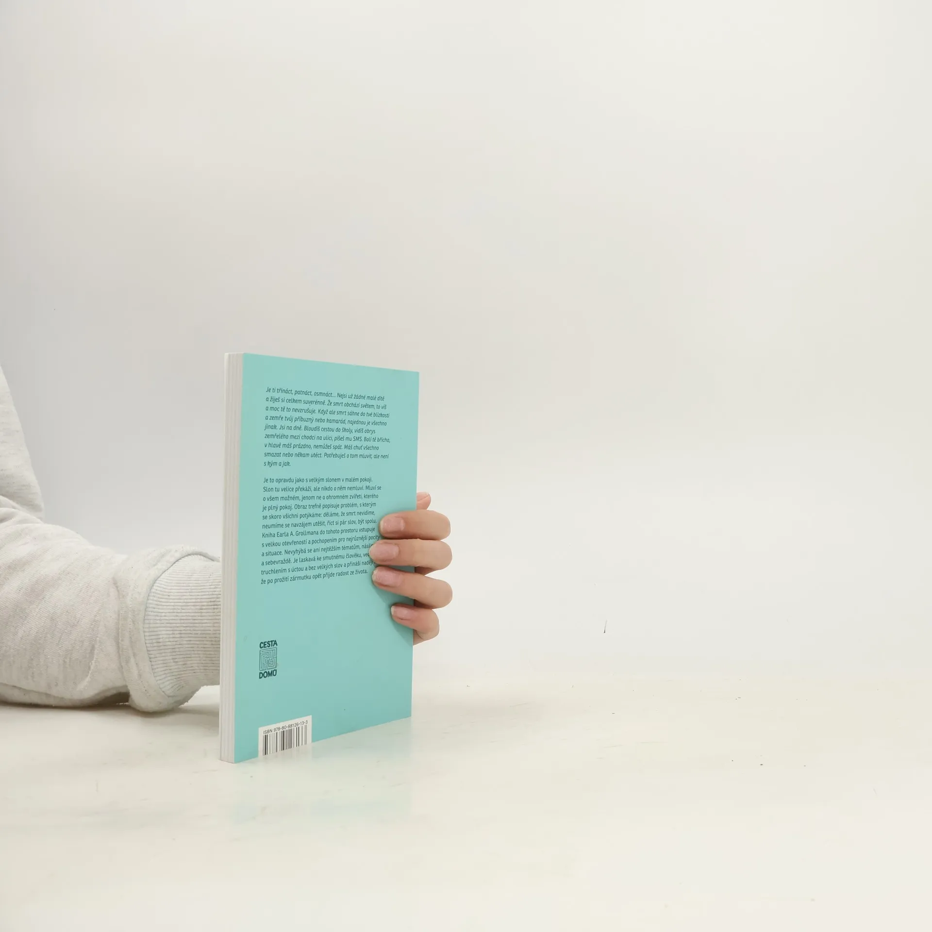 Velký slon v malém pokoji, všichni o něm vědí, neumějí s ním nic udělat, ale také se o něm nedokážou bavit, mluví o všem jiném, jen ne o slonovi, kterého je plný pokoj. Tímto obratem začíná kniha pro dospívající lidi, kterým někdo zemře. Obraz dobře popisuje problém, s nímž se dnešní společnost potýká: umírají naši blízcí, my děláme, že to nevidíme, neumíme se navzájem utěšit, říci si pár milých slov, být spolu. Zůstaneme pak s velkým slonem v pokoji sami a nevíme, co si počít… Zvlášť těžké je to pro dospívající lidi a kniha na tento problém odpovídá. Krátké, výstižné a neupovídané úvahy, rady a otázky mohou velmi pomoci.