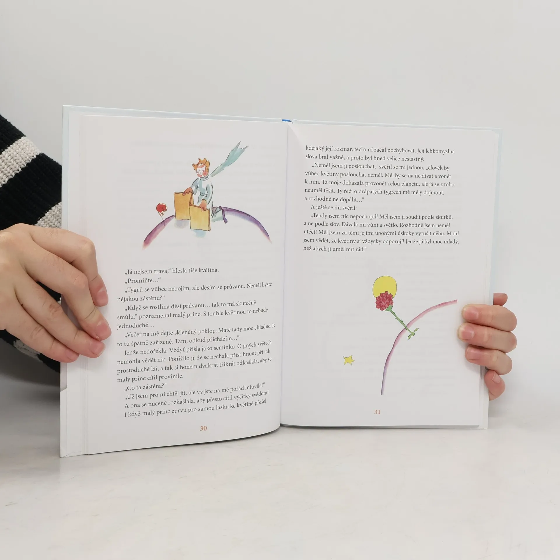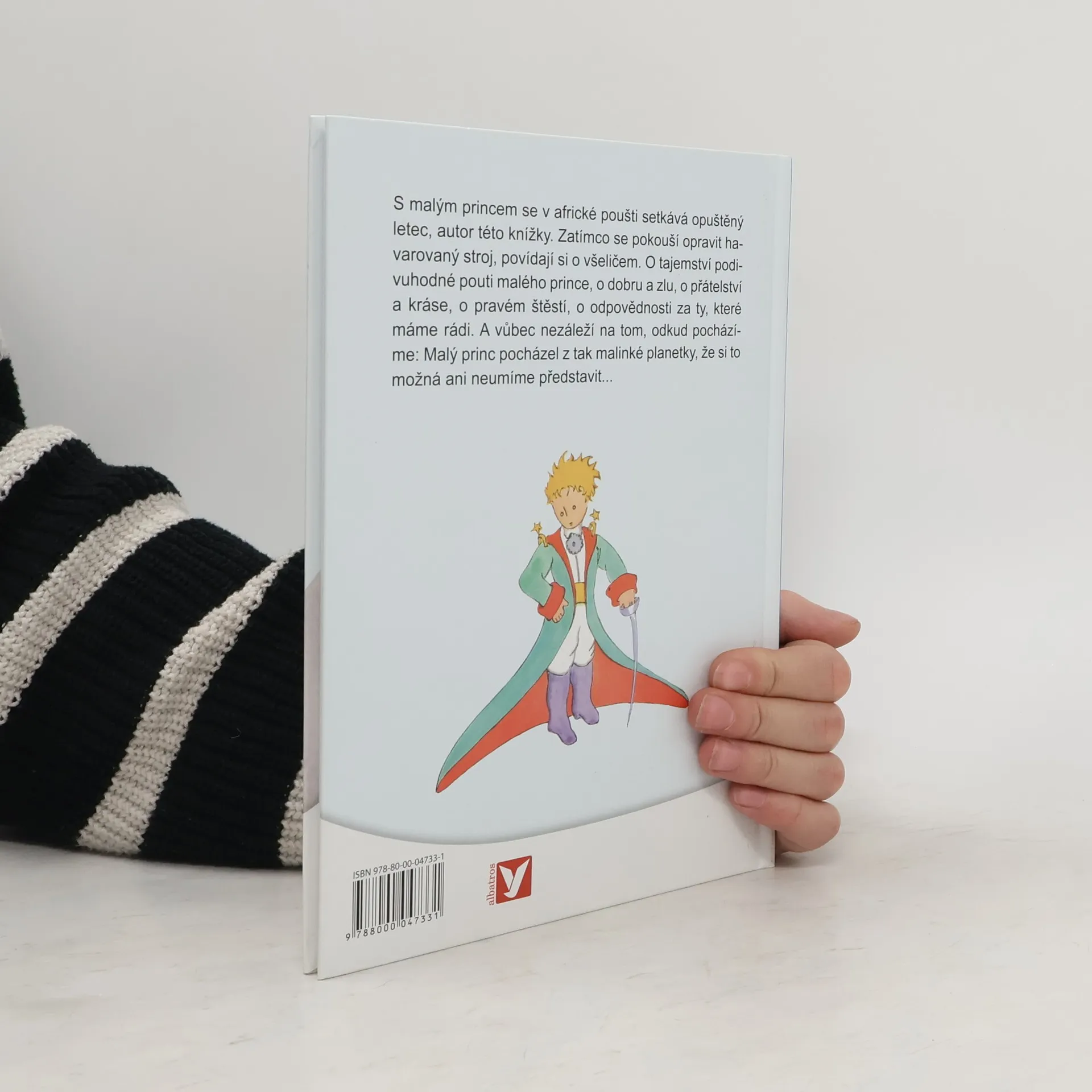 S Malým princem se v africké poušti setkává opuštěný letec, autor této knížky. Zatímco se pokouší opravit havarovaný stroj, povídají si o všeličem. O tajemství podivuhodné pouti Malého prince, o dobru a zlu, o přátelství a kráse, o pravém štěstí, o odpovědnosti za ty, které máme rádi. A vůbec nezáleží na tom, odkud pocházíme: Malý princ pocházel z tak malinké planetky, že si to možná ani neumíme představit...