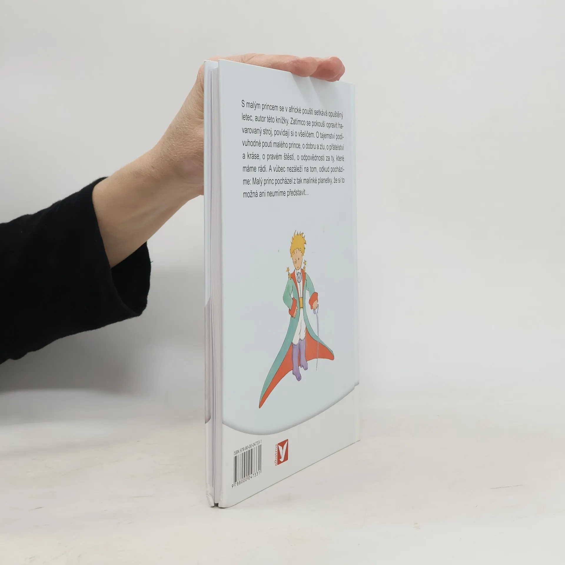 S Malým princem se v africké poušti setkává opuštěný letec, autor této knížky. Zatímco se pokouší opravit havarovaný stroj, povídají si o všeličem. O tajemství podivuhodné pouti Malého prince, o dobru a zlu, o přátelství a kráse, o pravém štěstí, o odpovědnosti za ty, které máme rádi. A vůbec nezáleží na tom, odkud pocházíme: Malý princ pocházel z tak malinké planetky, že si to možná ani neumíme představit...