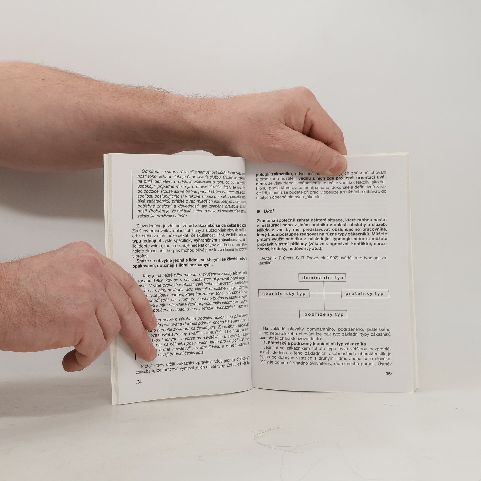 Učebnice podává jednak stručný výklad základních pojmů psychologie, jednak výklad obecných zákonitostí a zásad jednání s lidmi v oblasti hromadného stravování, správní činnosti a v oblasti služeb nejrůznějšího typu. Nabádá ke správné sociální interakci a k úspěšnému řešení případných konfliktů, dotýká se také individuálních předpokladů lidí ke zvládnutí různých sociálních situací obecně i při práci v uvedených oblastech.