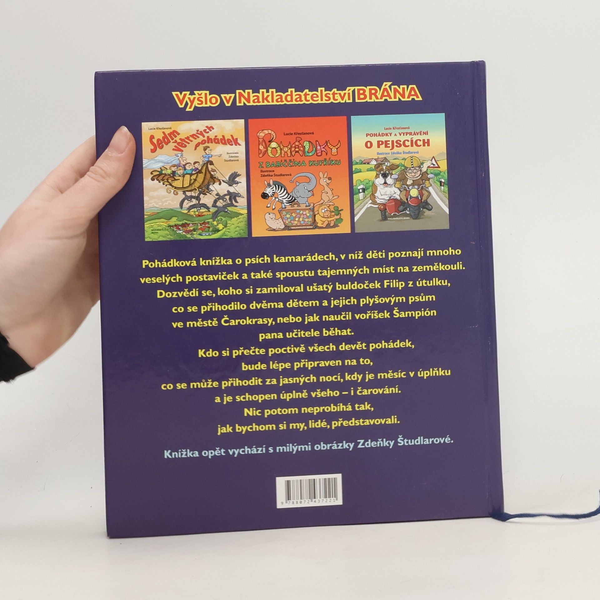 Pohádková knížka o psích kamarádech, v níž děti poznají mnoho veselých postaviček a také spoustu tajemných míst na zeměkouli. Dozvědí se, koho si zamiloval ušatý buldoček Filip z útulku, co se přihodilo dvěma dětem a jejich plyšovým psům ve městě Čarokrasy, nebo jak naučil voříšek Šampion pana učitele běhat. Kdo si přečte poctivě všech devět pohádek, bude lépe připraven na to, co se může přihodit za jasných nocí, kdy je měsíc v úplňku a je schopen úplně všeho – i čarování. Nic potom neprobíhá tak, jak bychom si my, lidé, představovali. Knížka opět vychází s milými obrázky Zdeňky Študlarové.