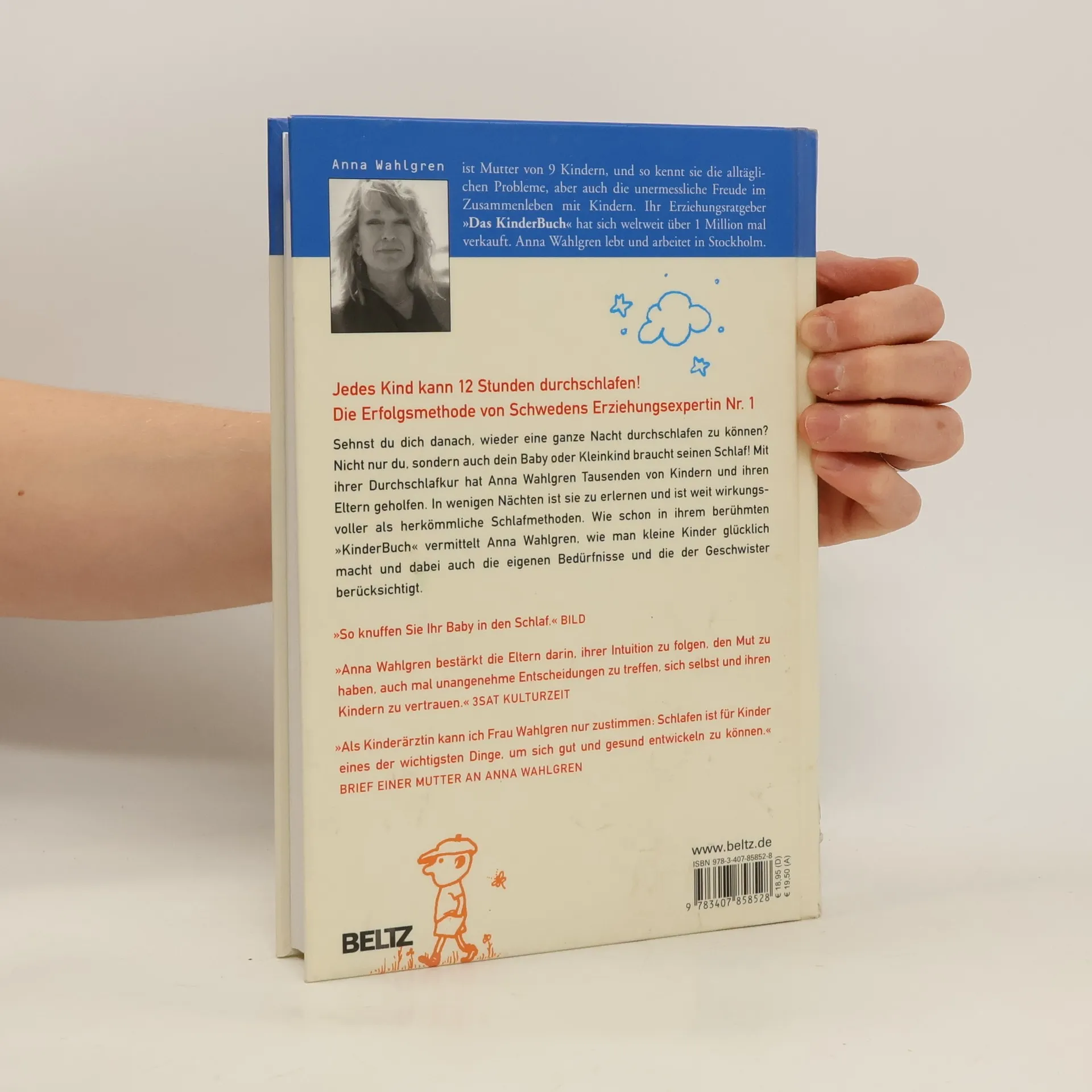 Die Bestsellerautorin Anna Wahlgren steht für unkonventionelle Erziehungstipps. Mit ihrer Durchschlafkur für Babys hat die neunfache Mutter Tausenden von Kindern und ihren Eltern geholfen. Mit Anna Wahlgrens „Knuff-Methode“, einer speziellen sanften Massage, schlafen selbst quengeligste Babys durch. In wenigen Nächten ist sie zu erlernen und ist weit wirkungsvoller – und weniger herzlos! – als herkömmliche Schlafmethoden, die auf dem „kontrollierten Schreienlassen“ beruhen. Dieses Buch gibt nicht nur Lösungen für eines der größten Probleme, das Eltern heute mit ihren Babys haben, sondern es vermittelt eine Lebensphilosophie. Wie man kleine Kinder glücklich macht und dabei auch die eigenen Bedürfnisse und die der Geschwister berücksichtigt – in ihrer bewährten warmherzigen Art gibt Anna Wahlgren jungen Eltern Selbstbewusstsein und Freude am Leben mit Kindern. Die Anna-Wahlgren-Methode: Beruhige das Kind dort, wo es liegt. Bleibe beim Kind, lasse es NICHT schreien, aber nimm es auch nicht hoch, sondern wende die Knuff-Methode an. Dabei hilft ein genauer Zeitplan zum Schlafen und Essen des Kindes.