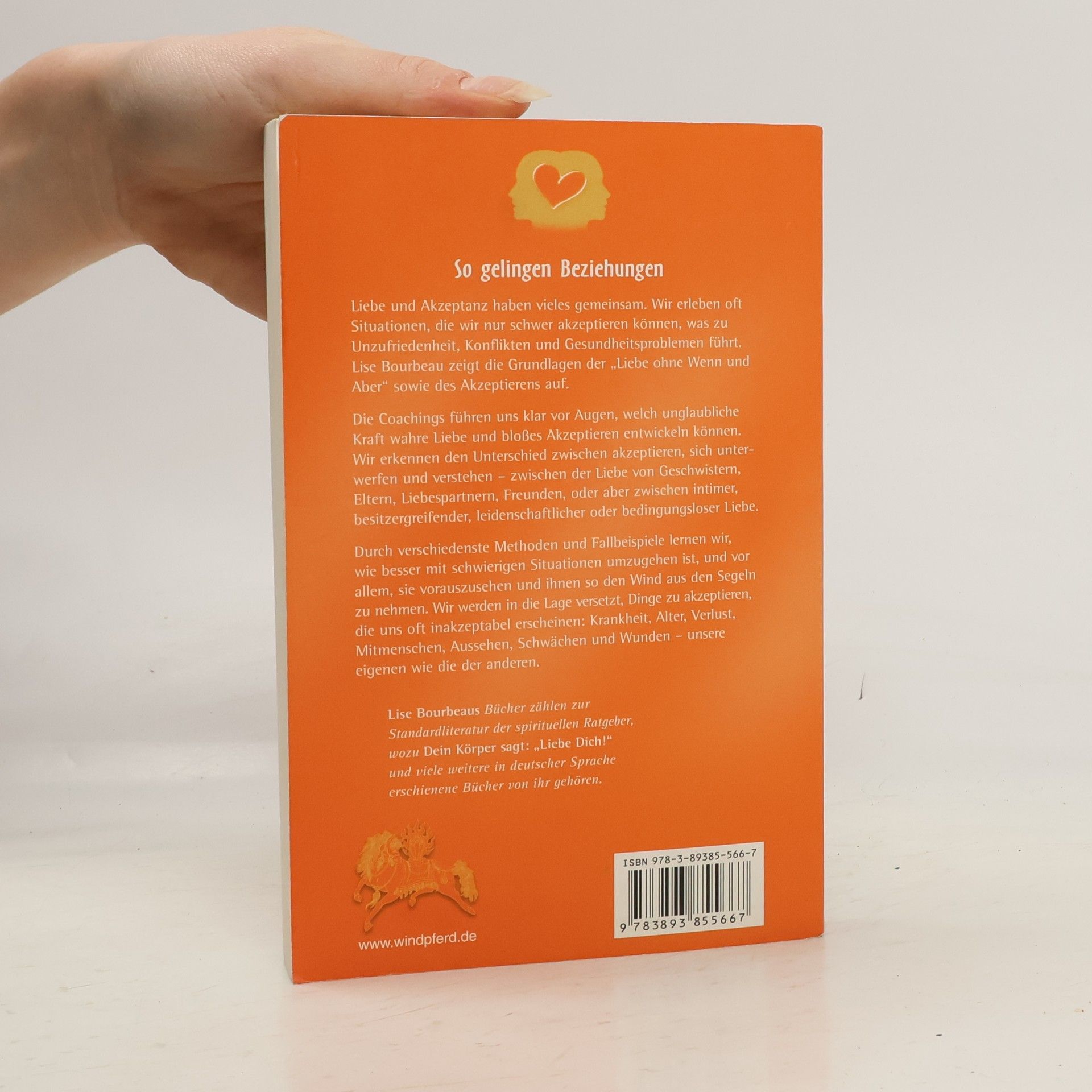 Liebe und Akzeptanz haben vieles gemeinsam. Wir erleben oft Situationen, die wir nur schwer akzeptieren können, was zu Unzufriedenheit, Konflikten und Gesundheitsproblemen führt. Lise Bourbeaus neues Buch zeigt die Grundlagen der Liebe ohne Wenn und Aber sowie des Akzeptierens auf. Die Coachings führen uns klar vor Augen, welch unglaubliche Kraft wahre Liebe und bloßes Akzeptieren entwickeln können. Wir erkennen den Unterschied zwischen akzeptieren, sich unterwerfen und verstehen, zwischen der Liebe von Geschwistern, Eltern, Liebhabern, Freunden, oder aber zwischen intimer, possessiver, leidenschaftlicher oder bedingungsloser Liebe. Durch verschiedenste Methoden und Fallbeispiele lernen wir, besser mit schwierigen Situationen umzugehen und vor allem, sie vorauszusehen und ihnen so den Wind aus den Segeln zu nehmen. Wir werden in die Lage versetzt, Dinge zu akzeptieren, die uns oft inakzeptabel erscheinen: Krankheit, Tod, Alter, Verlust, Mitmenschen, Aussehen, Schwächen und Wunden – unsere eigenen wie die der anderen. Dieses einzigartige Coaching der weltweit erfolgreichen Bestsellerautorin wird nicht nur Ihr Feingefühl für die verschiedensten Situationen Ihres Lebens wecken, sondern Ihnen auch konkrete Hilfe sein, vermeintliche Hindernisse zu bewältigen.