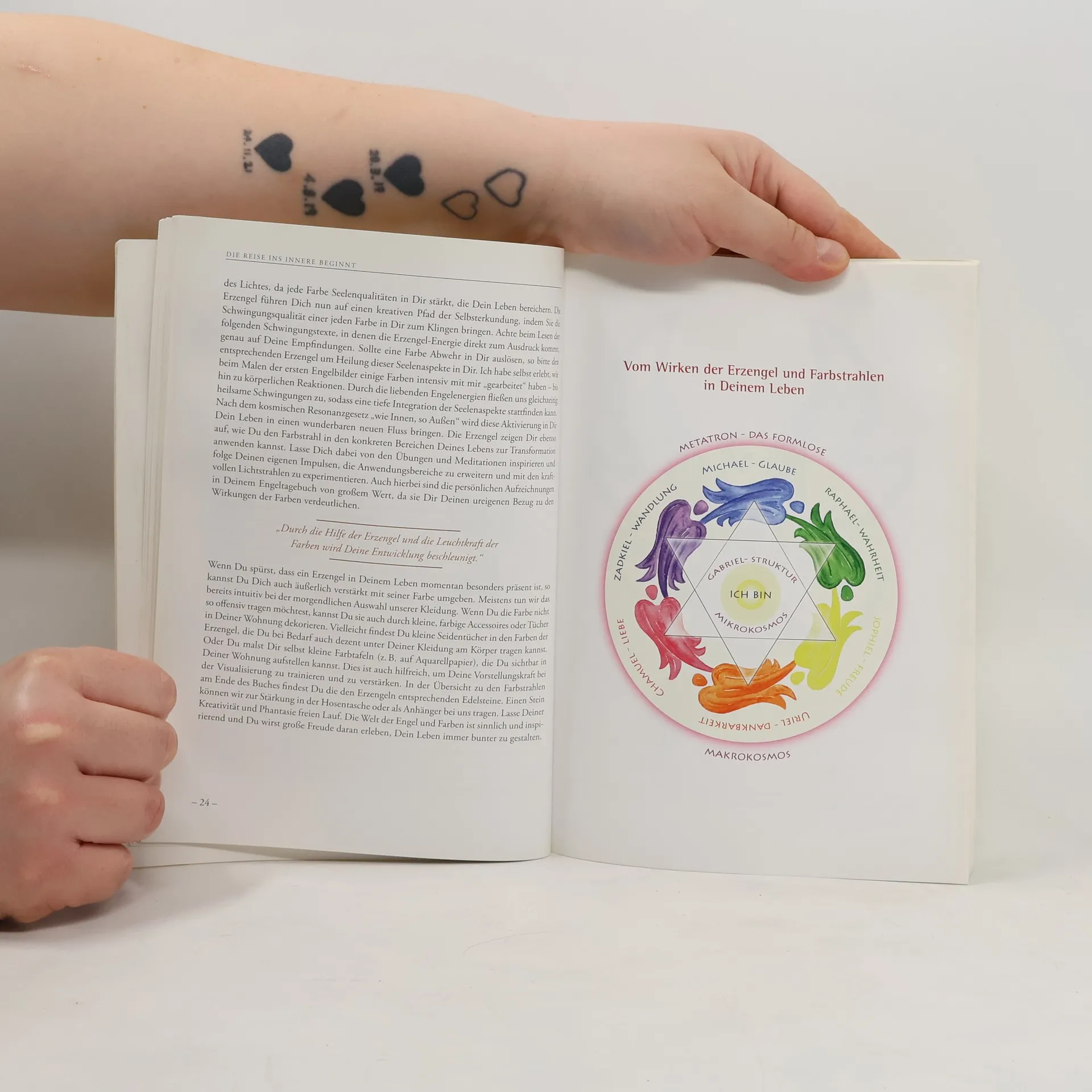 Erzengel wirken durch ihre Farbstrahlen direkt auf unser energetisches Zentrum. Wer diese Verbindung fühlen kann, dem öffnen sich neue Wege, Kreativität und Freude in sein Leben zu lassen und Herausforderungen mit lichtvoller Leichtigkeit zu meistern. In diesem mit viel Liebe zum Detail gestalteten Buch weiht Silke Bader mit Meditationen, Übungen und ausführlichen Texten in die Kraft der acht Erzengel, ihre Farbstrahlen, Wirkungsbereiche und Tugenden ein. Ausführlich erläutert sie jeden Lebensbereich, der mit den jeweiligen Farben in Verbindung steht und sie gibt Hinweise, die Farbstrahlen direkt zur Aktivierung unserer Schöpferkraft anzuwenden. So erfahren wir, wie wir mit himmlischer Unterstützung jederzeit unser Seelenpotenzial, unseren „inneren Regenbogen“, aktivieren können. Wir lernen, die Kraft der Erzengel ganz konkret in unserem Leben zu nutzen und können uns so Schritt für Schritt von alten Mustern befreien, um unser wahres Wesen und unsere ureigene Kreativität zu verwirklichen.