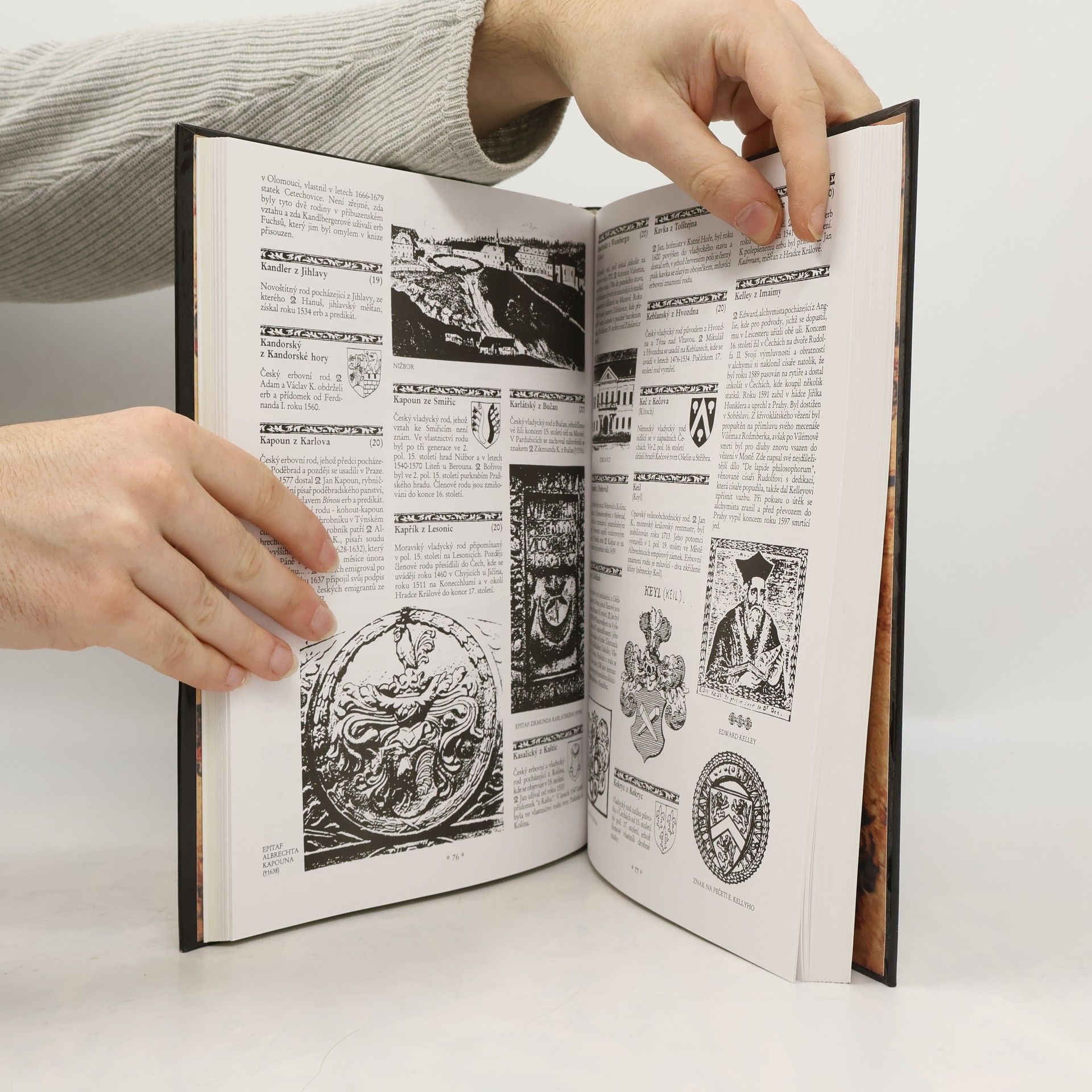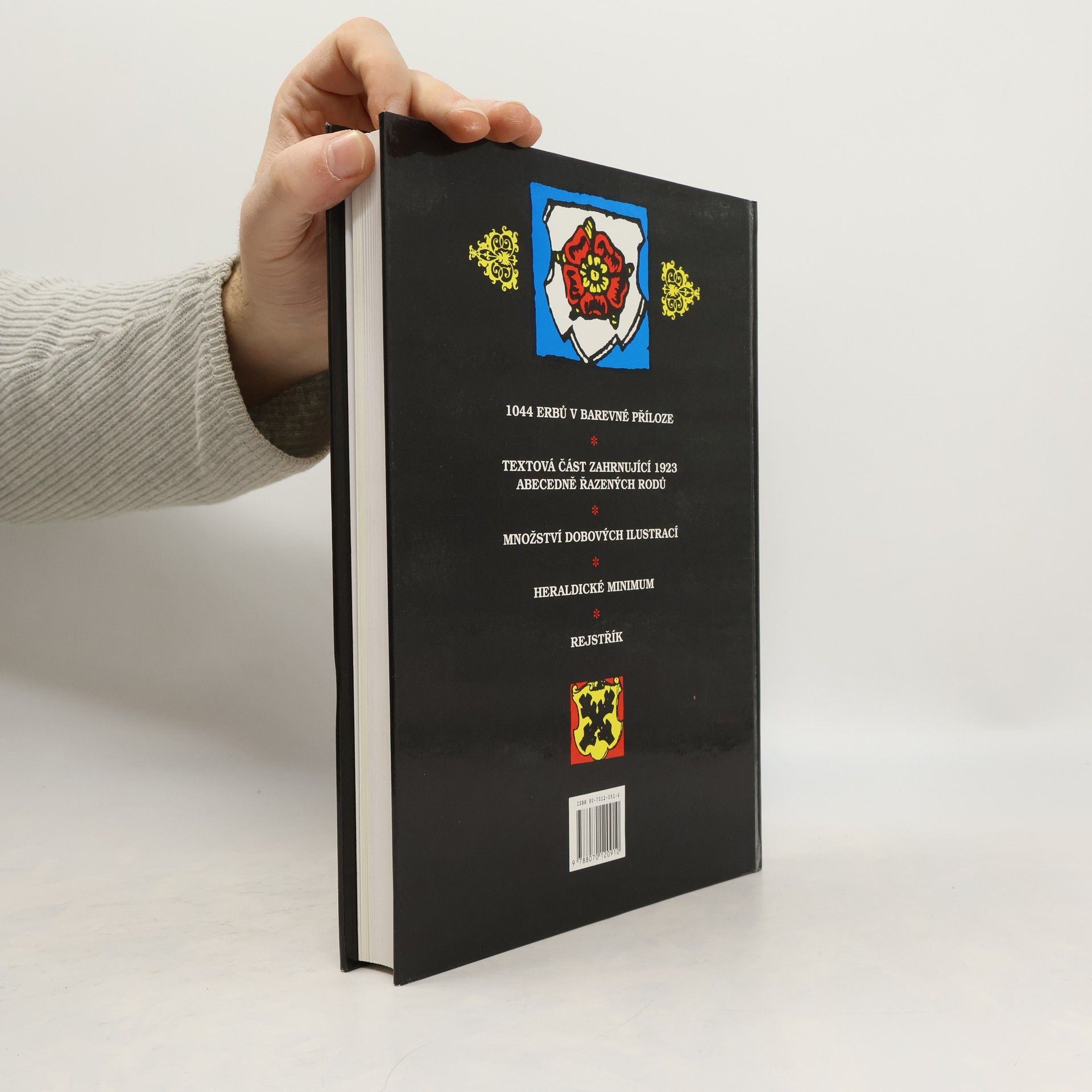 "aneb kniha o znacích i osudech rodů žijících v Čechách a na Moravě podle starých pramenů a dávných ne vždy věrných svědectví" Kniha obsahuje 1044 erbů v barevné příloze, 1923 abecedně řazených rodů i množství dobových ilustrací.