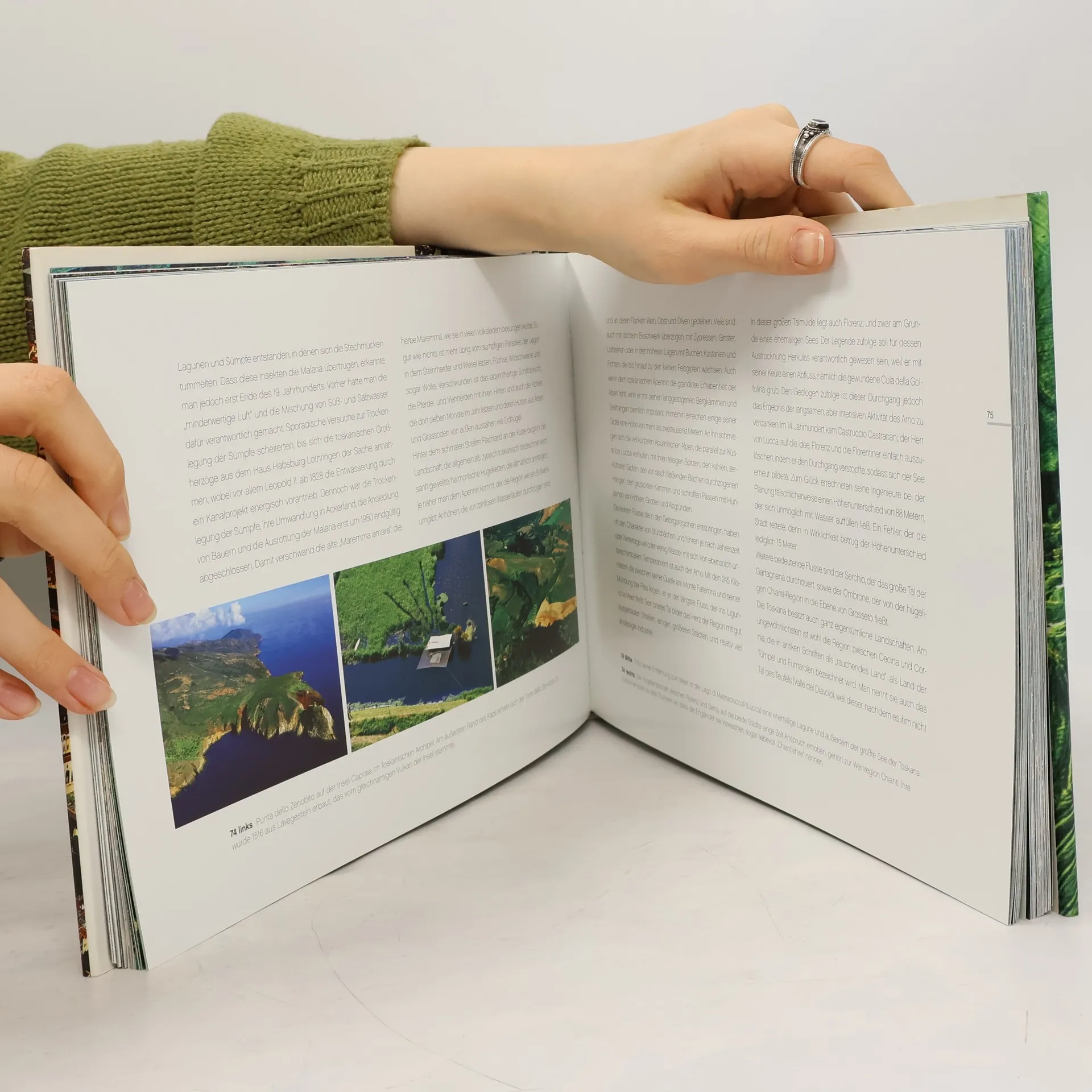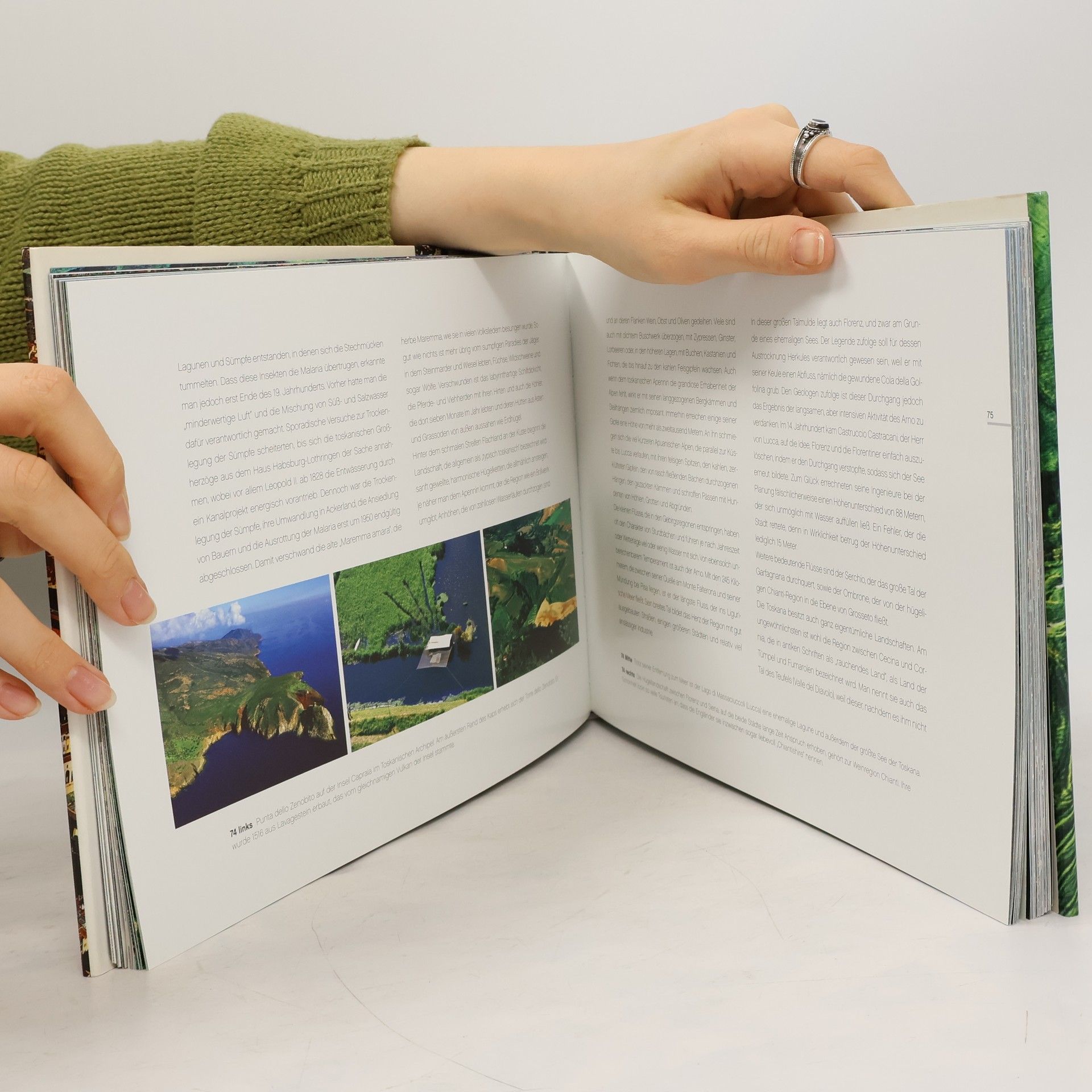 Neben Florenz mit seinem verschachtelten Gewirr von Ziegeldächern und architektonischen Wunderwerken wie dem Ponte Vecchio bietet die gesamte Region der Toskana zahlreiche landschaftliche und kulturelle Reize, die seit Jahrhunderten Reisende anziehen. Die außergewöhnlichen Luftbildfotografien zeigen diese alte Kulturlandschaft aus einem äußerst reizvollen Blickwinkel und enthüllen vor den Augen des Betrachters verborgene und ungewohnte Ansichten. In diesem Band wird die Heimat Dantes, Giottos und da Vincis in all ihrer Pracht und Vielfalt porträtiert: die endlos erscheinenden Sonnenblumenfelder, die in der Landschaft um Siena so typischen Zypressen, Städte wie Florenz und Dörfer, Küsten und sanften Hügel.
