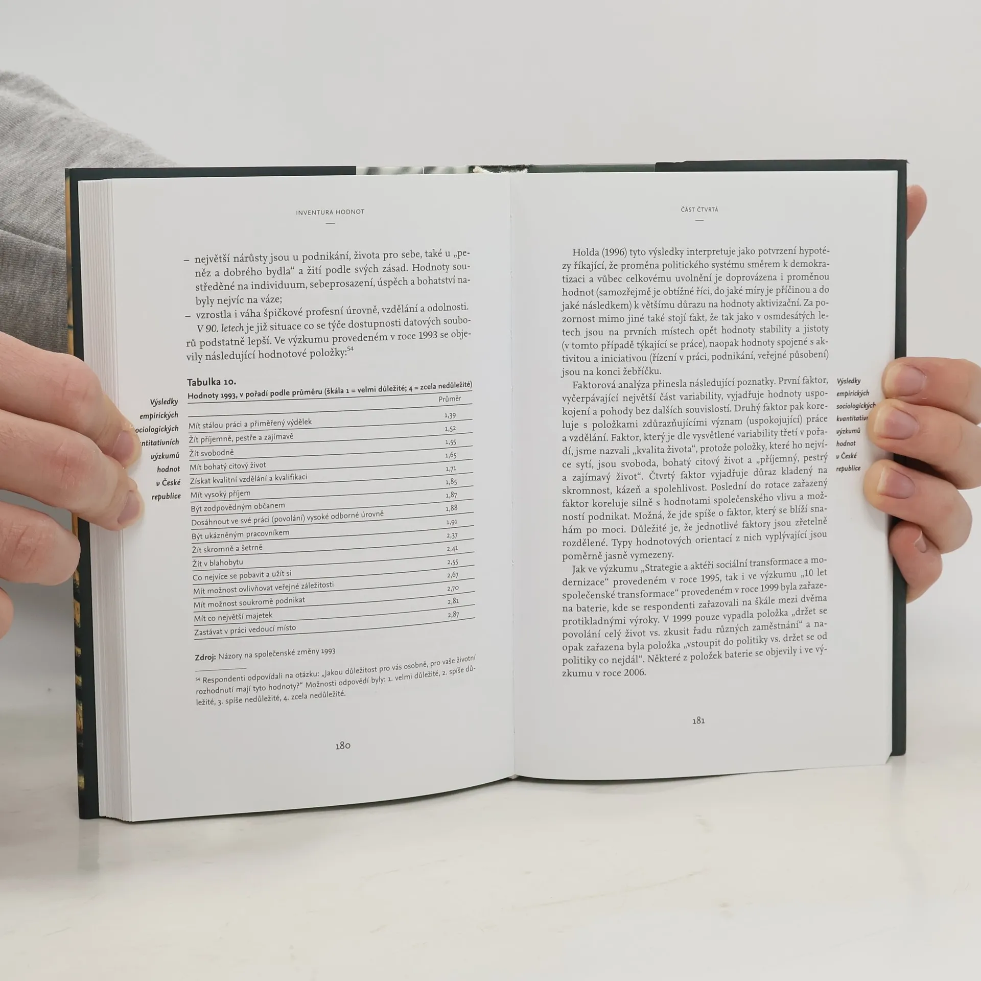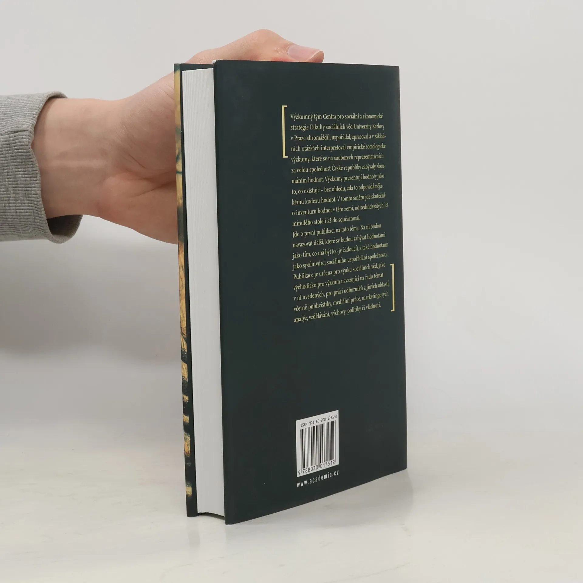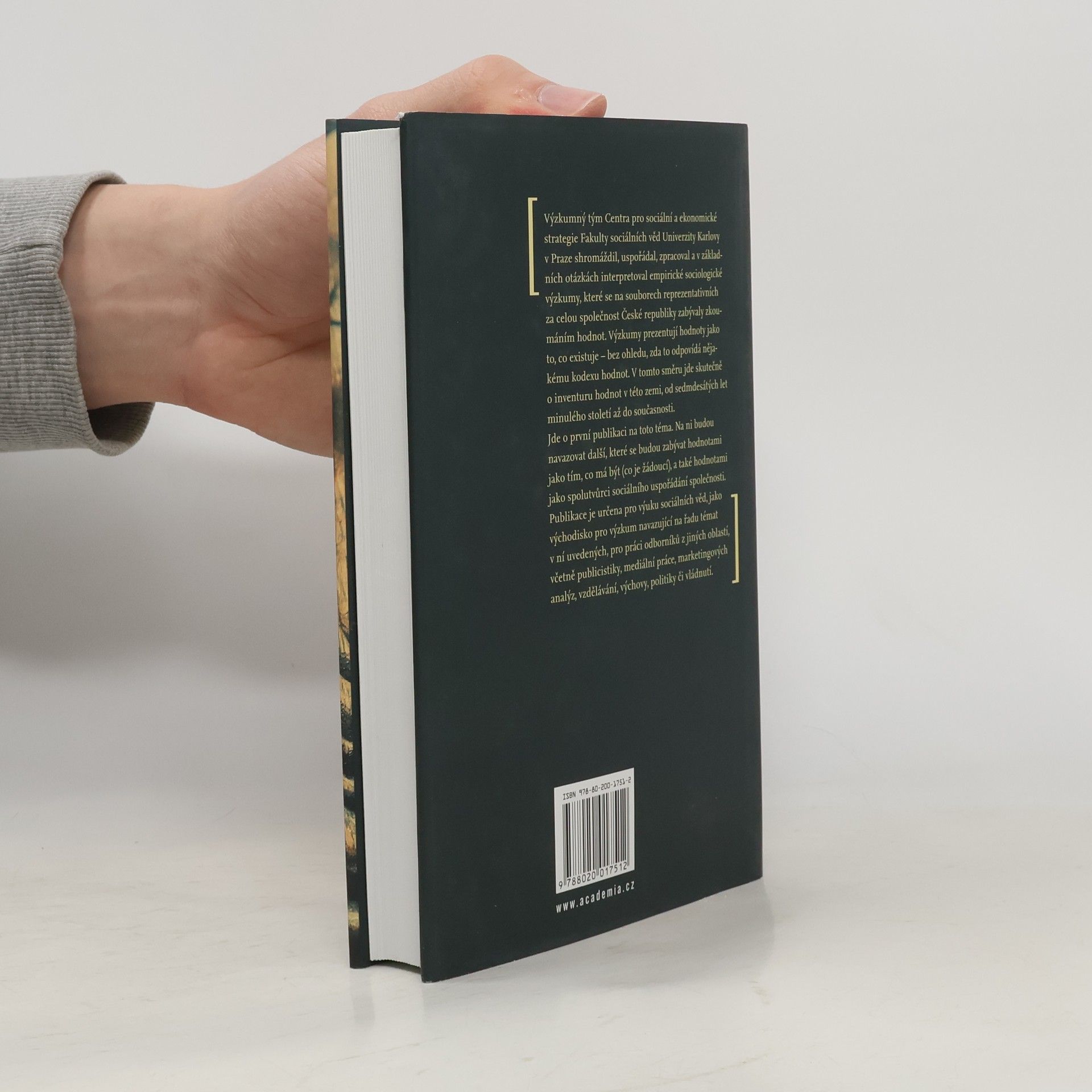 Výzkumný tým Centra pro sociální a ekonomické strategie Fakulty sociálních věd Univerzity Karlovy v Praze shromáždil, uspořádal, zpracoval a v základních otázkách interpretoval empirické sociologické výzkumy, které se na souborech reprezentativních za celou společnost České republiky zabývaly zkoumáním hodnot. Výzkumy prezentují hodnoty jako to, co existuje – bez ohledu, zda to odpovídá nějakému kodexu hodnot. V tomto směru jde skutečně o inventuru hodnot v této zemi, od sedmdesátých let minulého století až do současnosti. Jde o první publikaci na toto téma. Na ni budou navazovat další, které se budou zabývat hodnotami jako tím, co má být (co je žádoucí), a také hodnotami jako spolutvůrci sociálního uspořádání společnosti. Publikace je určena pro výuku sociálních věd, jako východisko pro výzkum navazující na řadu témat v ní uvedených, pro práci odborníků z jiných oblastí, včetně publicistiky, mediální práce, marketingových analýz, vzdělávání, výchovy, politiky či vládnutí.