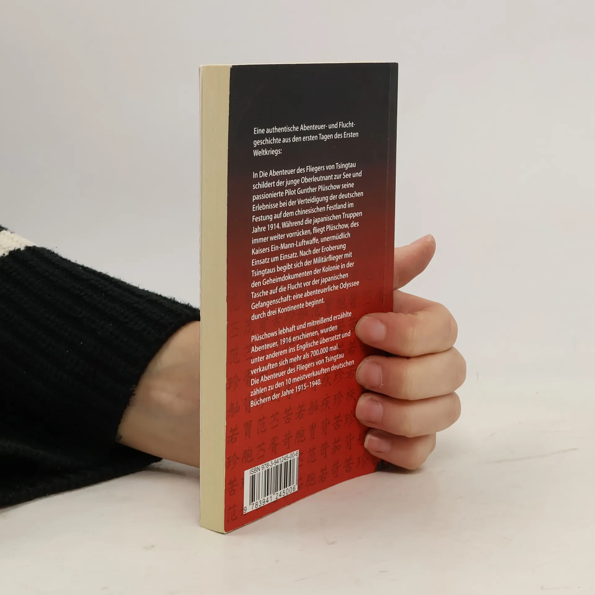 Eine authentische Abenteuer- und Fluchtgeschichte aus den ersten Tagen des Ersten Weltkriegs: In Die Abenteuer des Fliegers von Tsingtau schildert der junge Oberleutnant zur See und passionierte Pilot Gunther Plüschow seine Erlebnisse während der Verteidigung der deutschen Festung auf dem chinesischen Festland im Jahre 1914. Während die japanischen Truppen immer weiter vorrücken, fliegt Plüschow, des „Kaisers Ein-Mann-Luftwaffe“, unermüdlich Einsatz um Einsatz. Nach der Eroberung Tsingtaus flieht er mit den Geheimdokumenten der Kolonie in der Tasche vor der japanischen Gefangenschaft: eine abenteuerliche Odyssee durch drei Kontinente beginnt … Plüschows lebhaft und mitreißend erzählte Abenteuer, 1916 erstmals erschienen, wurden unter anderem ins Englische übersetzt und verkauften sich mehr als 700.000 mal. Die Abenteuer des Fliegers von Tsingtau zählen zu den 10 meistverkauften deutschen Büchern der Jahre 1915-1940.