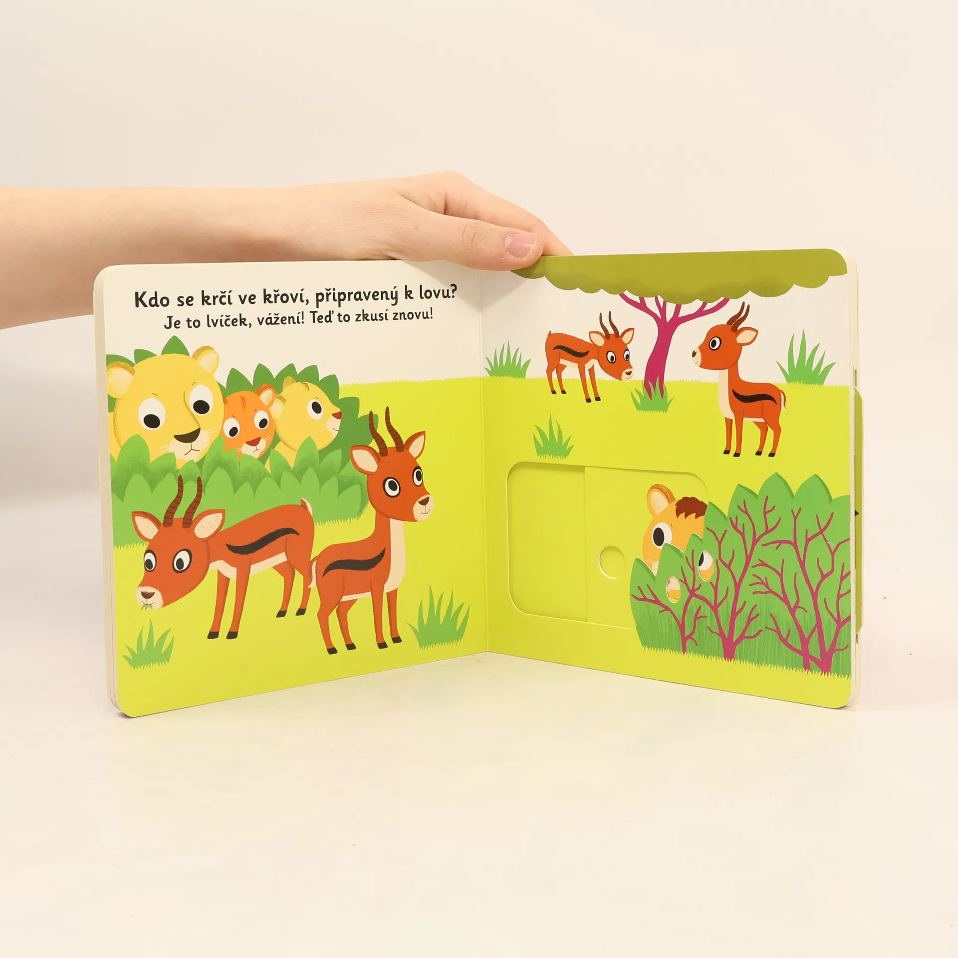 Deset, dvacet, kde je lvíček? – U bratříčků, u sestřiček! Objevovat svět s tímto leporelem pro nejmenší děti od jednoho roku je tak zábavné! Pevné stránky s pohyblivými prvky procvičí i jemnou motoriku. Stačí jen vložit prstík do správného otvoru a lehce vysunout, zatáhnout nebo otočit a hned bude váš malý objevitel znát odpovědi. Knížka s prvky Montessori.