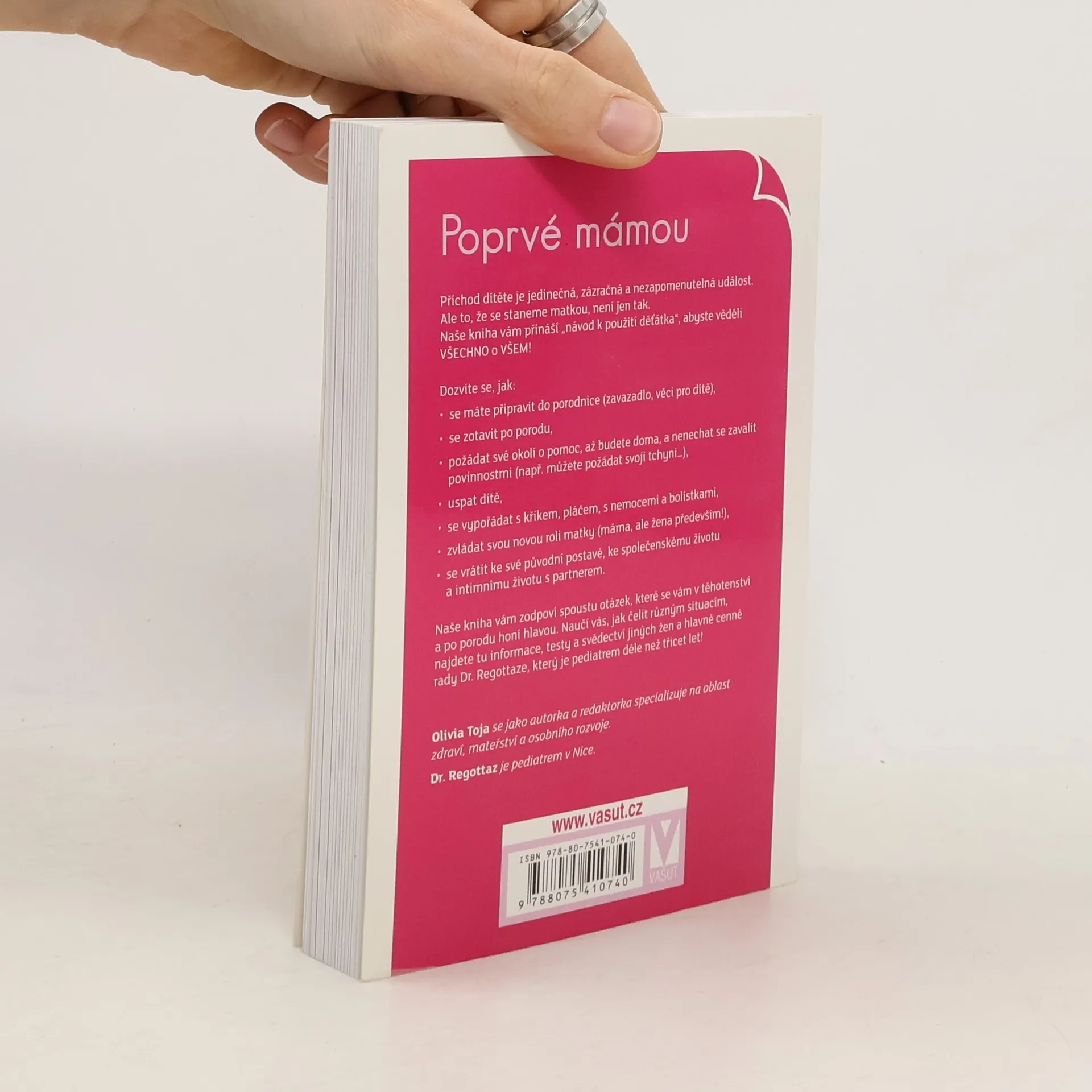 Příchod dítěte je jedinečná, zázračná a nezapomenutelná událost. Ale to, že se staneme matkou, není jen tak. Naše kniha vám přináší „návod k použití děťátka“, abyste věděli VŠECHNO o VŠEM! Dozvíte se, jak: • se máte připravit do porodnice (zavazadlo, věci pro dítě), • se zotavit po porodu, • požádat své okolí o pomoc, až budete doma, a nenechat se zavalit povinnostmi (např. můžete požádat svoji tchyni…), • uspat dítě, • se vypořádat s křikem, pláčem, s nemocemi a bolístkami, • zvládat svou novou roli matky (máma, ale žena především!), • se vrátit ke své původní postavě, ke společenskému životu a intimnímu životu s partnerem. Naše kniha vám zodpoví spoustu otázek, které se vám v těhotenství a po porodu honí hlavou. Naučí vás, jak čelit různým situacím, najdete tu informace, testy a svědectví jiných žen a hlavně cenné rady Dr. Regottaze, který je pediatrem déle než třicet let!