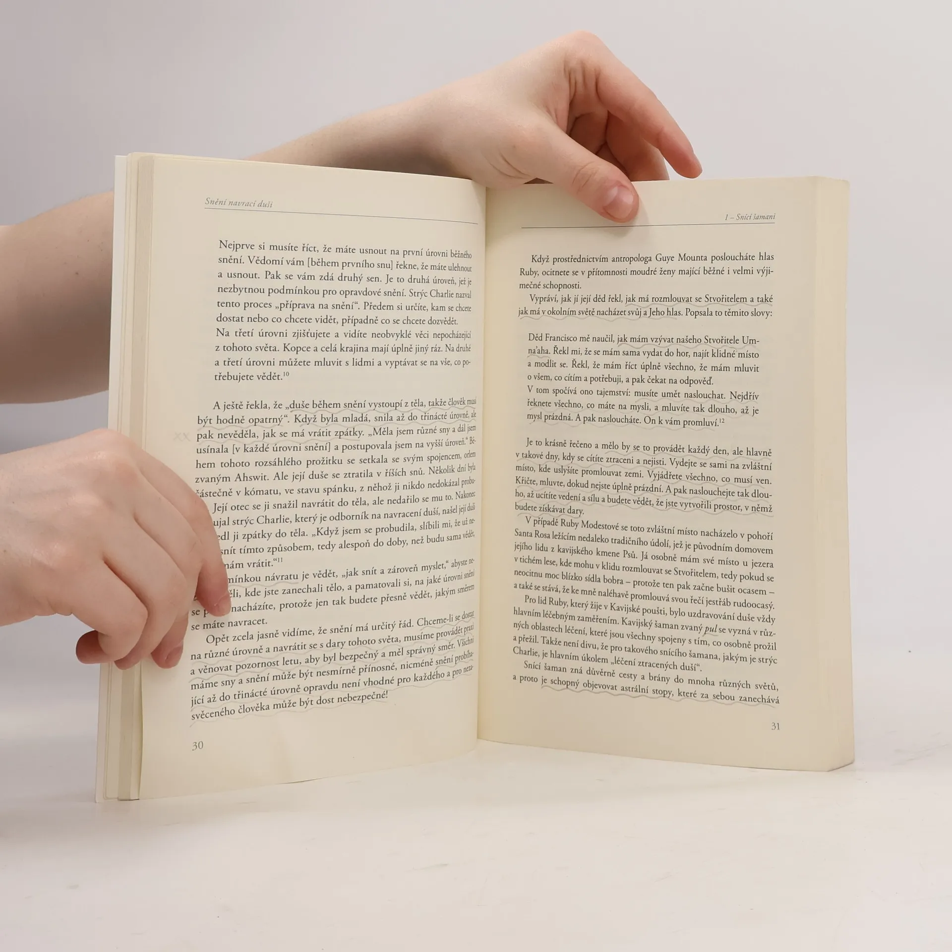 Robert Moss, učitel šamanského snění, v této výjimečné knize názorně ukazuje, jak se můžeme stát šamany vlastní duše a uzdravit svůj život. Pro současné léčebné metody jsou velkým přínosem dávné šamanské techniky vycházející z poznání, že v průběhu života můžeme utrpět ztrátu částí své duše – je to ztráta části životní energie a identity – a chceme-li být opět celiství a zdraví, musíme najít vhodné prostředky k uzdravení duše. Moss ukazuje, jak nám sny poskytují mapy, podle nich můžeme putovat na místa, kde najdeme ztracené či ukradené části duše, abychom je mohli navrátit domů. Učí nás, jak se máme spojit se zvířecími duchy, ovládnout větrného koně a vydat se na něm do míst léčení a prožívat dobrodružství v rozsáhlejší realitě. A díky tomu nacházíme cesty k léčení ran minulosti a otevíráme brány k uzdravení duše celé společnosti. Tato kniha vám ukáže, jak můžete vstupovat do minulých i budoucích životů a prožívat životy svých paralelních já a navrátit se z putování s mnoha poznatky a dary. Moss říká: „Nejde jen o to, abychom udrželi duši v těle a měli na paměti, že jsme „zrozeni z hvězd“ a naše příběhy se odvíjely – a stále odvíjejí – na více časových rovinách. Stejně důležité je rozvíjet duši, abychom pokročili dál a stali se ještě výraznějším ztělesněním vyššího Já.“ A s velkým nadšením nás vyzývá, ať se staneme stvořiteli a vnášíme do tohoto světa stále něco nového.
