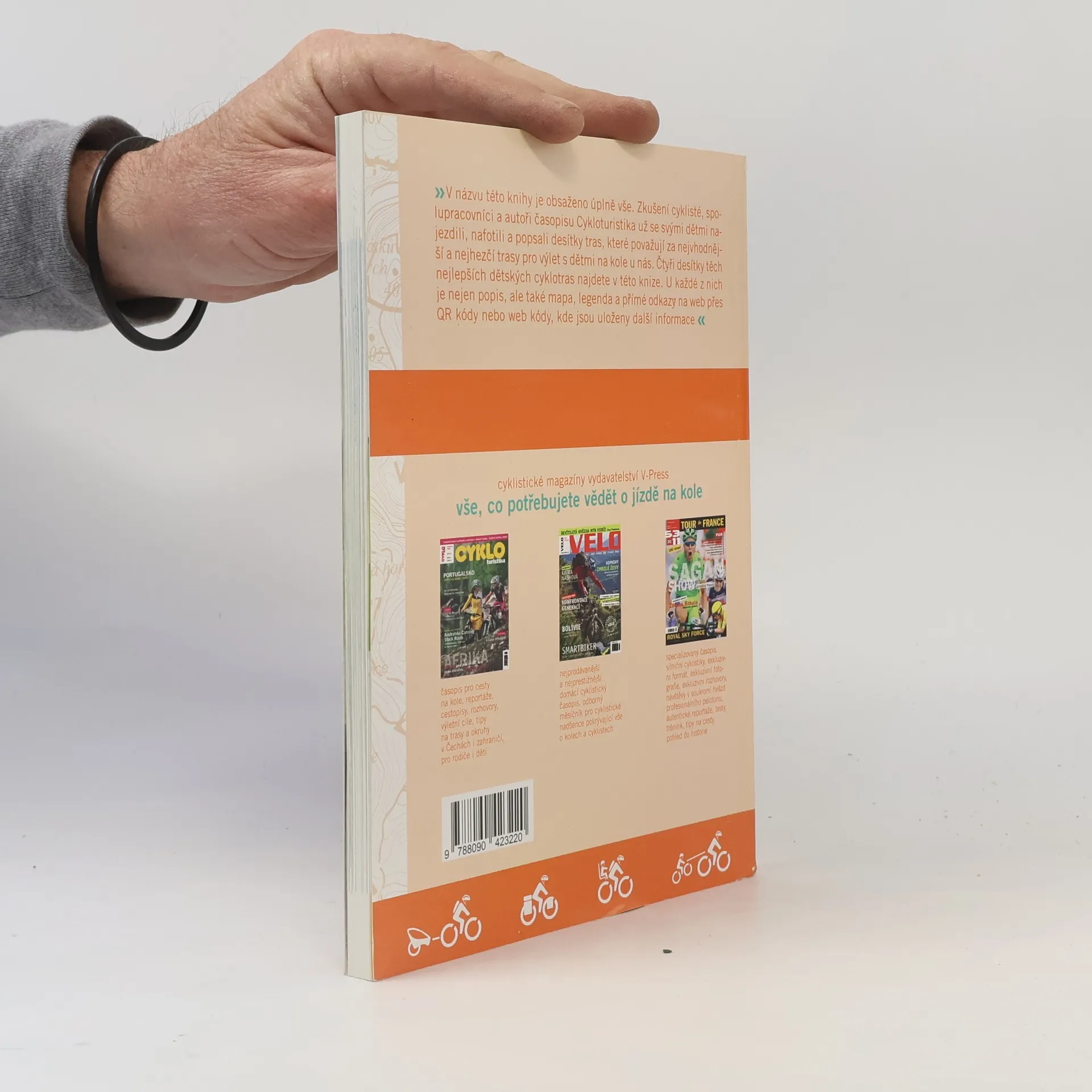 - Trasy - 40 nejlepších cyklotras pro výlety s dětmi v ČR včetně map, fotografií, GPS souřadnic, zajímavostí, odpočinkových míst a hřišť na trase, turistických zajímavostí. Pomocí QR kódů nebo webkódů budou ke stažení data na webové stránce. - Jak naučit dítě jezdit na kole, metodický materiál jak nejlépe a nejsnáze začít - Jak vybrat kolo, aneb od odrážedla až po dospělý bíke, typologie kol podle velikosti postavy a jezdeckých schopností dítěte, ale také vozíky a sedačky - Cyklistická minivýbava, vše, co může vašemu dítěti udělat jízdu na kole příjemnější a bezpečnější - Zábava na cestě, geocaching a používání GPS na cestách, drobné zábavné hry