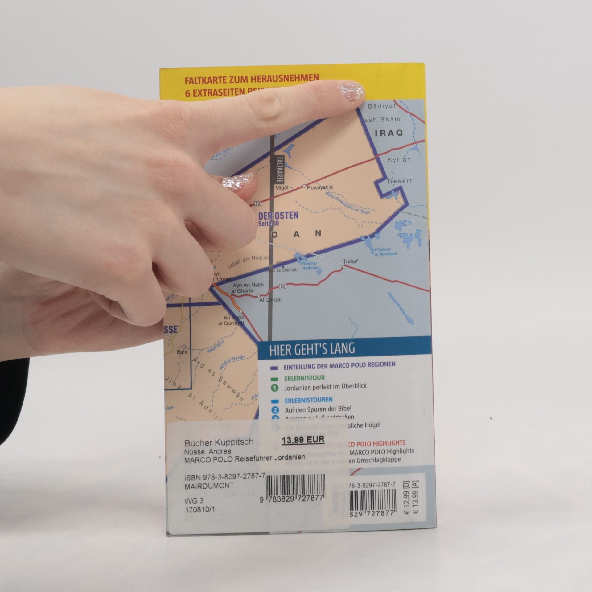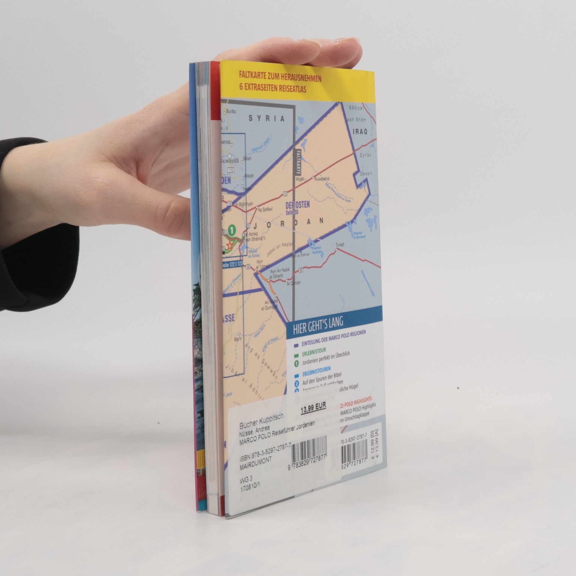 Urlaub ab der ersten Seite: Der Marco Polo Reiseführer für Jordanien ist der perfekte Begleiter für jede Art von Reise, sei es ein aktiver Urlaub oder pure Entspannung. Entdecke Sightseeing-Highlights, Stadtspaziergänge und Erlebnistouren mit Insider-Tipps von Autoren, die vor Ort leben und wissen, was die Einheimischen lieben. Finde die besten Shopping-Spots, Ausgeh-Locations und Restaurant-Tipps für jeden Geschmack. Außerdem gibt es Empfehlungen für Familienurlaube, Low-Budget-Reisen und Aktivitäten bei schlechtem Wetter. Lass dich von Musik-Playlists, Blogs und Buchempfehlungen sofort in Urlaubsstimmung versetzen. Der Reiseführer erleichtert die Planung mit wichtigen Informationen zu deinem Reiseziel, Übernachtungsmöglichkeiten und Anreise. Das übersichtliche Layout mit gelb markierten Highlights und neu gestalteten Themenkarten macht das Reisen einfach. Mit der kostenlosen MARCO POLO Touren App hast du eine hervorragende Orientierung dank Online- und Offline-Karten. Das Rundum-Sorglos-Paket umfasst Sprachführer, die besten Fotospots und wichtige „bloß nicht“-Tipps. Gestalte deine Reise ganz nach deinen Wünschen und erlebe unvergessliche Momente mit MARCO POLO – in deinem eigenen Rhythmus!