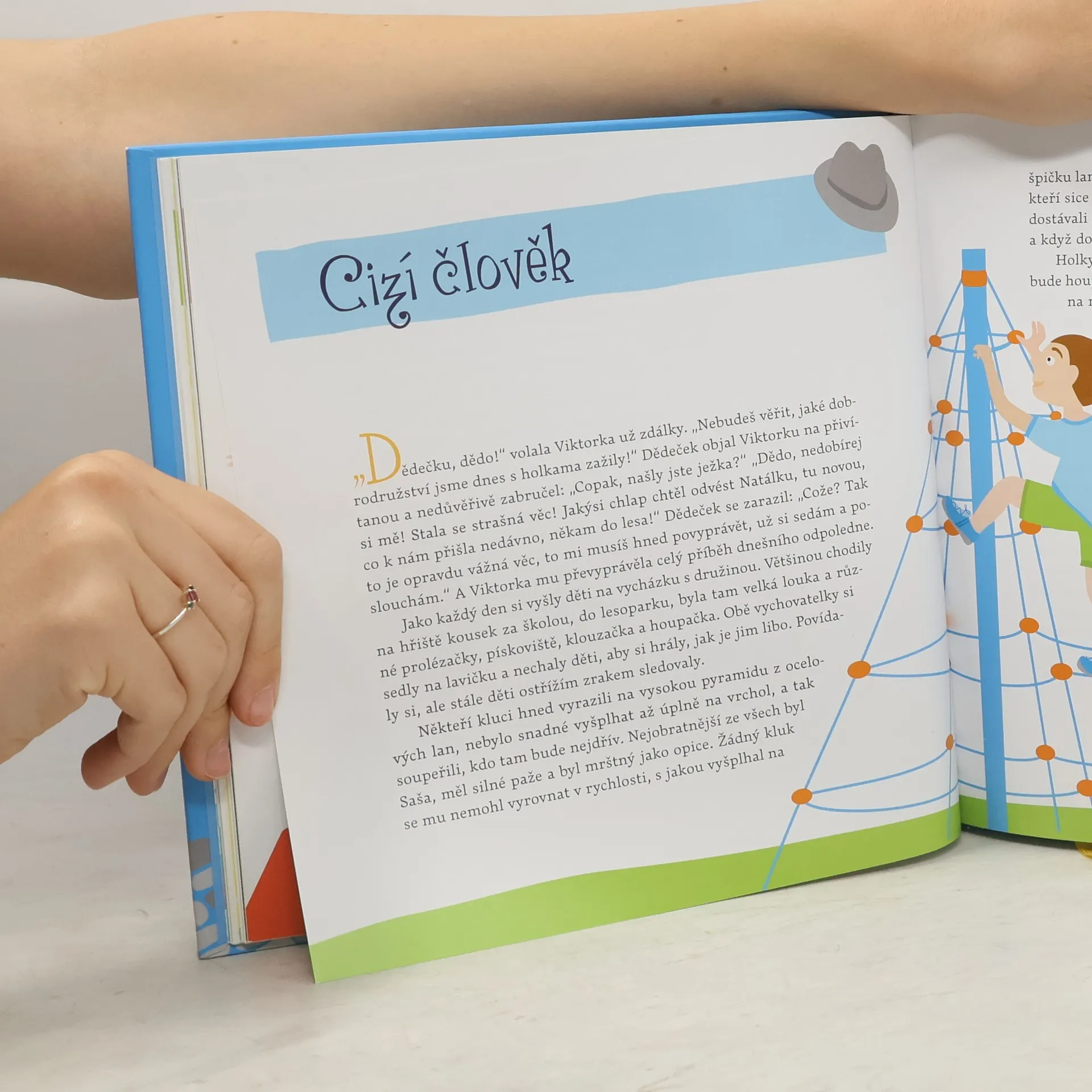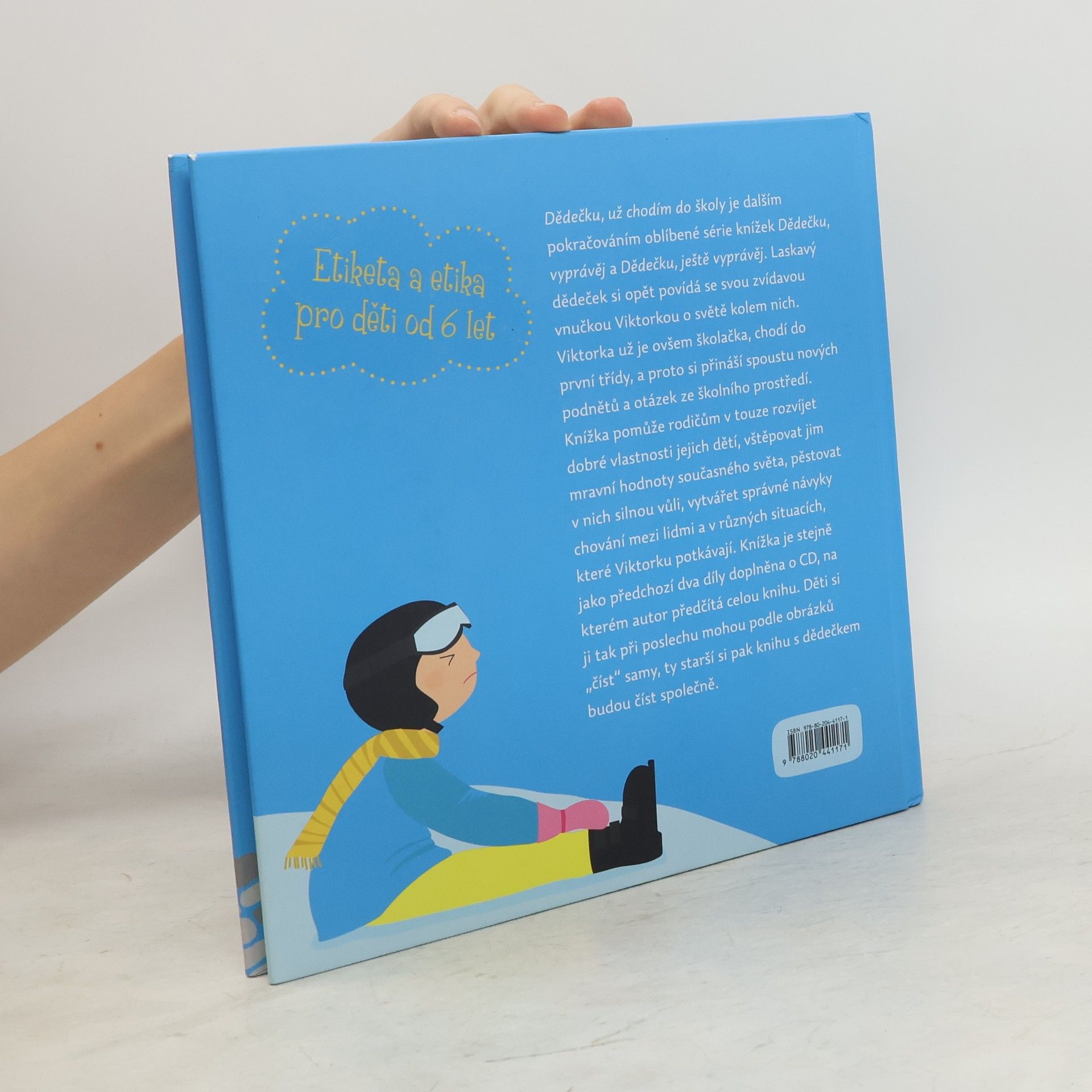 Dědečku, už chodím do školy je dalším pokračováním oblíbené série knížek Dědečku, vyprávěj a Dědečku, ještě vyprávěj. Laskavý dědeček si opět povídá se svou zvídavou vnučkou Viktorkou o světě kolem nich. Viktorka už je ovšem školačka, chodí do první třídy, a proto si přináší spoustu nových podnětů a otázek ze školního prostředí. Knížka pomůže rodičům v touze rozvíjet dobré vlastnosti jejich dětí, vštěpovat jim mravní hodnoty současného světa, pěstovat v nich silnou vůli, vytvářet správné návyky chování mezi lidmi a v různých situacích, které Viktorku potkávají. Děti si ji tak při poslechu mohou podle obrázků „číst“ samy, ty starší si pak knihu s dědečkem budou číst společně.