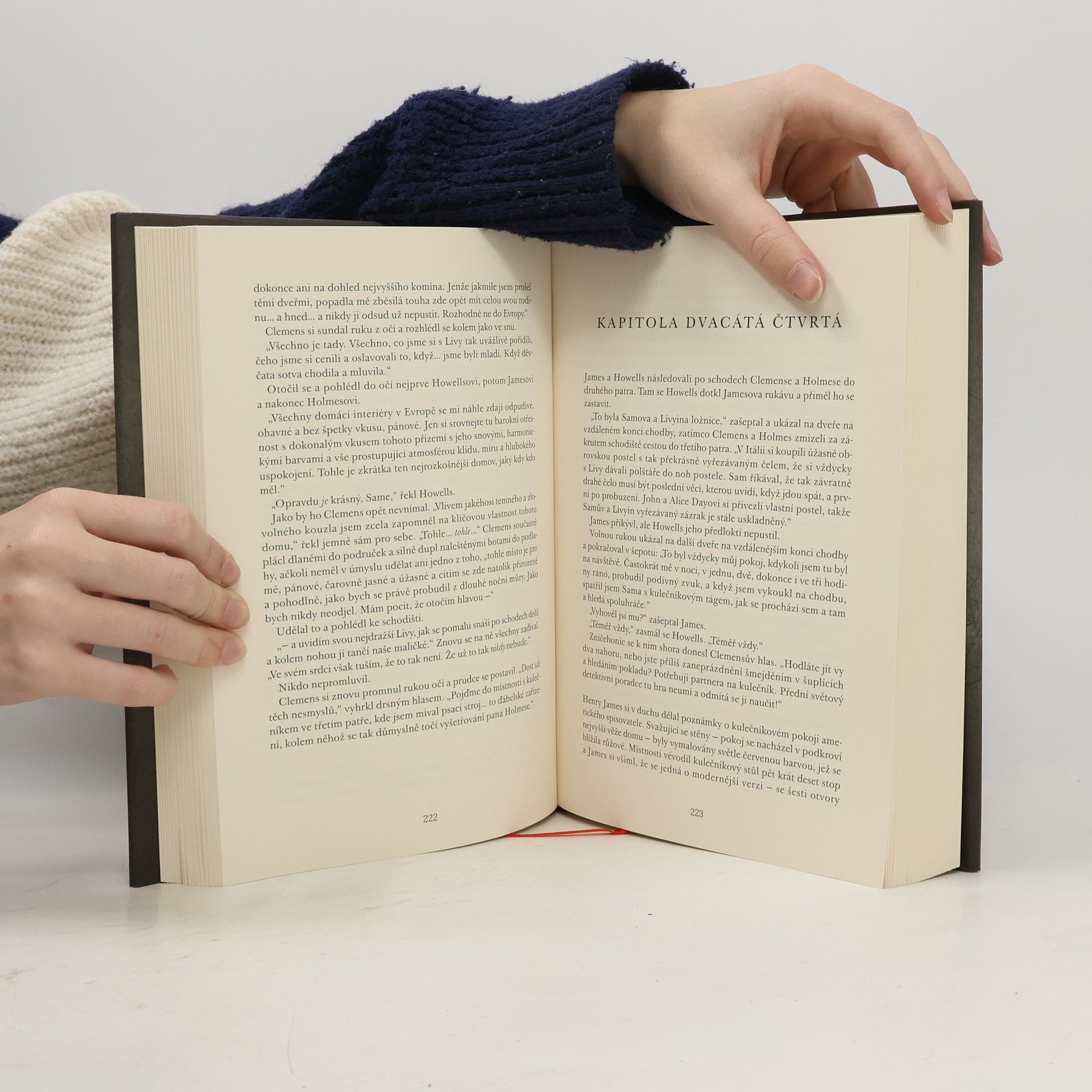 V roce 1893 se slavný detektiv Sherlock Holmes a spisovatel Henry James vydávají do Ameriky, aby rozluštili záhadu svázanou se sedm let starým úmrtím Clover Adamsové, manželky váženého historika Henryho Adamse (jehož rodina dala Spojeným státům dva prezidenty). Podle všeho se za údajnou Cloveřinou sebevraždou skrývá mnohem více, než by se na první pohled zdálo. A dokonce by se mohlo jednat o násilný čin související se záležitostmi státního významu. Tou dobou se Holmes právě nachází uprostřed tříletého období po událostech u Reichenbašských vodopádů, během něhož ho Londýňané považují za mrtvého. Holmes svou smrt předstíral, neboť pomocí vlastních dedukčních schopností dospěl k závěru, že je pouhou fiktivní postavou. Tohle zjištění pro Henryho Jamese představuje celou řadu dalších problémů: je-li jeho spoluvyšetřovatel pouhým dílem fikce, co to dělá z něj? A co si má mistrovský vypravěč počít se zlověstnou silou – nesoucí možná jméno Moriarty –, která je nejspíš ze stínů všechny ovládá?