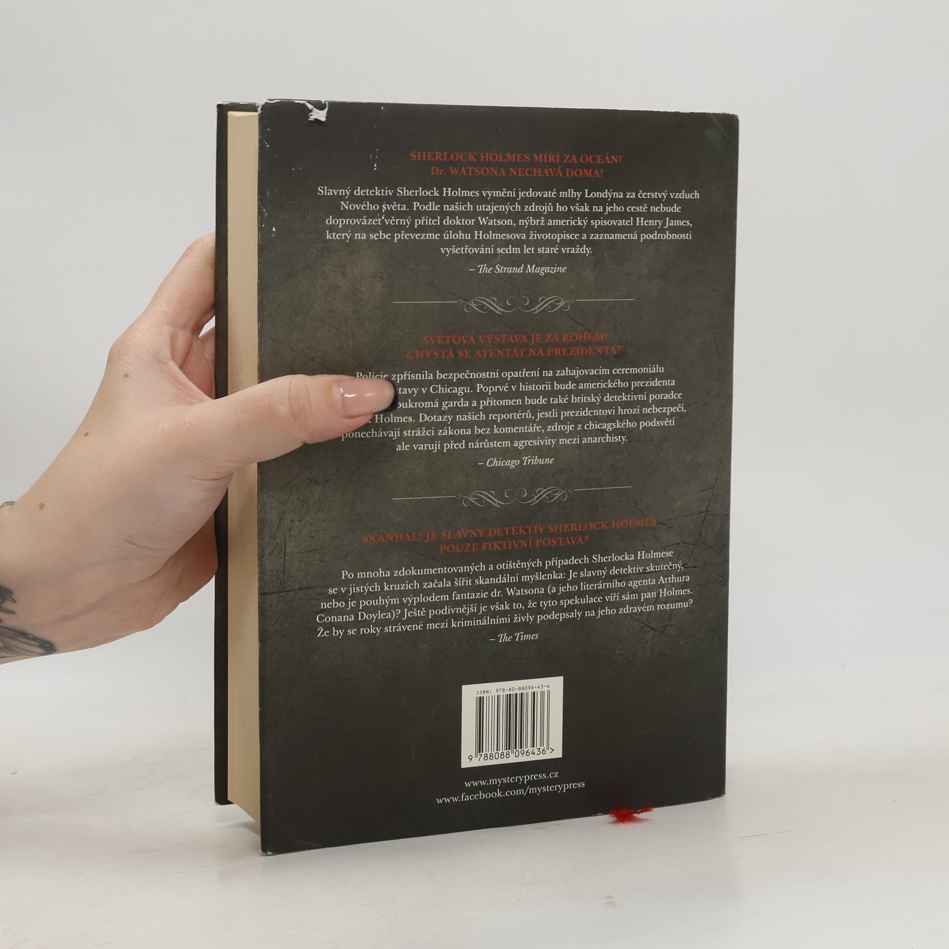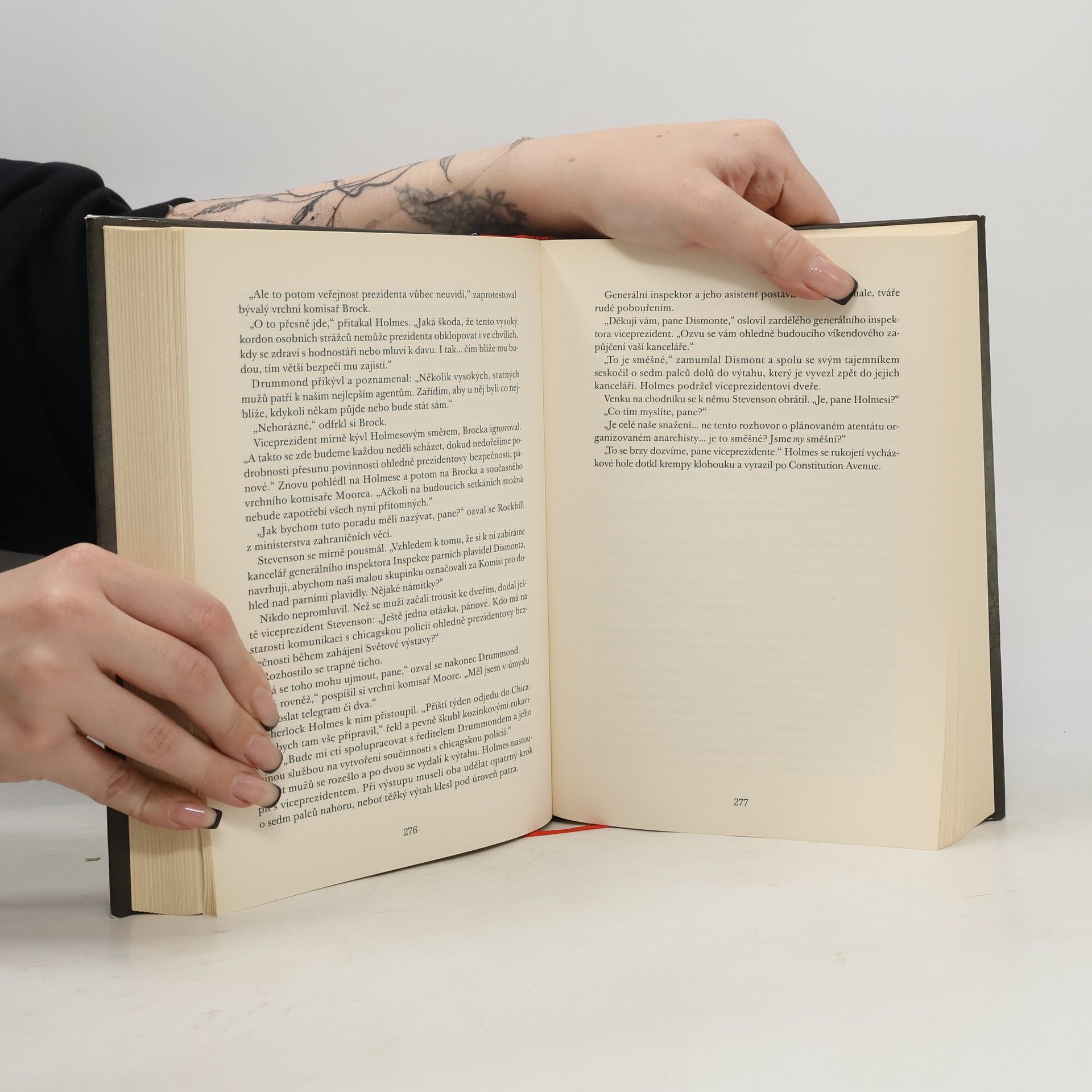 V roce 1893 se slavný detektiv Sherlock Holmes a spisovatel Henry James vydávají do Ameriky, aby rozluštili záhadu svázanou se sedm let starým úmrtím Clover Adamsové, manželky váženého historika Henryho Adamse (jehož rodina dala Spojeným státům dva prezidenty). Podle všeho se za údajnou Cloveřinou sebevraždou skrývá mnohem více, než by se na první pohled zdálo. A dokonce by se mohlo jednat o násilný čin související se záležitostmi státního významu. Tou dobou se Holmes právě nachází uprostřed tříletého období po událostech u Reichenbašských vodopádů, během něhož ho Londýňané považují za mrtvého. Holmes svou smrt předstíral, neboť pomocí vlastních dedukčních schopností dospěl k závěru, že je pouhou fiktivní postavou. Tohle zjištění pro Henryho Jamese představuje celou řadu dalších problémů: je-li jeho spoluvyšetřovatel pouhým dílem fikce, co to dělá z něj? A co si má mistrovský vypravěč počít se zlověstnou silou – nesoucí možná jméno Moriarty –, která je nejspíš ze stínů všechny ovládá?