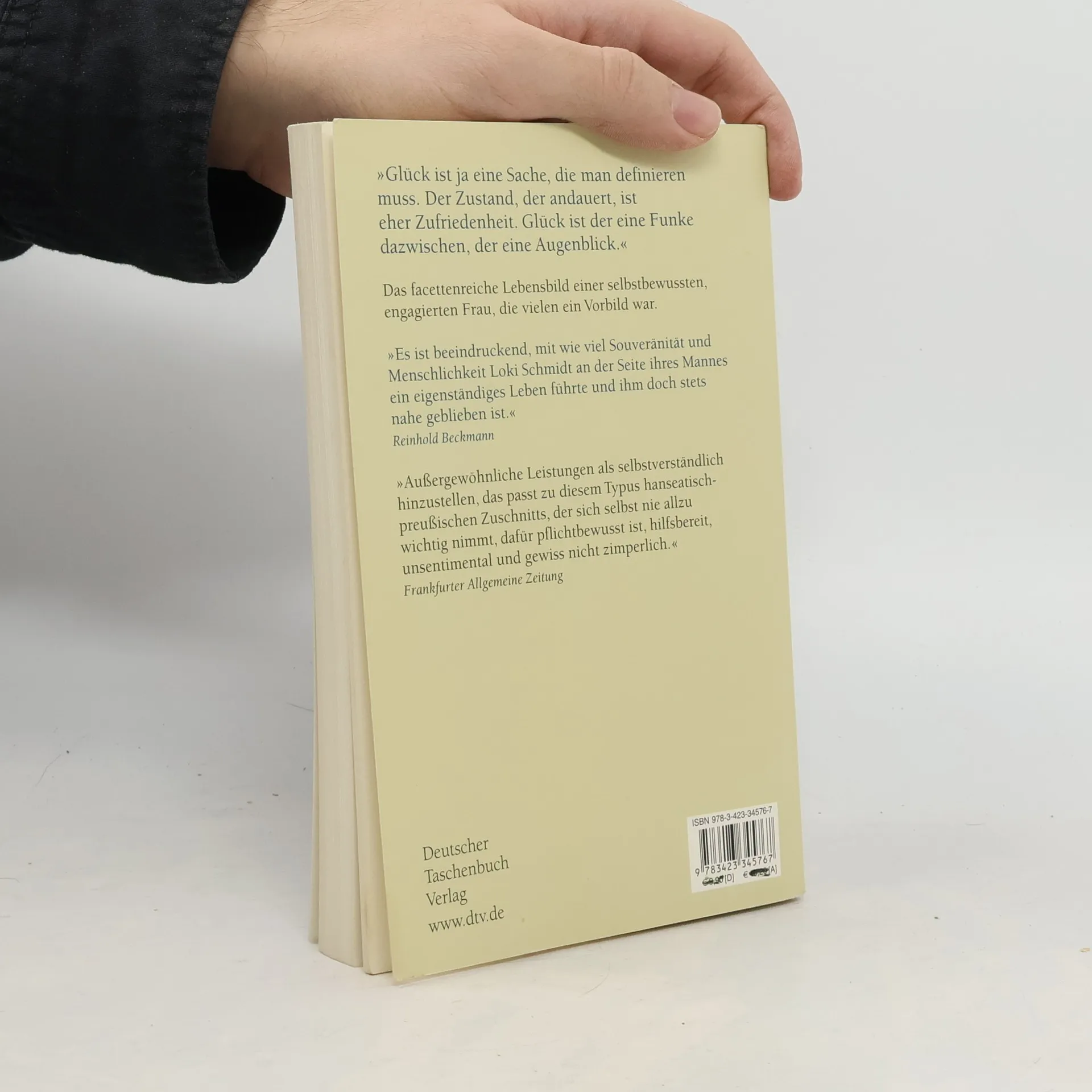»Ich habe das Buch gelesen. Es ist gut.« Helmut Schmidt Ob es der Alltag in den 20er-Jahren, Hitlers Einzug in Hamburg, Giscard d'Estaing an der Hausbar oder die letzten Dinge sind: Anschaulich und pointiert erzählt diese selbstbewusste und engagierte Frau aus ihrem Leben. Ein überaus sympathisches und einnehmendes Buch, in dem die Persönlichkeit von Loki Schmidt und natürlich auch die ihres Ehemannes, Altbundeskanzler Helmut Schmidt, der gelegentlich am Gespräch teilnimmt, ganz präsent werden. Sie zeigt sich ohne jegliche Sentimentalität, auch was die Gedanken an den Tod angeht, nüchtern, humorvoll, anständig im altmodischen Sinn, kann gut erzählen und lässt sich kein X für ein U vormachen. Das hat sie zeit ihres Lebens nicht getan. Der Bestseller jetzt im Taschenbuch »Glück ist ja eine Sache, die man definieren muss. Der Zustand, der andauert, ist eher Zufriedenheit. Glück ist der eine Funke dazwischen, der eine Augenblick.« Loki Schmidt »Es ist beeindruckend, mit wie viel Souveränität und Menschlichkeit Loki Schmidt an der Seite ihres Mannes ein eigenständiges Leben führte und ihm doch stets nahe geblieben ist.« Reinhold Beckmann