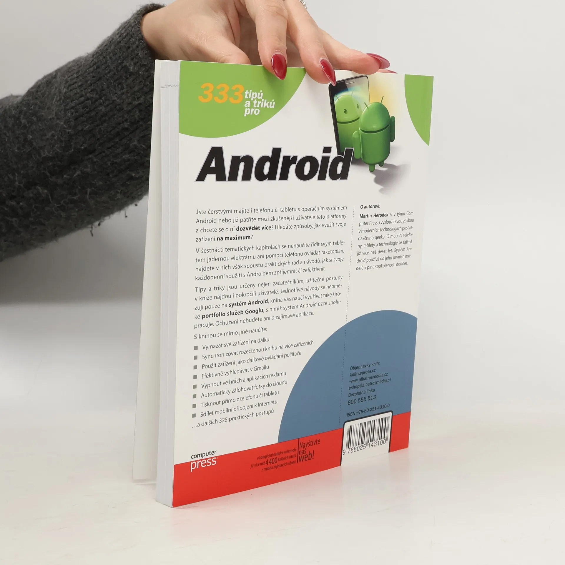 Jste čerstvými majiteli telefonu či tabletu s operačním systémem Android nebo již patříte mezi zkušenější uživatele této platformy a chcete se o ní dozvědět více? Hledáte způsoby, jak využít svoje zařízení na maximum? V šestnácti tematických kapitolách se nenaučíte řídit svým tabletem jadernou elektrárnu ani pomocí telefonu ovládat raketoplán, najdete v nich však spoustu praktických rad a návodů, jak si svoje každodenní soužití s Androidem zpříjemnit či zefektivnit. Tipy a triky jsou určeny nejen začátečníkům, užitečné postupy v knize najdou i pokročilí uživatelé. Jednotlivé návody se neomezují pouze na systém Android, kniha vás naučí využívat také široké portfolio služeb Googlu, s nimiž systém Android úzce spolupracuje. Ochuzeni nebudete ani o zajímavé aplikace. S knihou se mimo jiné naučíte: - Vymazat své zařízení na dálku - Synchronizovat rozečtenou knihu na více zařízeních - Použít zařízení jako dálkové ovládání počítače - Efektivně vyhledávat v Gmailu - Vypnout ve hrách a aplikacích reklamu - Automaticky zálohovat fotky do cloudu - Tisknout přímo z telefonu či tabletu - Sdílet mobilní připojení k Internetu …a dalších 325 praktických postupů O autorovi: Martin Herodek si v týmu Computer Pressu vysloužil svou zálibou v moderních technologiích post redakčního geeka. O mobilní telefony, tablety a technologie se zajímá již více než deset let. Systém Android používá od jeho prvních modelů k plné spokojenosti dodnes.