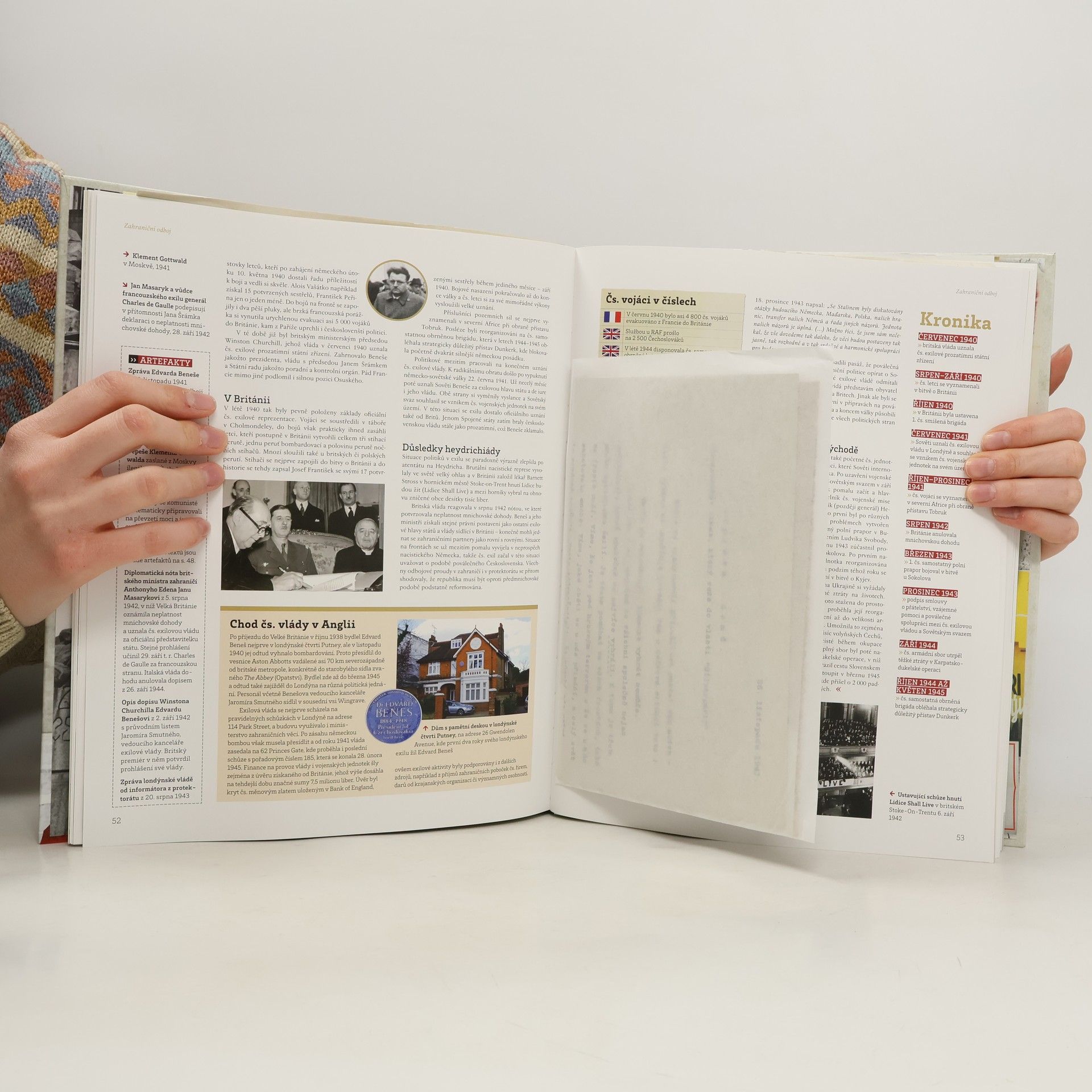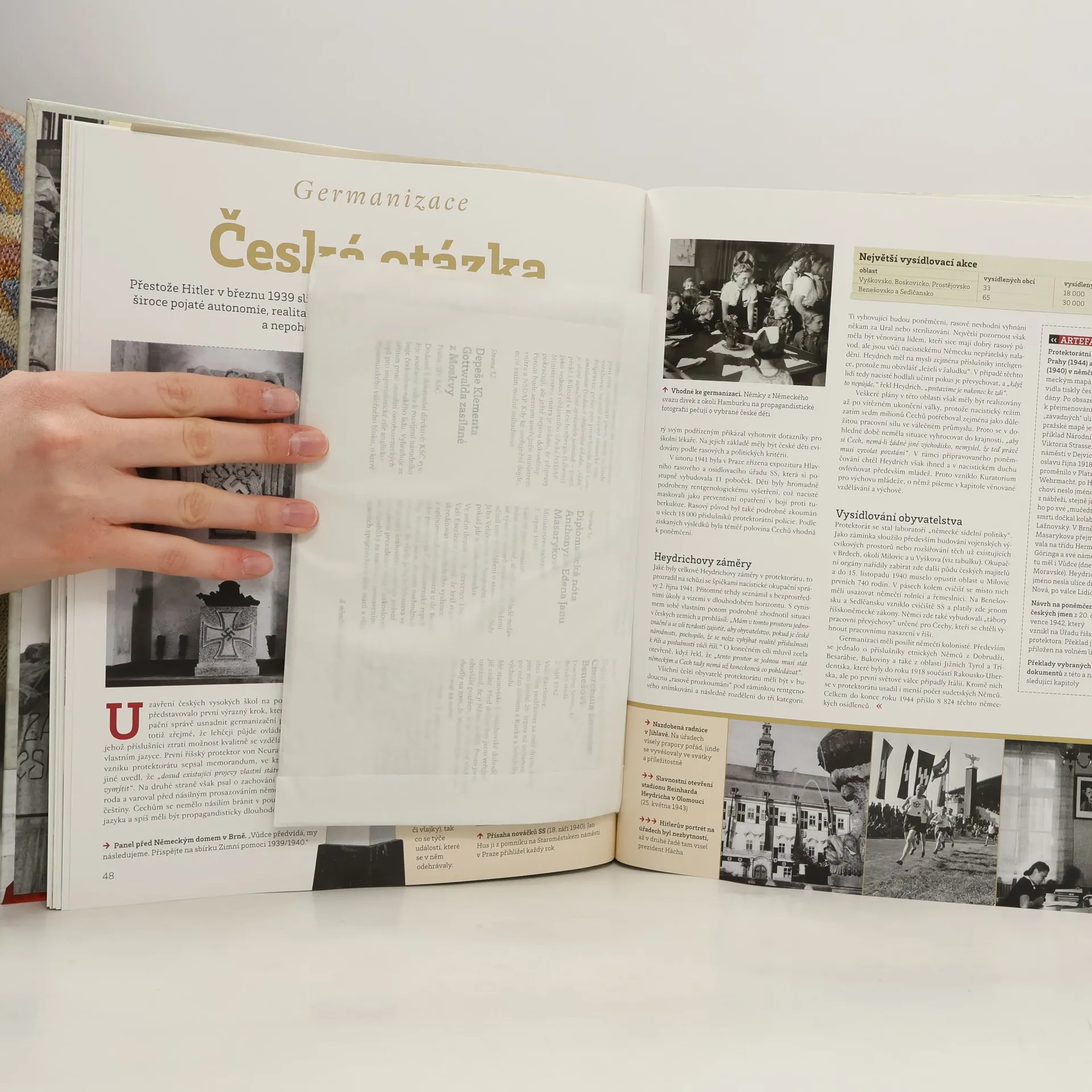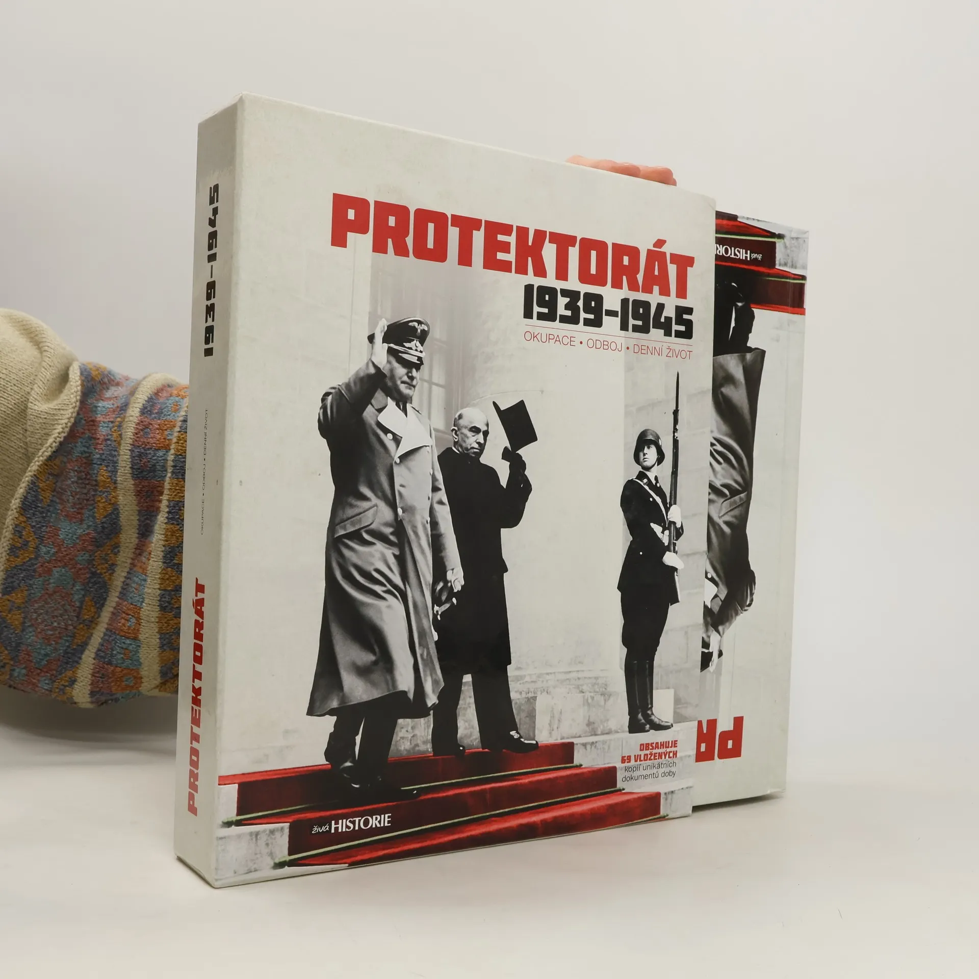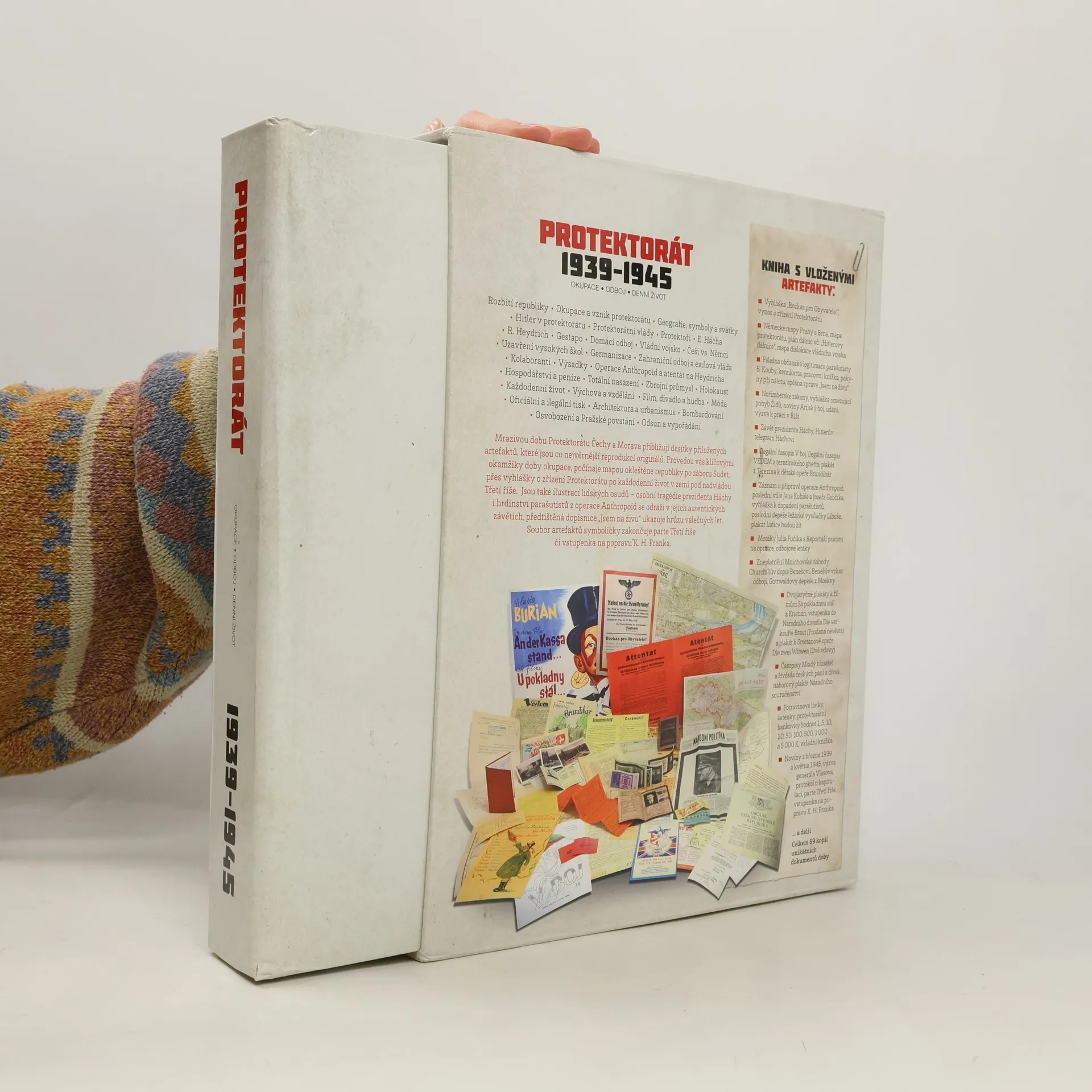 Mrazivou dobu Protektorátu Čechy a Morava přibližují desítky přiložených artefaktů, které jsou co nejvěrnější reprodukcí originálů. Provedou vás klíčovými okamžiky doby okupace, počínaje mapou okleštěné republiky po záboru Sudet, přes vyhlášky o zřízení Protektorátu po každodenní život v zemi pod nadvládou Třetí říše. Jsou také ilustrací lidských osudů - osobní tragédie prezidenta Háchy i hrdinství parašutistů z operace Anthropoid se odráží v jejich autentických závětích, předtištěná dopisnice "Jsem na živu"; ukazuje hrůzu válečných let. Soubor artefaktů symbolicky zakončuje parte Třetí říše či vstupenka na popravu K. H. Franka.