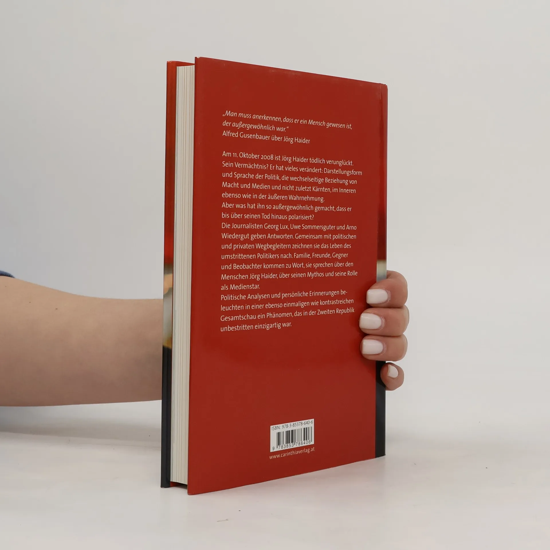 Man muss anerkennen, dass er ein Mensch gewesen ist, der außergewöhnlich war.“ Alfred Gusenbauer über Jörg Haider Jörg Haider hat viel verändert: Darstellungsform und Sprache der Politik, die wechselseitige Beziehung von Macht und Medien – und nicht zuletzt das Bundesland Kärnten, innen ebenso wie in der äußeren Wahrnehmung. Aber was hat ihn so außergewöhnlich gemacht, dass er bis über seinen Tod hinaus polarisiert? Uwe Sommersguter und Georg Lux gehen diesen Fragen in „Jörg Haider – Mensch, Medienstar, Mythos“ auf den Grund. Gemeinsam mit politischen und privaten Wegbegleitern zeichnen sie den Lebensweg des umstrittenen Politikers nach. Freunde, Gegner und Beobachter kommen zu Wort und sprechen auch über den Menschen Jörg Haider abseits von Scheinwerferlicht und Blitzlichtgewitter.