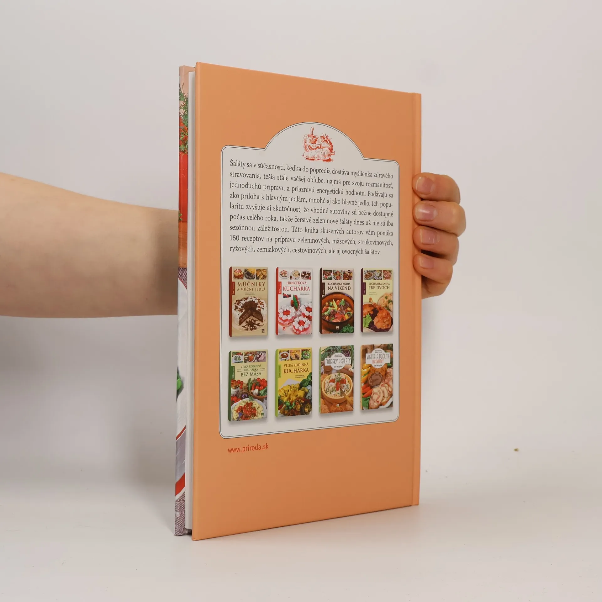 Šaláty sa v súčasnosti, keď sa do popredia dostáva myšlienka zdravého stravovania, tešia stále väčšej obľube, najmä pre svoju rozmanitosť, jednoduchú prípravu a priaznivú energetickú hodnotu. Podávajú sa ako príloha k hlavným jedlám, mnohé aj ako hlavné jedlo. Ich popularitu zvyšuje aj skutočnosť, že suroviny vhodné na ich prípravu sú bežne dostupné počas celého roka, takže čerstvé zeleninové šaláty dnes už nie sú iba sezónnou záležitosťou. Táto kniha skúsených autorov vám ponúka 150 receptov na prípravu zeleninových, mäsových, strukovinových, ryžových, zemiakových, cestovinových, ale aj ovocných šalátov.