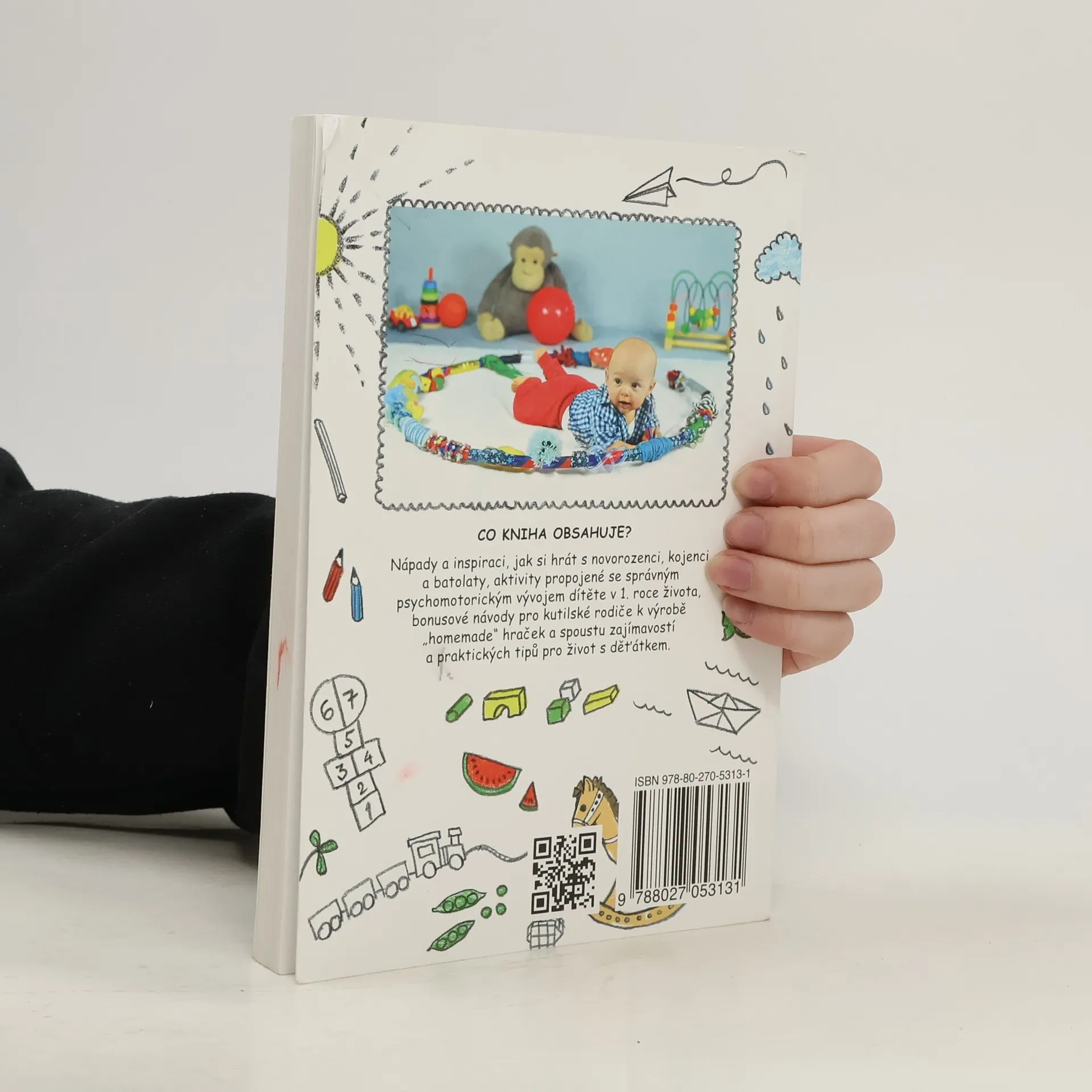 Kniha obsahuje nápady a inspiraci, jak si hrát s novorozenci, kojenci a batolaty, aktivity propojené se správným psychomotorickým vývojem dítěte v 1. roce života, bonusové návody pro kutilské rodiče k výrobě po domácku vyrobených hraček a spoustu zajímavostí a praktických tipů pro život s děťátkem. V knize naleznete 99 her, které jsou řazeny dle věku miminka.