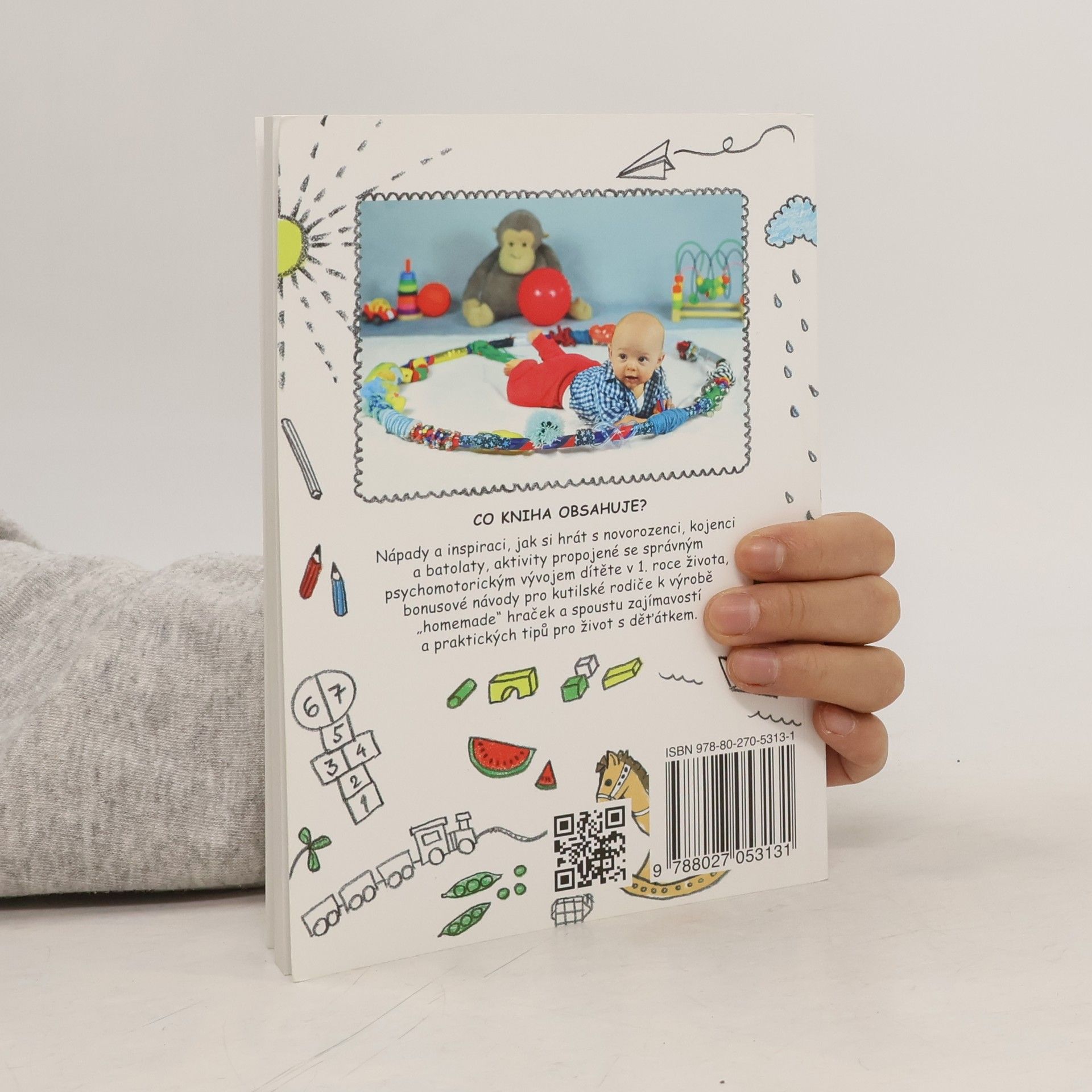 Kniha obsahuje nápady a inspiraci, jak si hrát s novorozenci, kojenci a batolaty, aktivity propojené se správným psychomotorickým vývojem dítěte v 1. roce života, bonusové návody pro kutilské rodiče k výrobě po domácku vyrobených hraček a spoustu zajímavostí a praktických tipů pro život s děťátkem. V knize naleznete 99 her, které jsou řazeny dle věku miminka.