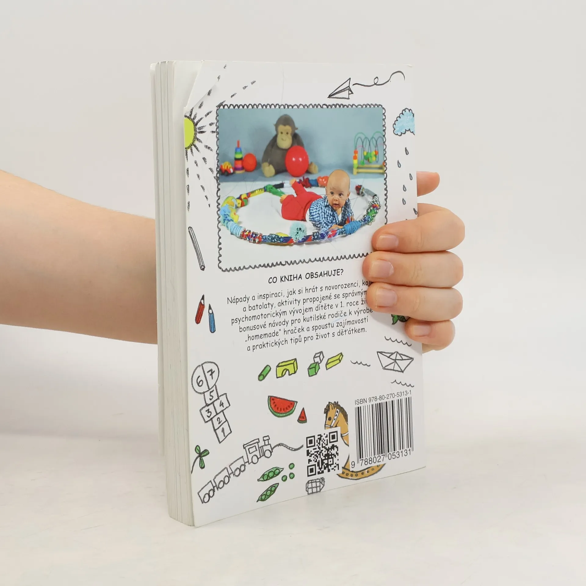 Kniha obsahuje nápady a inspiraci, jak si hrát s novorozenci, kojenci a batolaty, aktivity propojené se správným psychomotorickým vývojem dítěte v 1. roce života, bonusové návody pro kutilské rodiče k výrobě po domácku vyrobených hraček a spoustu zajímavostí a praktických tipů pro život s děťátkem. V knize naleznete 99 her, které jsou řazeny dle věku miminka.