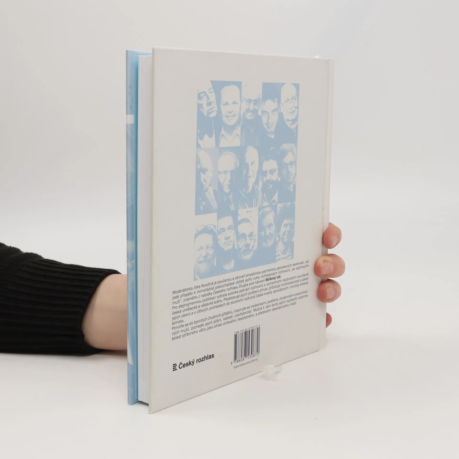 Moderátorku Jitku Novotnou znáte z vysílání Českého rozhlasu a České televize. Je poučenou a zároveň empatickou partnerkou zpovídaných osobností, což jistě přispělo k mimořádné posluchačské oblibě jejího cyklu rozhlasových rozhovorů „se zajímavými muži“, který pod názvem Stříbrný vítr vysílá stanice Dvojka. Pro stejnojmennou publikaci vybrala patnáct rozhovorů s významnými osobnostmi současné české umělecké a vědecké scény. Představuje nejen jejich profesní přínos, ale v citlivých průhledech do soukromí se jí zároveň daří rozkrývat lidské kvality zpovídaných. V neposlední řadě pak seznamuje čtenáře s mnohotvárností a úskalími jejich oborů. Publikace Stříbrný vítr obsahuje „tak trochu jiné rozhovory“, mířící hlouběji, než je v tomto žánru zvykem. Poskytli je dětský onkolog Josef Koutecký, houslový virtuos Václav Hudeček, fejetonista Rudolf Křesťan, herec Jiří Dvořák, kunsthistorik Jaromír Zemina, hudební kritik Jiří Černý, režisér Petr Weigl, překladatel Martin Hilský, hudebník Jan Spálený, teoretik architektury Adam Gebrian, rozhlasový tvůrce Josef Veselý, divadelní ředitel Milan Hein, muzikolog a skladatel Miloš Štědroň, básník a textař František Novotný a designér Maxim Velčovský.