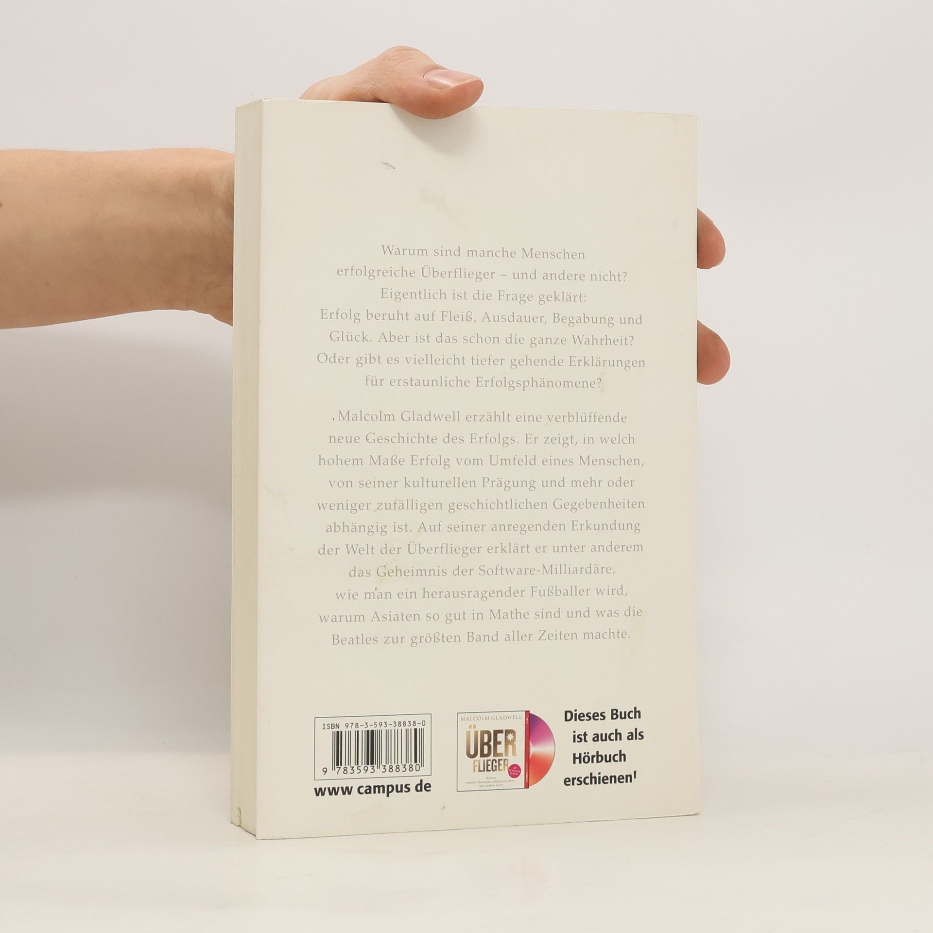 Malcolm Gladwell, Bestsellerautor und Star des amerikanischen Buchmarkts, hat die wahren Ursachen des Erfolgs untersucht und darüber ein lehrreiches, faszinierendes Buch geschrieben. Es steckt voller Geschichten und Beispiele, die zeigen, dass auch außergewöhnlicher Erfolg selten etwas mit individuellen Eigenschaften zu tun hat, sondern mit Gegebenheiten, die es dem einen leicht und dem anderen unmöglich machen, erfolgreich zu sein. Die Frage ist nicht, wie jemand ist, sondern woher er kommt: Welche Bedingungen haben diesen Menschen hervorgebracht? Auf seiner anregenden intellektuellen Erkundung der Welt der Überflieger erklärt Gladwell unter anderem das Geheimnis der Softwaremilliardäre, wie man ein herausragender Fußballer wird, warum Asiaten so gut in Mathe sind und was die Beatles zur größten Band aller Zeiten machte.