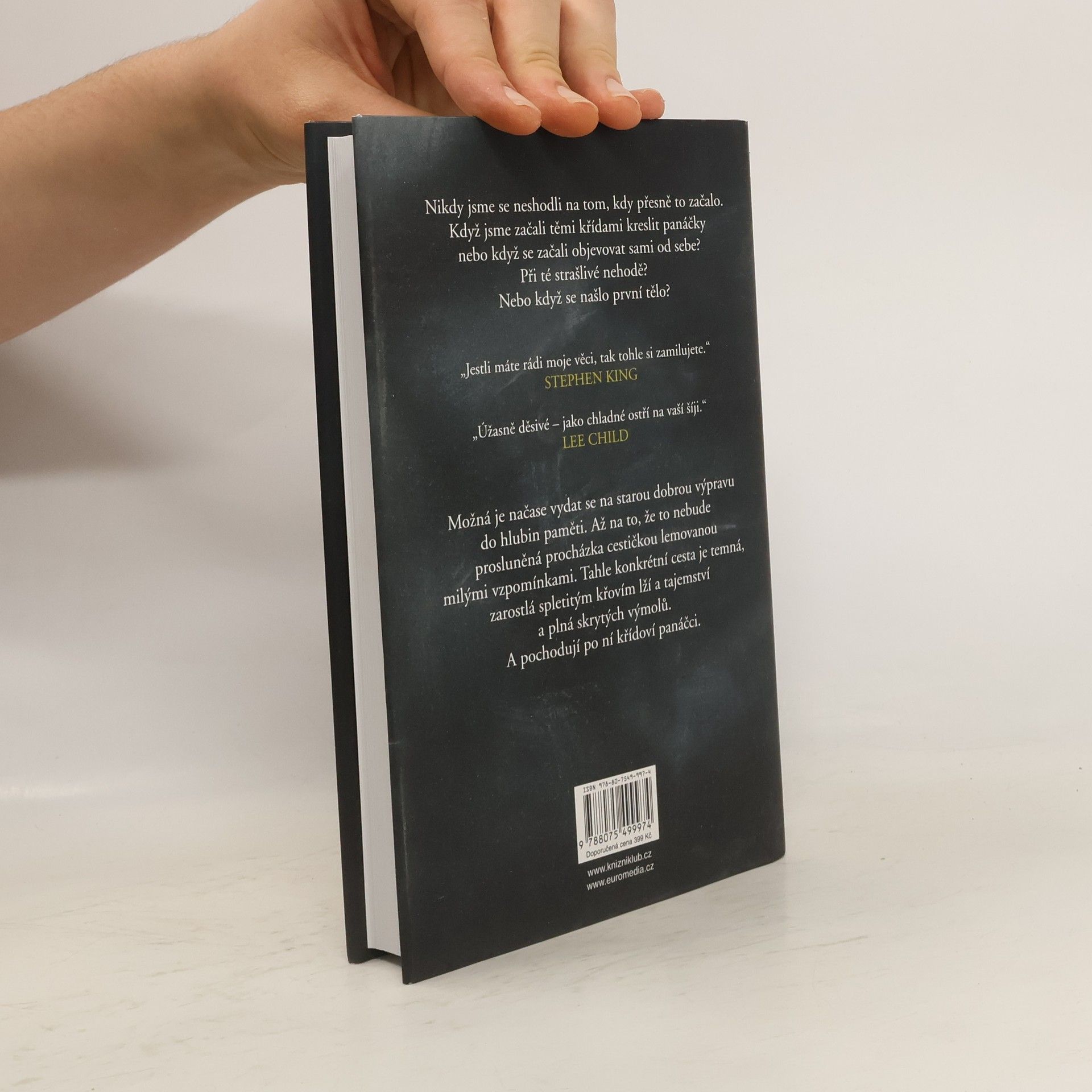 Všichni máme tajemství. Před některými utíkáme, ale ona si nás najdou. A některé hry končí vždycky stejně… Mysteriózní thriller Kříďák je tu – a nedá se před ním utéct. Cítíte to v lese, ve škole i na hřišti, cítíte to v domech a v lunaparku. Cítíte to na většině míst v malém městečku Anderbury… strach, že vás někdo nebo něco sleduje. Začalo to na pouti roku 1986, kdy se stala ta nehoda. Toho dne potkal dvanáctiletý Eddie pana Hallorana – pana Křídu. Ten přivedl Eddieho na myšlenku nevinné hry pro něj a partu jeho přátel: za pomoci křídových kreseb si mohli nechávat vzkazy. Byla to docela zábava – dokud je křídoví panáčci nedovedli k tělu. Mrtvému dívčímu tělu, rozřezanému na kousky. Tahle událost se jim nesmazatelně vryla do nočních můr. A třicet let poté najdou v dopisních schránkách záhadnou obálku – s panáčkem a kusem křídy. Strašáci z dětských let totiž možná stále dokážou zabíjet.