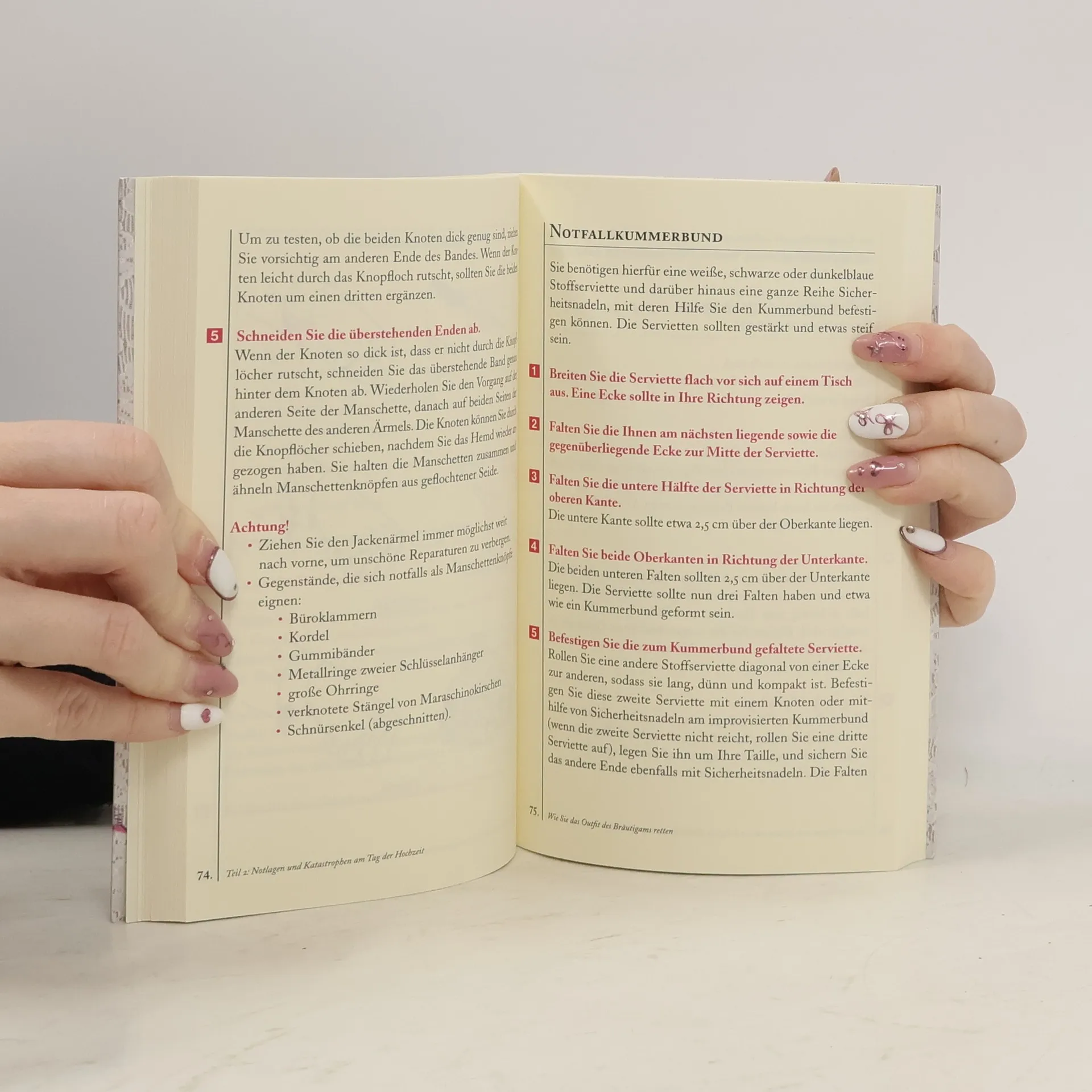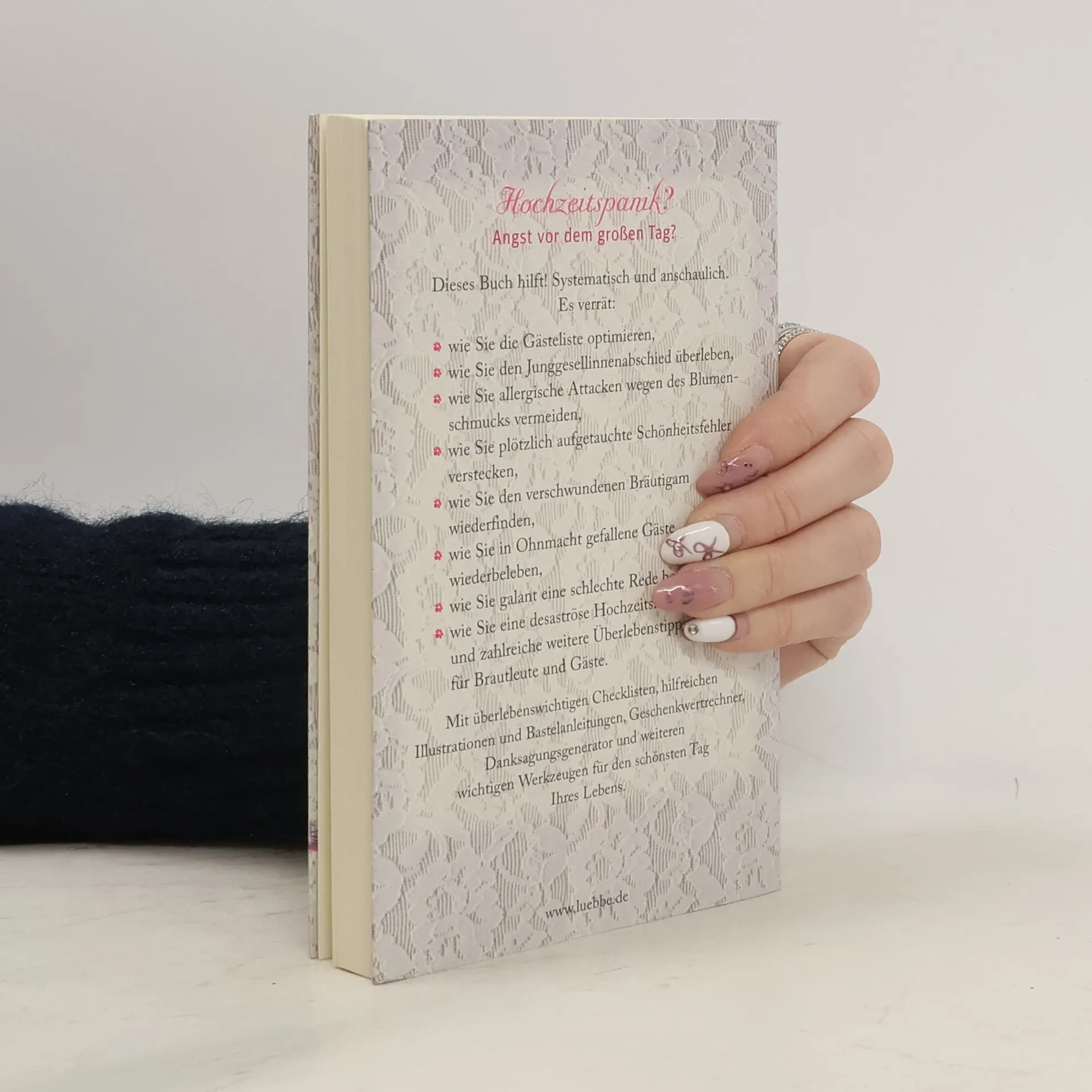 Dieses Buch hilft! Systematisch und anschaulich. Es verrät: • wie Sie die Gästeliste optimieren • wie Sie den Junggesellinnenabschied überleben • wie Sie allergische Attacken wegen des Blumenschmucks vermeiden • wie Sie plötzlich aufgetauchte Schönheitsfehler verstecken • wie Sie den verschwundenen Bräutigam wiederfinden • wie Sie in Ohnmacht gefallene Gäste wiederbeleben • wie Sie galant eine schlechte Rede beenden • wie Sie eine desaströse Hochzeitsreise überstehen und zahlreiche weitere Überlebenstipps für Brautleute und Gäste. Mit überlebenswichtigen Checklisten, hilfreichen Illustrationen und Bastelanleitungen, Geschenkwertrechner, Danksagungsgenerator und weiteren wichtigen Werkzeugen für den schönsten Tag Ihres Lebens.