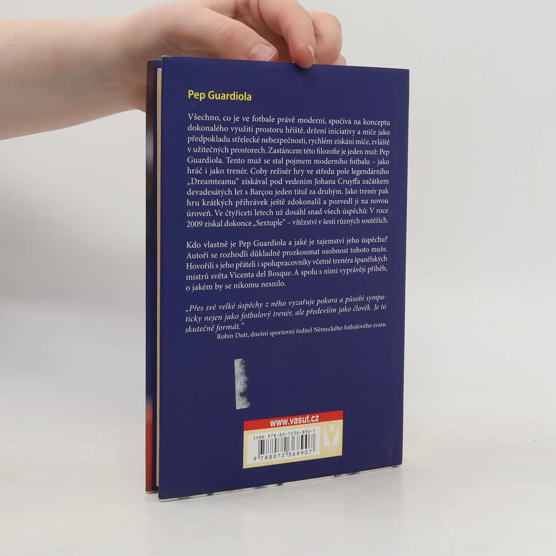 Všechno, co je ve fotbale právě moderní, spočívá na konceptu dokonalého využití prostoru hřiště, držení iniciativy a míče jako předpokladu střelecké nebezpečnosti, rychlém získání míče, zvláště v užitečných prostorech. Zastáncem této filozofie je jeden muž: Pep Guardiola. Tento muž se stal pojmem moderního fotbalu – jako hráč i jako trenér. Coby režisér hry ve středu pole legendárního „Dreamteamu“ získával pod vedením Johana Cruyffa začátkem devadesátých let s Barçou jeden titul za druhým. Jako trenér pak hru krátkých přihrávek ještě zdokonalil a pozvedl ji na novou úroveň. Ve čtyřiceti letech už dosáhl snad všech úspěchů: V roce 2009 získal dokonce „Sextuple“ – vítězství v šesti různých soutěžích. Kdo vlastně je Pep Guardiola a jaké je tajemství jeho úspěchu? Autoři se rozhodli důkladně prozkoumat osobnost tohoto muže. Hovořili s jeho přáteli i spolupracovníky včetně trenéra španělských mistrů světa Vicenta del Bosque. A spolu s nimi vyprávějí příběh, o jakém by se nikomu nesnilo.
