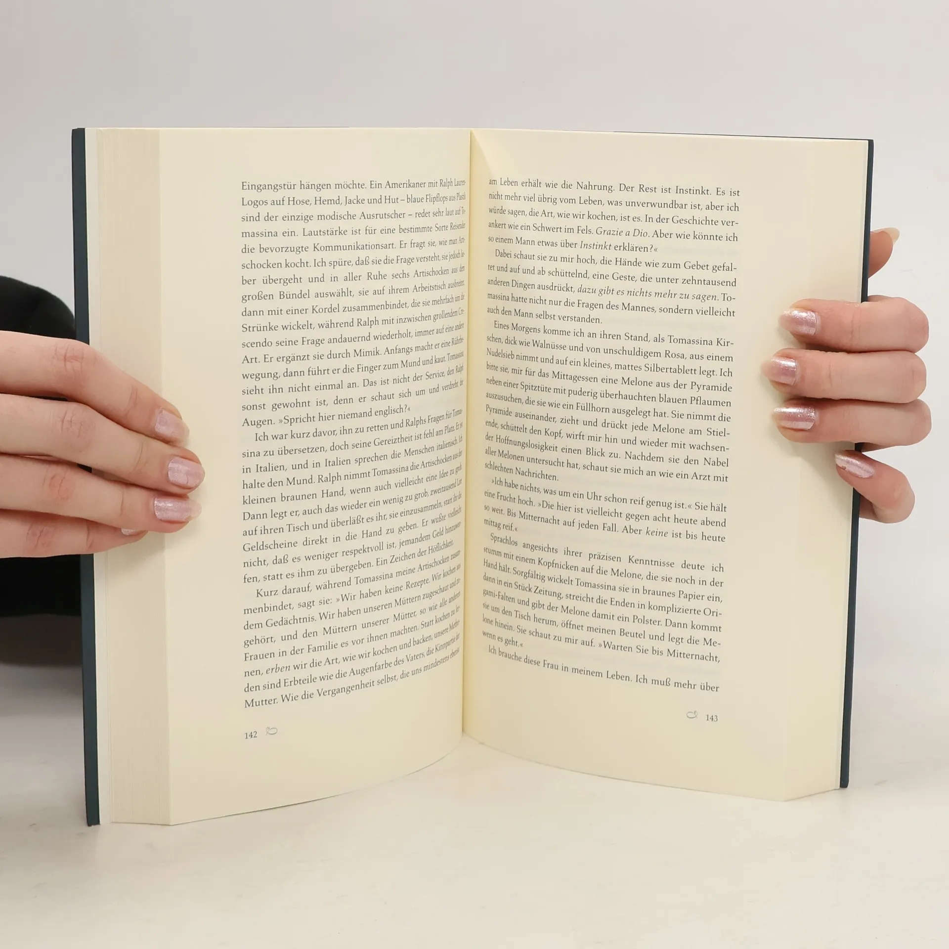 So schmeckt das Leben in Orvieto. Die Würstchen liegen prall und knusprig in flachen Eisenpfannen und werden über glänzender Holzkohle warmgehalten. Ihr Duft zieht über die Piazza und macht hungrig. Auf dem Gasbrenner daneben steht ein großer Kessel mit etlichen Litern des hiesigen Rotweins. Ganze Orangen, mit Nelken gespickt, schwimmen in der purpurnen Tiefe, und eine Frau in Fellmütze und mit Strickjacke über der Kittelschürze ist auf eine Trittleiter gestiegen und rührt den Wein mit einem langen Holzlöffel um. &Das Obst, das Gemüse, der Wein, alles gereift unter der Sonne des Südens, die Küche, in der Frauen dichtgedrängt kochen und schwätzen, die Lebensfreude und die unzähligen Heiligen, die an vielen Tagen Anlass zum Feiern geben. Das alles ist für Marlena Italien. Sie selbst ist zwar Amerikanerin, aber die italienische Lebensweise hat es ihr angetan. Sie will genießen, sich an den Speisen laben, die die Saison auf den Tisch bringt. Sie träumt nicht von Erdbeeren im Februar. Und sie will kochen: Feines italienisches Öl in ihre geliebte, alte ovale Gratinform aus Terrakotta streichen, entkernte, grob zerteilte Paprikaschoten mit den Kartoffeln und noch mehr Öl sowie den zerstoßenen Fenchelsamen hineingeben. Vor dem Ofen warten, bis die Paprikaschoten und die Kartoffeln weich werden, geradezu ineinander schmelzen, und beide das süße Aroma des Fenchels in sich aufnehmen.
