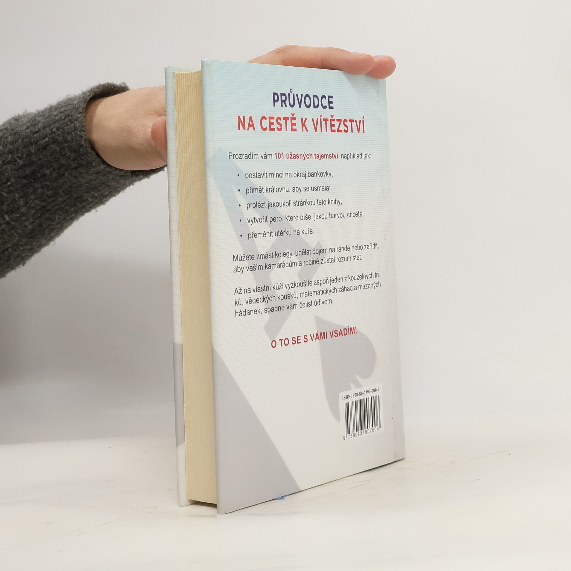 Každý má rád vítěze a tato kniha je o tom, jak vyhrát. Představte si, že někoho překvapíte zdánlivě nemožnou sázkou, a bezpečně víte, že vždy vyhrajete. Pokud se s kamarády nebo známými rádi sázíte, je tato kniha právě pro vás. Co takhle uzavřít sázku: „Vsadím se s tebou, že tohle pero bude psát jakoukoli barvou, kterou si řekneš.“ V knize najdete 101 zdánlivě neuskutečnitelných věcí, které jsou ovšem velmi snadné.