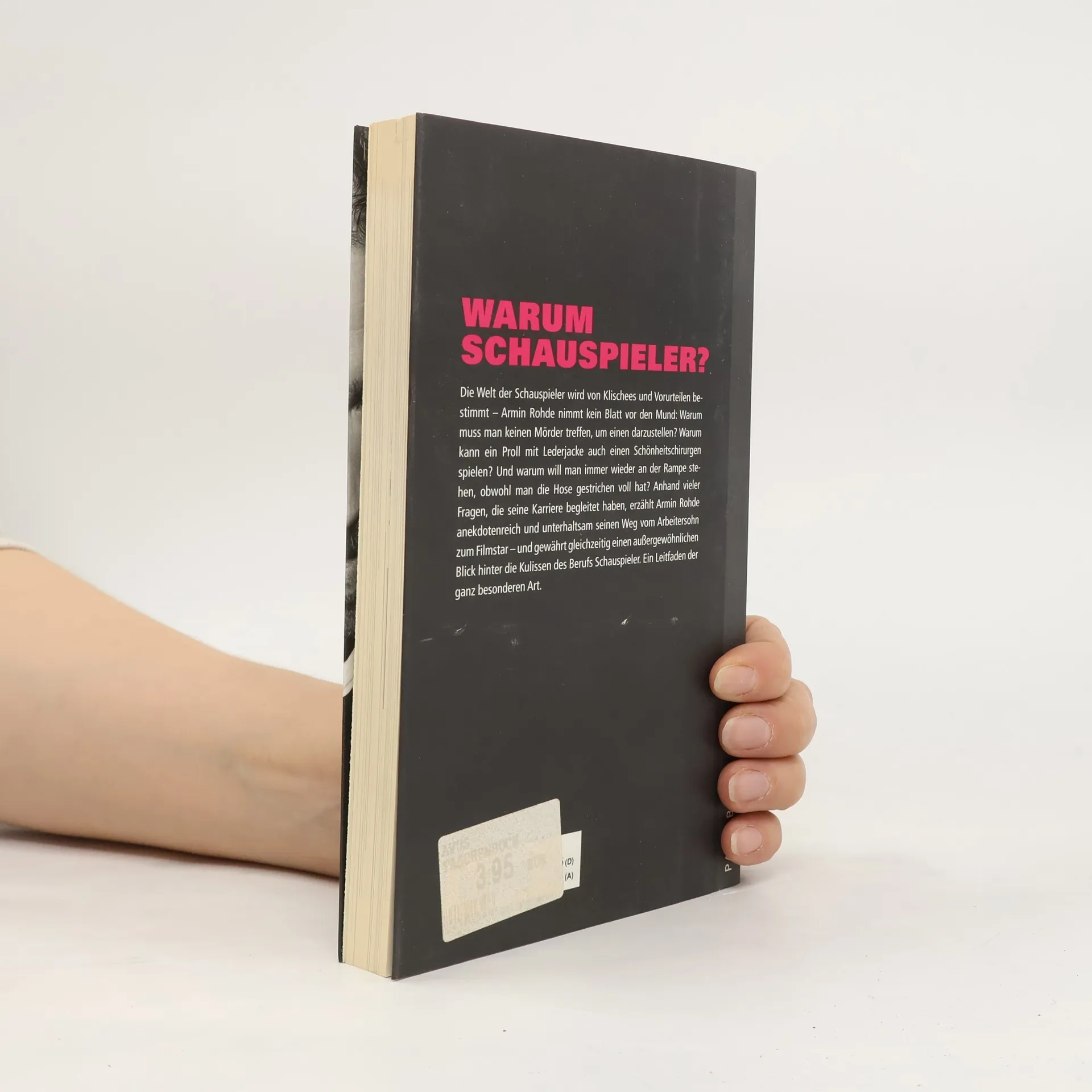 Warum Schauspieler? Die Welt der Schauspieler wird von Klischees und Vorurteilen bestimmt – Armin Rohde nimmt kein Blatt vor den Mund: Warum muss man keinen Mörder treffen, um einen darzustellen? Warum kann ein Proll mit Lederjacke auch einen Schönheitschirurgen spielen? Und warum will man immer wieder an der Rampe stehen, obwohl man die Hose gestrichen voll hat? Anhand vieler Fragen, die seine Karriere begleitet haben, erzählt Armin Rohde anekdotenreich und unterhaltsam seinen Weg vom Arbeitersohn zum Filmstar – und gewährt gleichzeitig einen außergewöhnlichen Blick hinter die Kulissen des Berufs Schauspieler. Ein Leitfaden der ganz besonderen Art.