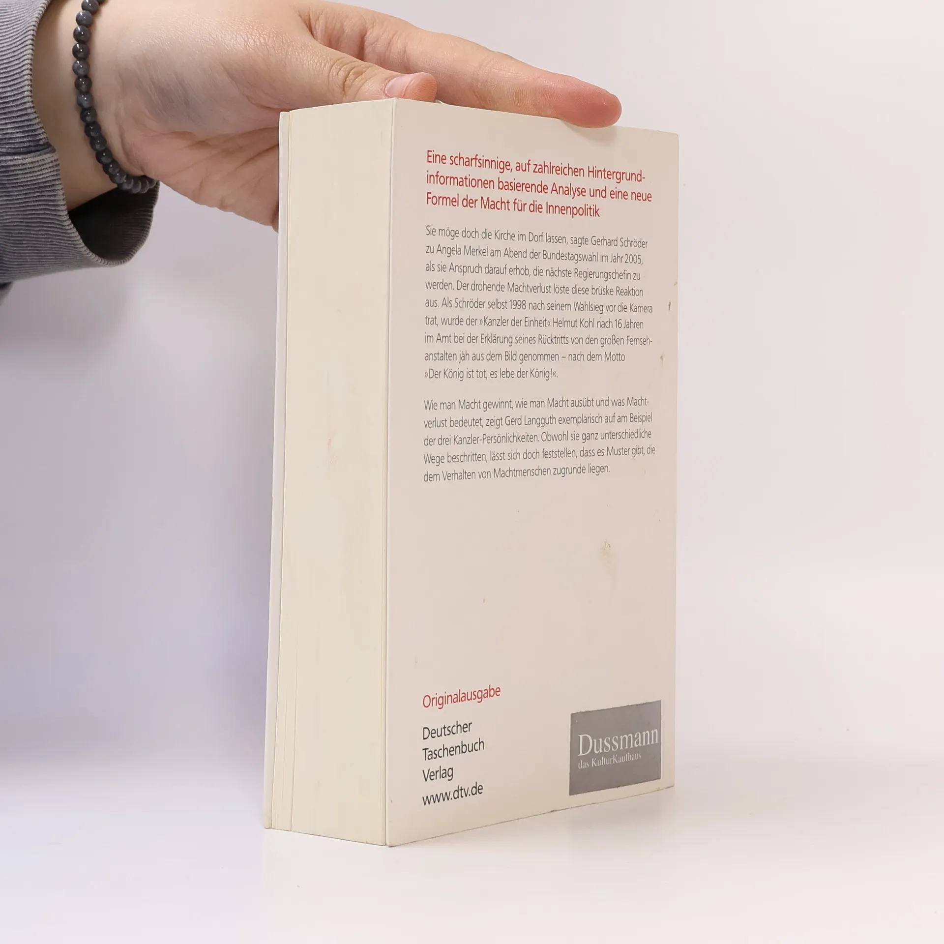 Macht wird häufig negativ betrachtet, doch im gesamten sozialen Leben wird sie ausgeübt, auch in einem demokratischen Staatswesen, das den Gebrauch der Macht durch Verfassung und Gesetze einschränkt. Macht entsteht durch den Wunsch und die Fähigkeit, das Verhalten und Denken anderer zu beeinflussen und zu lenken. Zwei Herren, eine Dame und die mächtigste politische Position in der Bundesrepublik sind der Ausgangspunkt für diese Analyse. Alle drei sind Machtmenschen. Sonst wären sie nie in dieses Amt gelangt. Gerd Langguth, ausgewiesener Kenner des Politikbetriebs und Autor hochgelobter politischer Biografien, untersucht die Regierungsstile der drei Kanzler-Persönlichkeiten und beleuchtet ihre verschiedenen Facetten. Um an Hintergrundinformationen zu gelangen, hat er zahlreiche Gespräche und Interviews geführt, u. a. mit Stefan Aust, Wolfgang Clement, Renate Künast, Rudolf Scharping und Otto Schily.