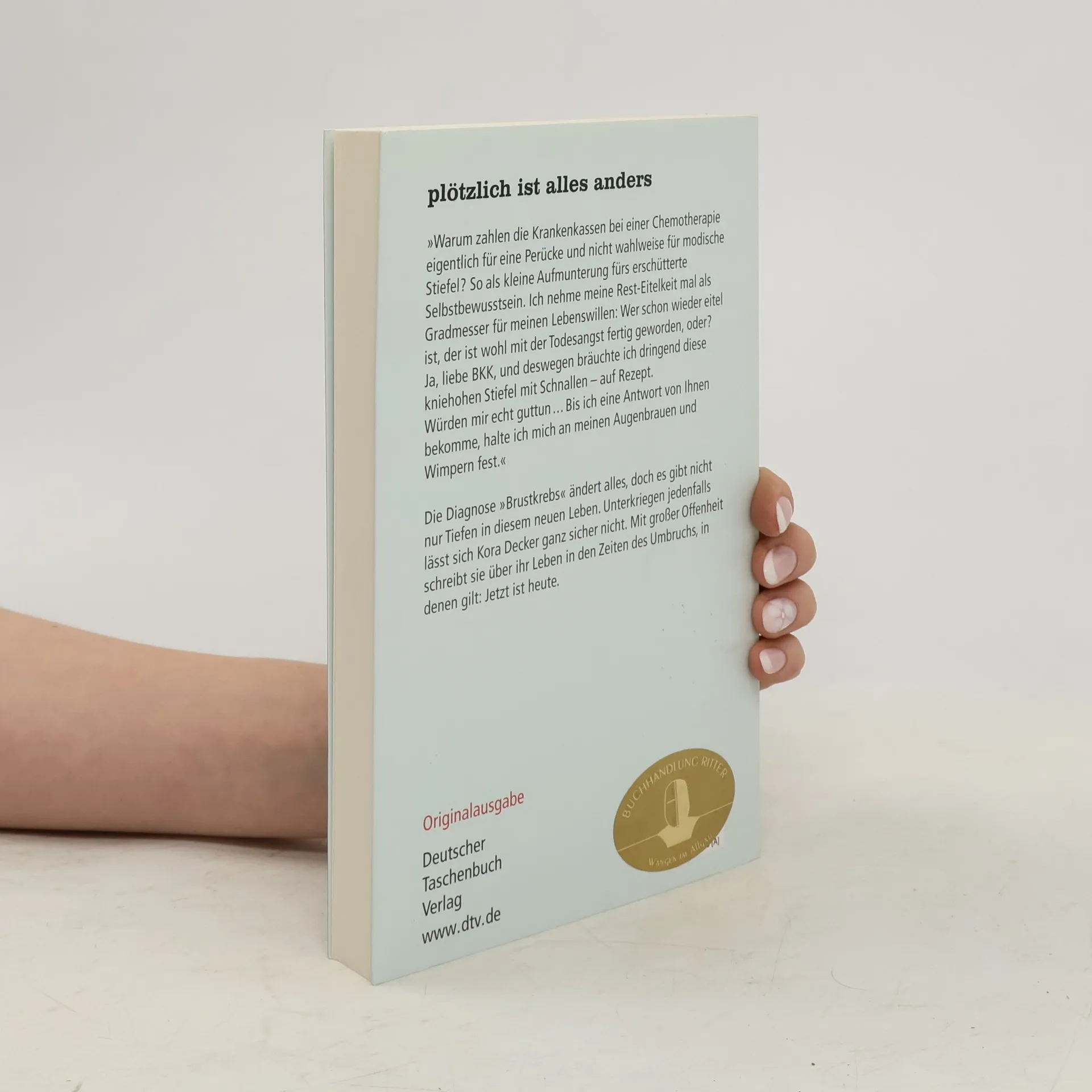 Von wegen Deutschland ein Sommermärchen. Während ein ganzes Land im Fußballtaumel ist, erhält Kora Decker eine niederschmetternde Diagnose: Brustkrebs. Von heute auf morgen gibt es für sie keinen Alltag mehr, keine Arbeit, keine Pläne - was bleibt, ist die Aussicht auf monatelange Therapien und eine bedrückende Dauerangst. Unvermeidlich Chemotherapie und Bestrahlung, unvermeidlich der Verlust der Haare und die totale körperliche Erschöpfung. Doch es gibt nicht nur Tiefen in diesem neuen Leben. Getrieben von dem unbändigen Willen, den Krebs zu besiegen, bewahrt Kora Decker sich ihren Mut und ihren Humor. Mit großer Offenheit beschreibt sie, wie ihr manchmal schon ein kleines Wort wie „Überlebensrate“ den Tag verderben kann. Und wie letztlich doch immer der Optimismus siegt, den sie der Krankheit entgegensetzt: „Jetzt ist heute.“ 'Kora Deckers Buch hat eine besondere Qualität: Es ist eben nicht rührselig, nicht hochtrabend, sondern bei aller Verzweiflung begegnet sie ihrer Krankheit mit Witz, Humor und einer wohltuenden Dosis Unverschämtheit. Der Kampf gegen das Alien hat sie stärker gemacht, selbstsicherer, davon ist sie überzeugt. Und es hat sie gelehrt, dass das Leben zerbrechlich ist und Pläne nicht auf die lange Bank gehören. Denn: Jetzt ist heute und die Zukunft nie gewiss.' jub, Focus, 25.5.2009
